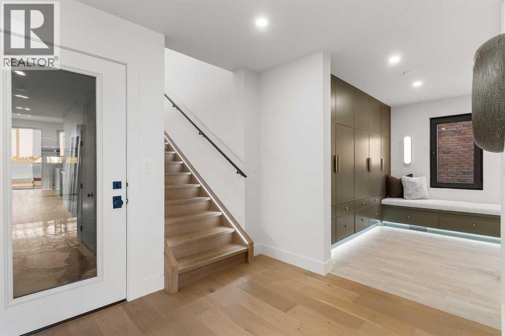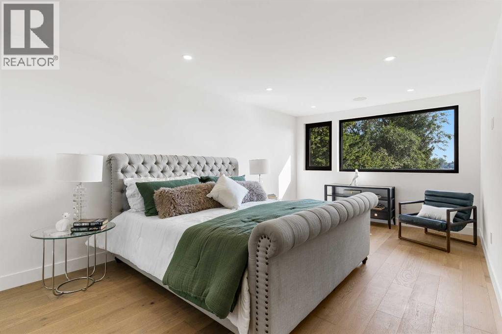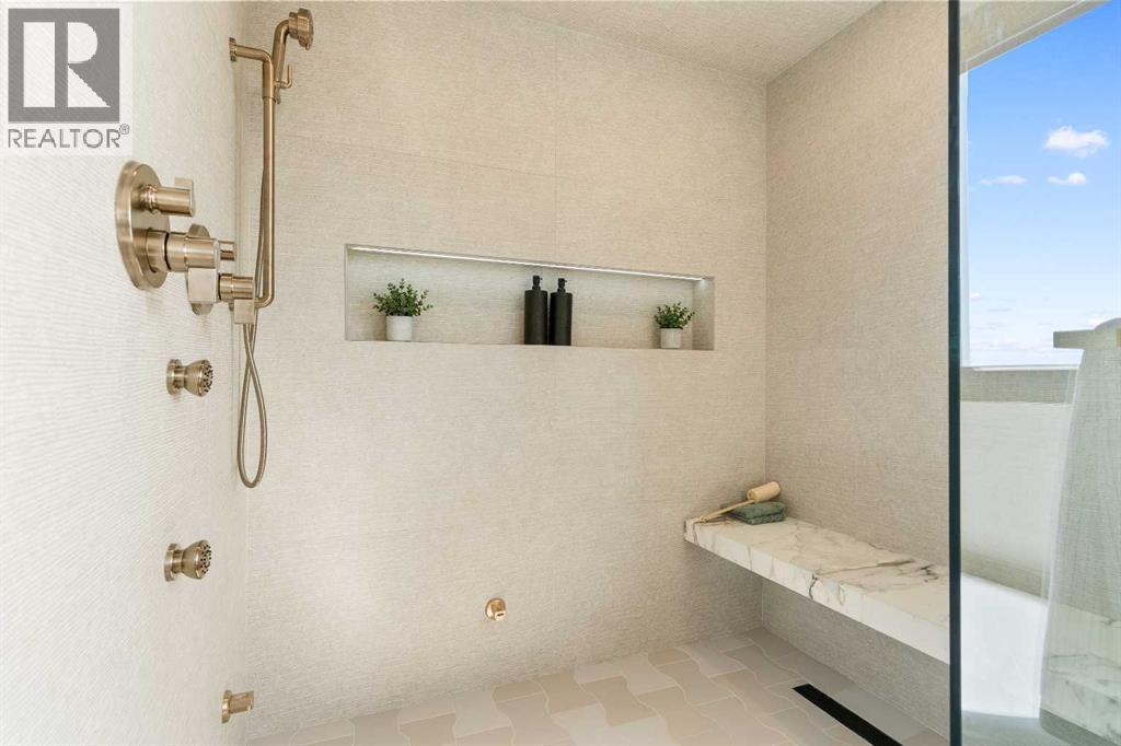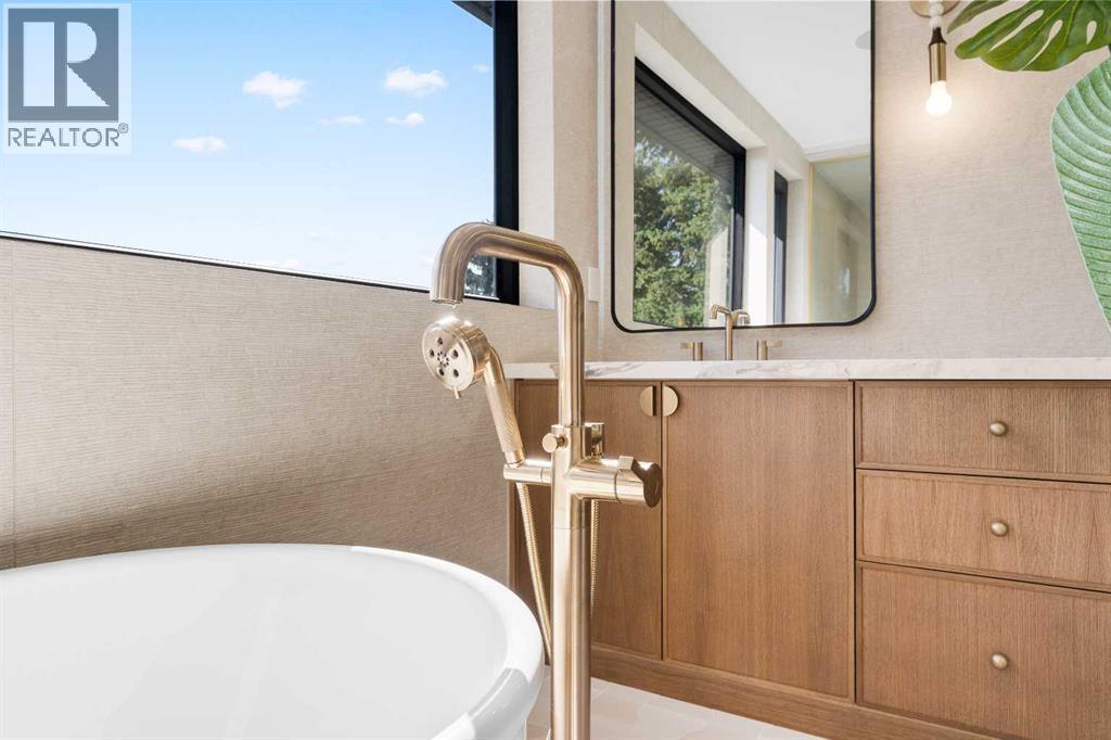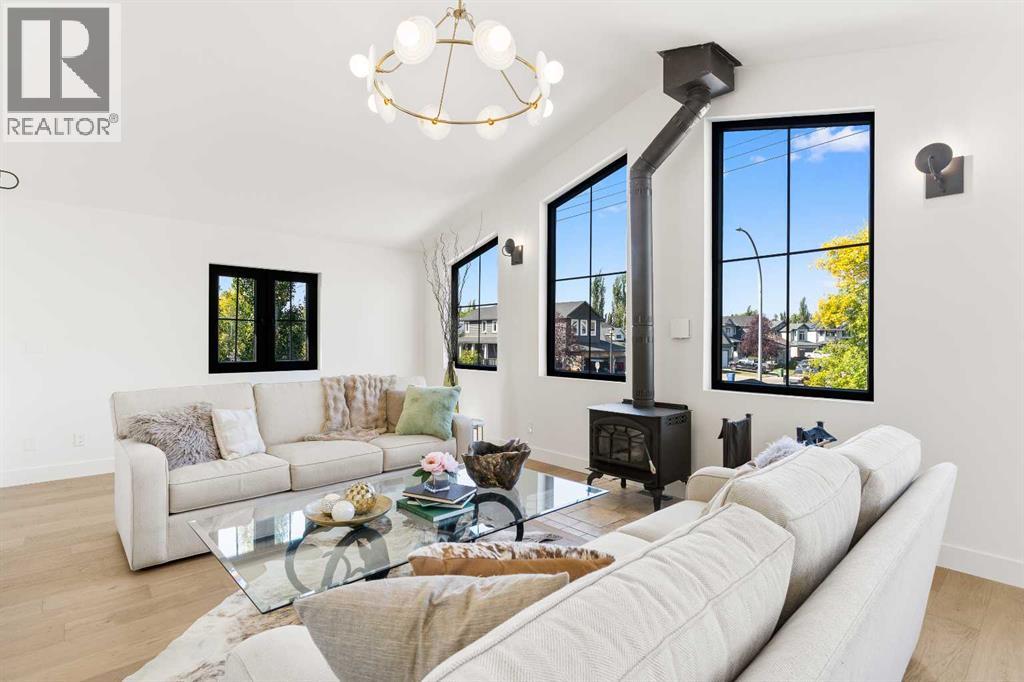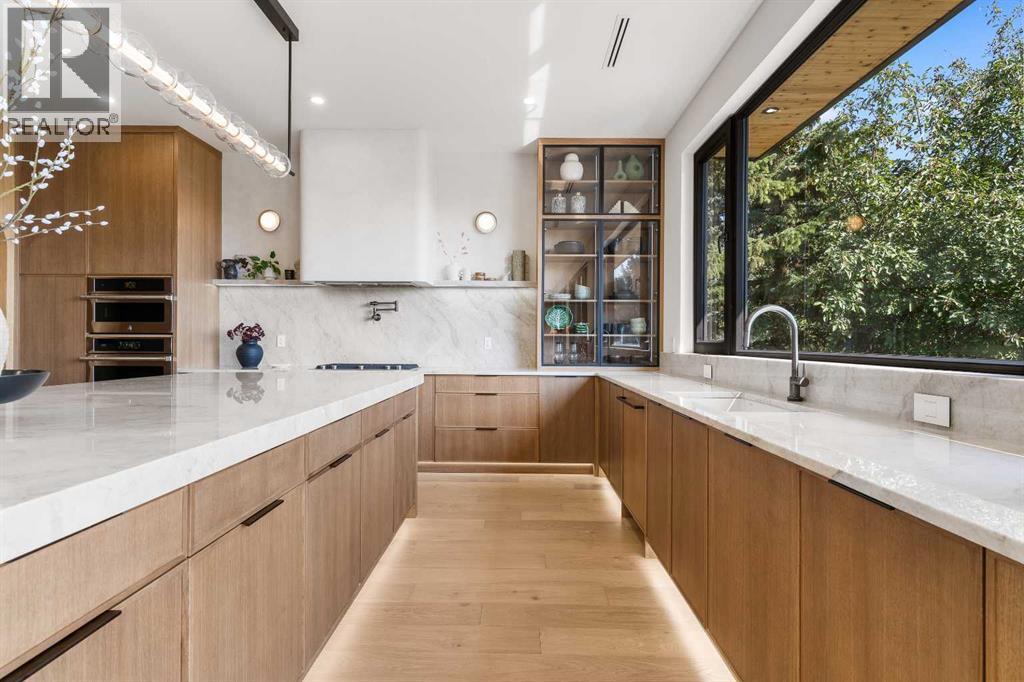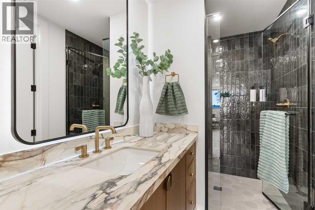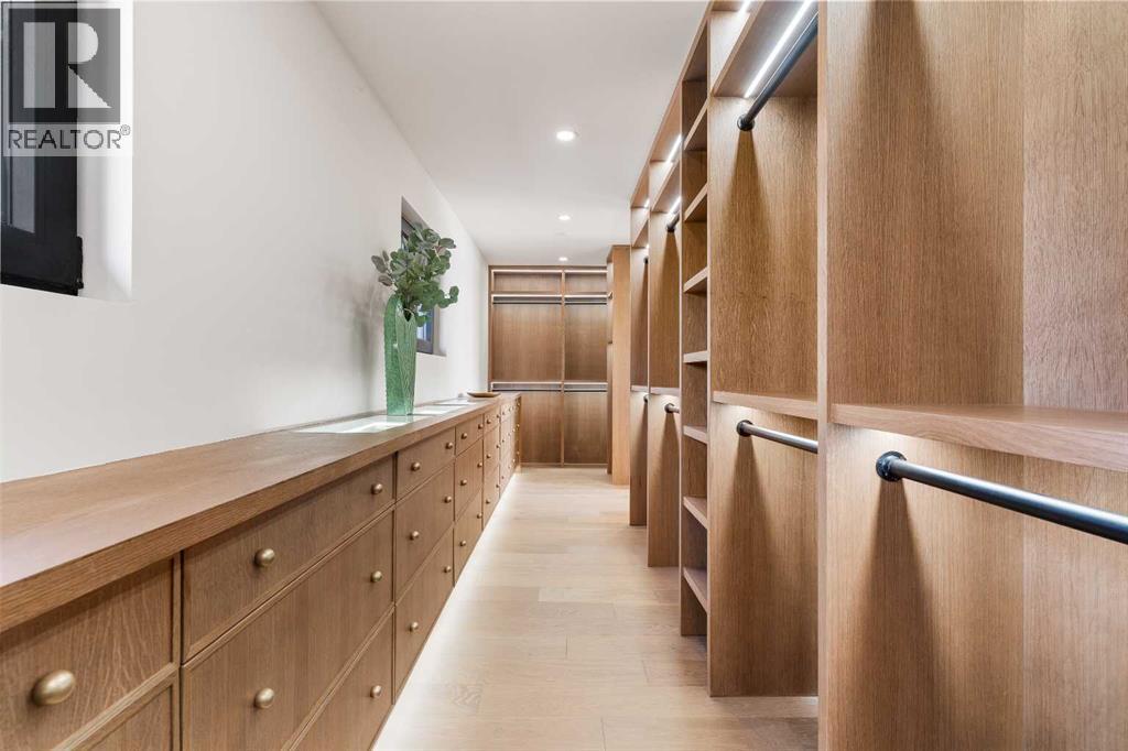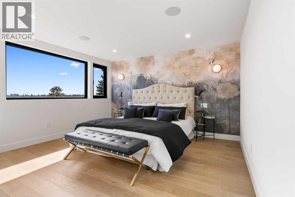*Welcome to Lakeside Luxury on Chestermere Lake* With 4,482 sq. ft. of fully reimagined living space, this lakefront estate blends architectural sophistication with modern comfort on one of Chestermere Lake’s most exclusive stretches of shoreline. This complete renovation and design is an intricate remodel + extension, showcasing soaring 10’ ceilings, bespoke finishes, and walls of glass that capture sweeping water views. The foyer, framed by a 4 ft. Lux custom glass door, makes a bold first impression with a glass~encased home office and a see~through fireplace leading into the stunning living room. Floor~to~ceiling windows and European sliding doors create seamless flow to the outdoors, where a massive backyard, fire pit, and private dock invite year~round entertaining. At the heart of the home, the chef’s kitchen is a masterpiece ~ anchored by a Taj Mahal quartzite island, complemented by JennAir appliances, a butler’s pantry, and a limewashed plaster custom hood fan that compliments the natural stone backsplash. Brizo plumbing fixtures in champagne bronze + matte black, Lo & Co + Emtek hardware; and custom~designed lighting elevate every detail, while white oak cabinets and hardwood floors add warmth and texture throughout the home. A spacious mudroom that rivals the aesthetic of any competing luxury home, leads to the 4~car garage with a tucked~away workshop. The garage floor was transformed with a stunning, heated, metallic epoxy finish, providing both beauty and durability. LED sensors throughout the home create an unrivalled nighttime ambiance, and an exposed epoxy rear deck extends the entertaining space. Upstairs, a vaulted bonus room with the home’s original fireplace nods to its heritage, while a dual~desk workstation in the hallway adds functional elegance. Two secondary bedrooms and two larger master waterfront retreats capture lakeside serenity perfectly. The primary suite is pure indulgence, featuring a spa inspired ensuite with a steam shower, heate d bench and floors, which flows seamlessly to a massive walk in closet with micro~shaker drawers and velvet encasements. Even the laundry room makes a statement, with classic black and white checkered flooring adding a charming and whimsical touch to this architectural marvel. This is more than a home ~ it’s a statement in design, craftsmanship, and lakefront living. (id:53676)