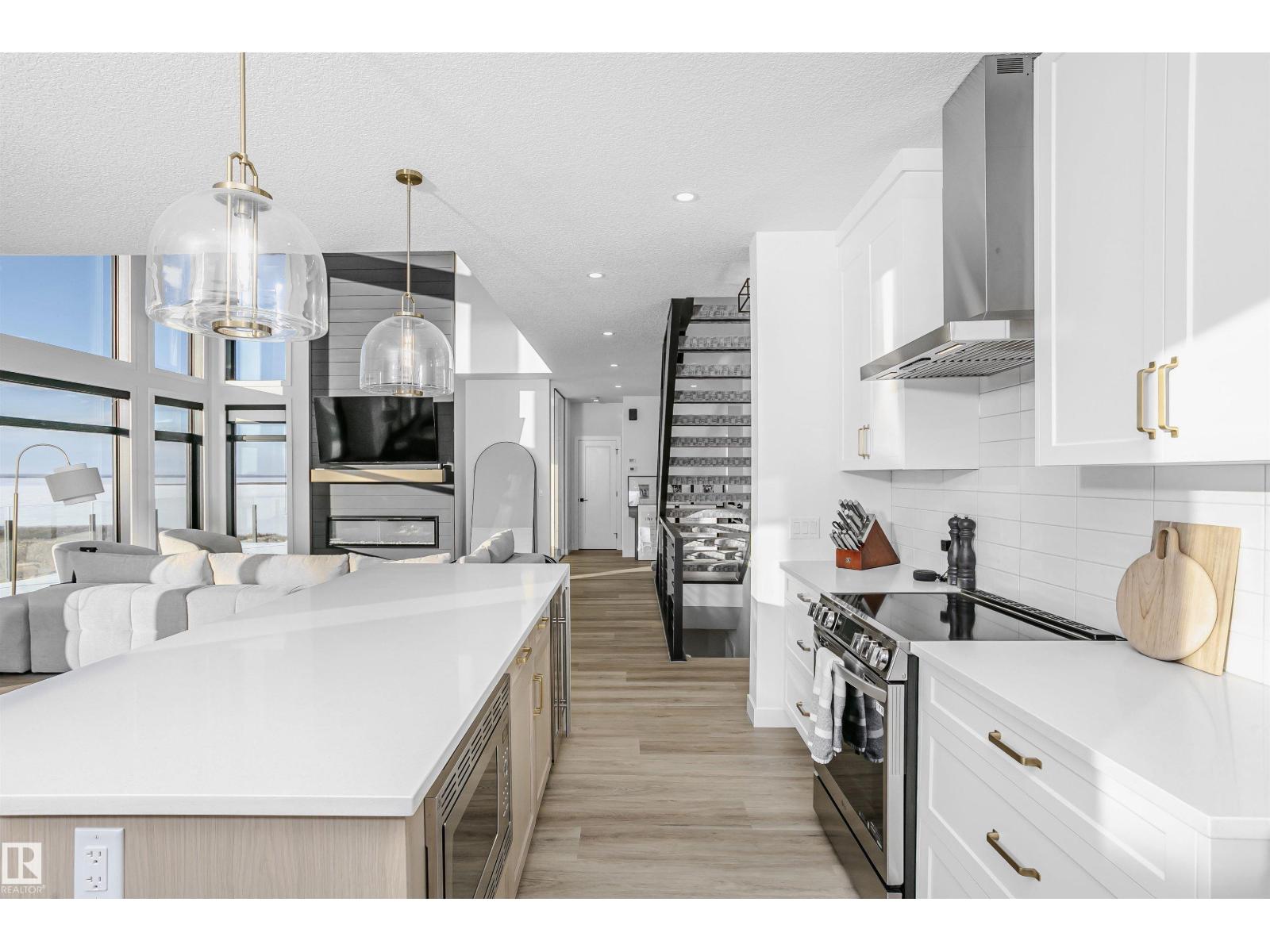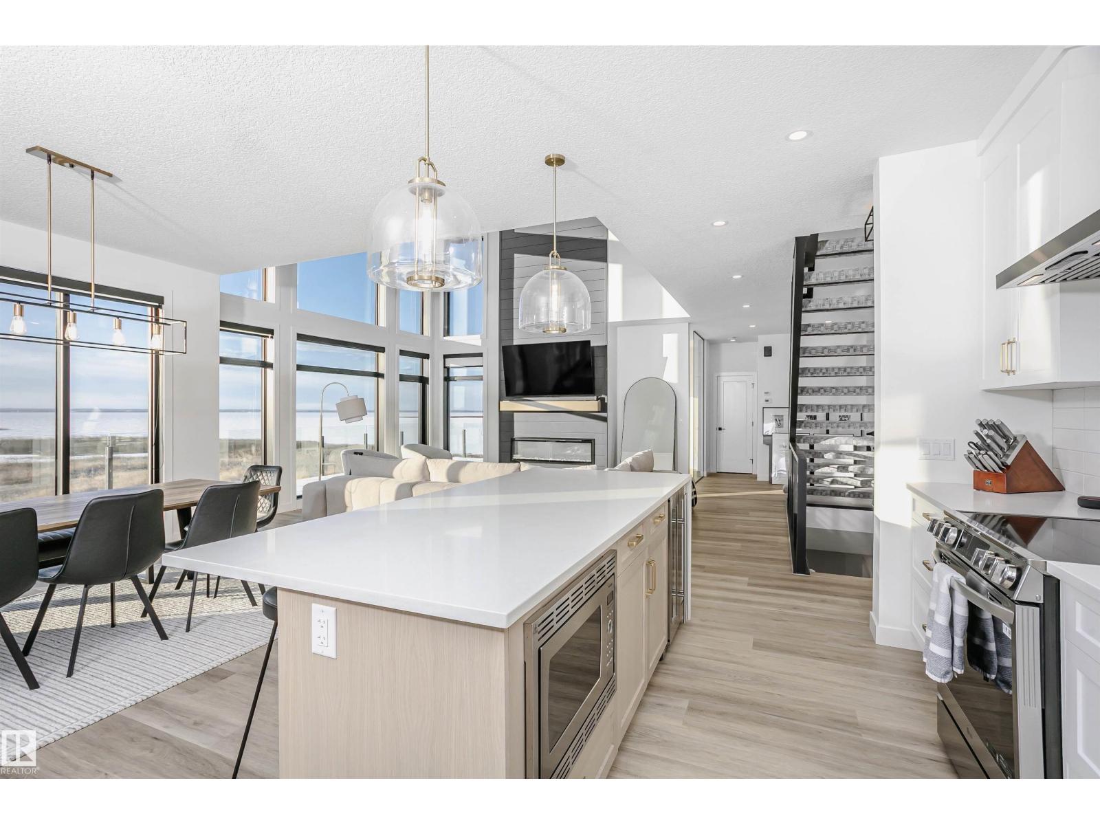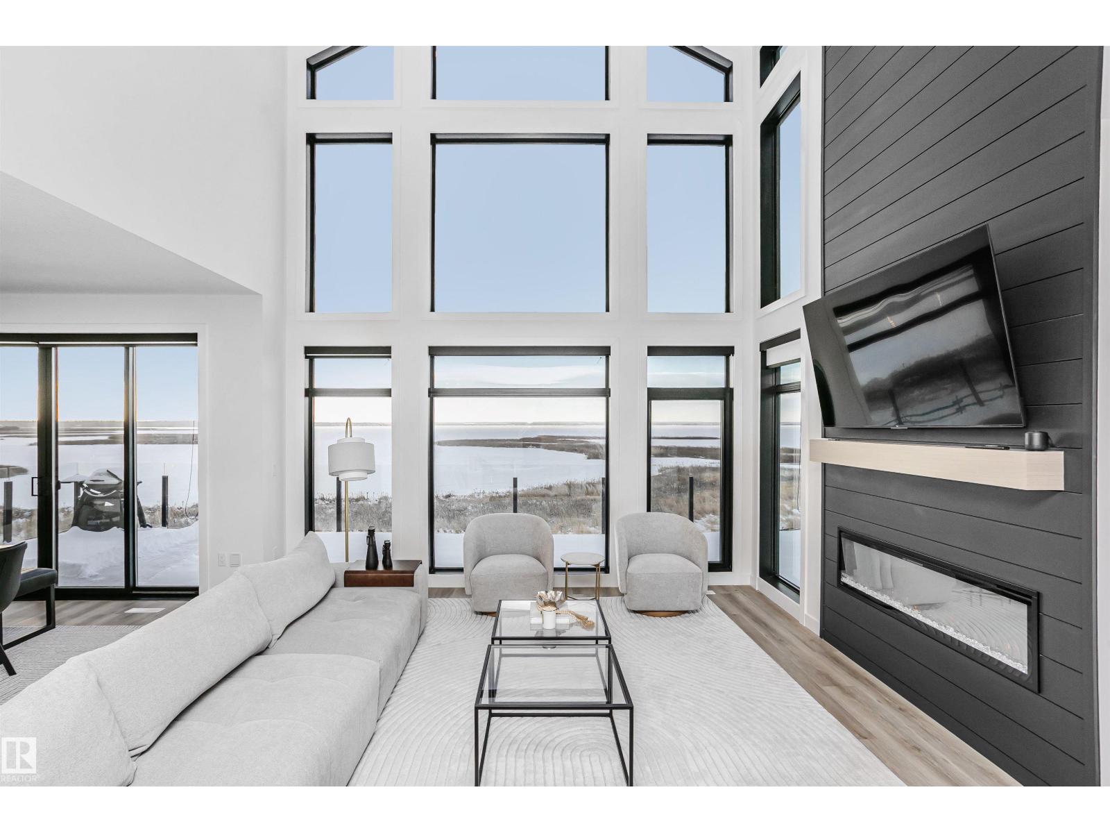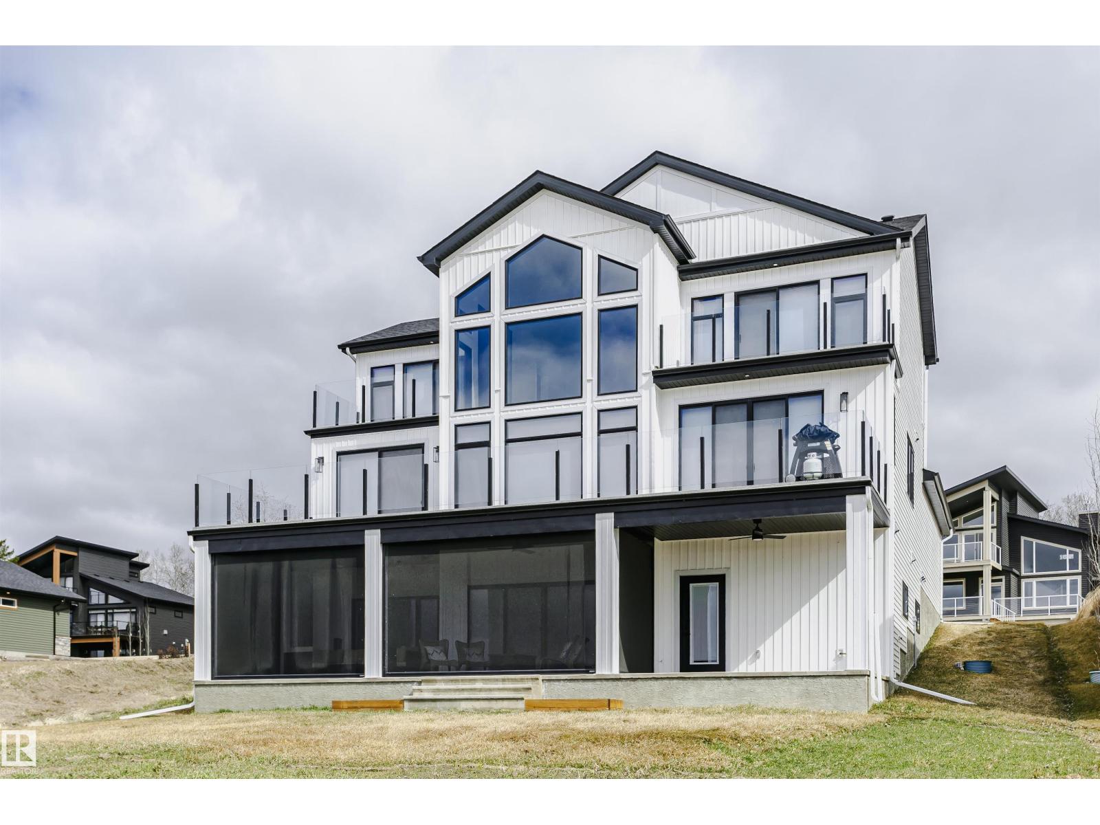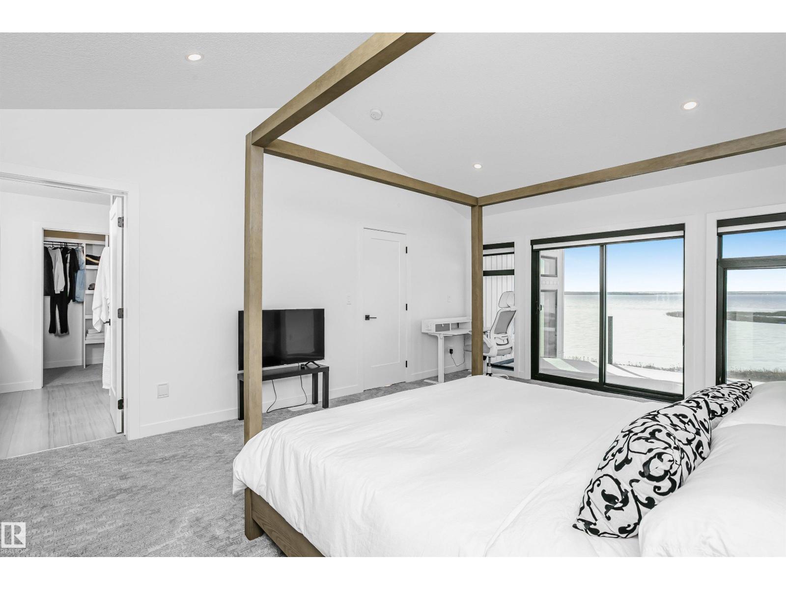Amazing custom built WATERFRONT WALKOUT 2 story now available. Soaring vaulted clearstory story ceilings on the main floor great room featuring an island kitchen, large lakeside dining, floor to ceiling f/p feature, glass wall to den and large patio sliders out to the south facing main deck. The main floor is also host to a large front entry, garage mudroom (both with hockey benches), a 2 piece bath, laundry and walkthrough pantry. Rise up the open web stair case with custom rail to the upper floor which is home to 2 PRIMARY bedrooms with ensuites, walk-in closets and each its own private lakeside deck. They are on opposite ends of the home connected by a bridge. Downstairs you will find a huge family/rec room with wet bar, 2 more bedrooms (one with built-in bunks), 2 bathrooms and doors out to the screened-in patio. You will also enjoy the triple attached garage, gas bbq hook-up, central a/c, community pool along with fitness centre, clubhouse, beachfront park, marina and R/V storage option. (id:53676)
