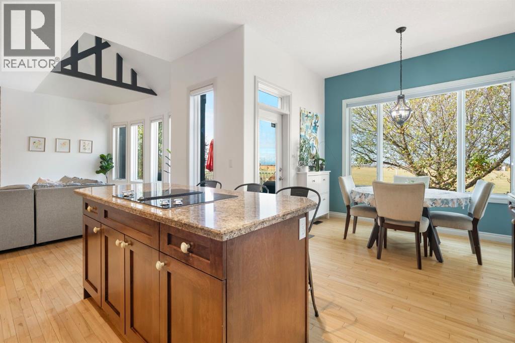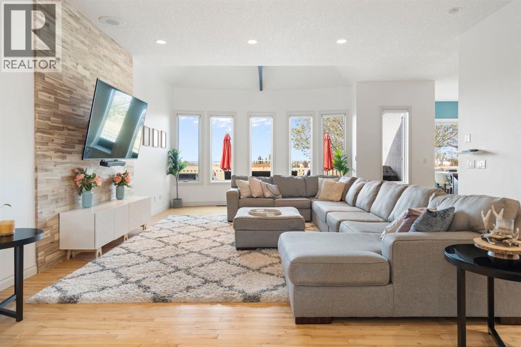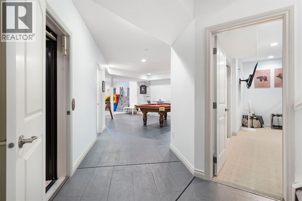 **Click to view our CINEMATIC VIRTUAL TOUR and iGuide** Welcome to 7 Rockcliff Landing—a stunning French Country-style bungalow in prestigious Rock Lake Estates in Rocky Ridge, offering over 4,200 sqft of fully finished living space. A grand main entrance, a bright open-concept main floor, and uninterrupted Rocky Mountain views create an impressive yet inviting atmosphere from the moment you walk in. The main living space flows effortlessly into a private west-facing backyard, backing onto walking trails and green space. Designed for both family life and personal retreat, this home features: Two heated attached garages. Optional his-and-hers home offices. Luxurious primary suite with dual walk-in closets and private ensuites. This home has another 4 bedrooms, including a walk-up basement with separate entrance. Private elevator for full accessibility. The fully finished lower level is a family's dream, complete with a rec room, wet bar, steam shower, cold room, and safe room (3'x4')—all warmed with in-floor heating. Extras include a custom mudroom with dog wash, flexible office/guest spaces, and abundant storage throughout. Upgrades: $40K into backyard landscaping including a putting green, full central air (2022), water softener (2023), new steam shower unit (2023), new IBC tankless hot water (2023), New carpet on main (2021). Minutes to Royal Oak Centre, walking distance to Co-op, and quick access to major routes—this home offers luxury, comfort, and convenience in one perfect package. Book your private tour today—this gem won’t last! (id:53676)