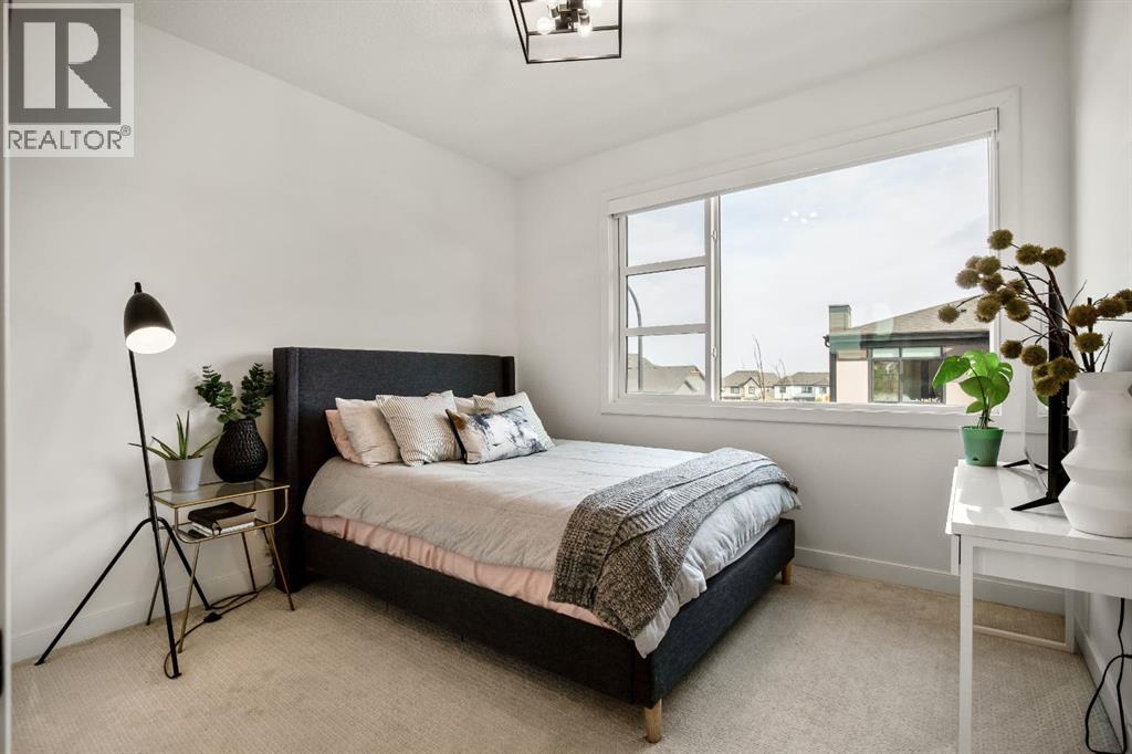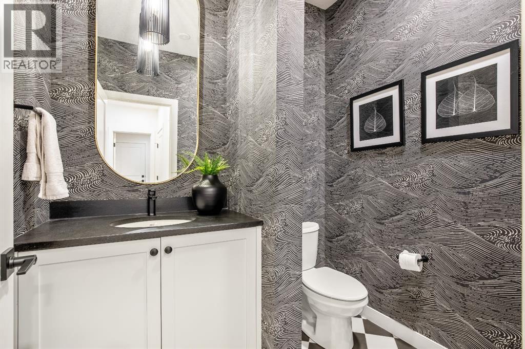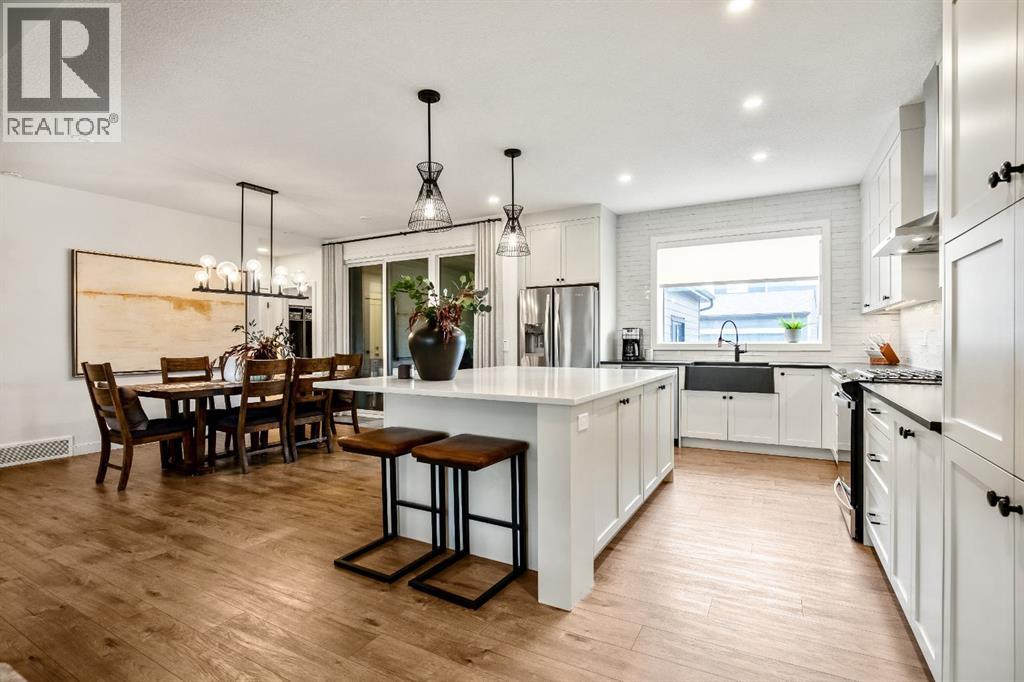 Enjoy luxury living in the estate community of Alpine Park. Intentionally built on a quiet green space with only a pedestrian pathway and no traffic out front. As you approach this stunning residence on an oversized corner lot you will notice the great curb appeal and welcoming front porch. This well thought out open concept design will exceed your expectations, with hard surface flooring throughout and soaring 9’ ceilings. The gourmet kitchen is a focal point with custom cabinets that reach to the ceiling, SS appliances with a gas stove, gorgeous stone counters, timeless tile backsplash, a kitchen sink overlooking the courtyard and an oversized island that faces the bright dining room. Enjoy direct access to your own outdoor oasis including a private covered deck with phantom screens creating a great 3 season outdoor space, a lower level deck, and a large lower patio for low maintenance living plus 2 outdoor gas line ( for BBQs or Fire Tables). Adjacent to the kitchen is the spacious living room showcasing a contemporary texture finish gas fireplace. Plus, a bright front home office or study creating the perfect setting to focus and be productive. Avoid the outdoor elements with a rear attached 2 car garage, mudroom, and stylish powder room tucked out of the way. As you head upstairs you will notice the contemporary railing that opens to the large bonus room with tray ceiling detail perfect for movie nights, 2 well sized bedrooms, a 5pc main bath with stone counters, and a convenient upper-level laundry room are situated away from the Primary retreat. This sanctuary has a tray ceiling detail and luxurious ensuite including a relaxing free standing soaker tub, massive tiled shower, dual sinks, and expansive walk in closet. The basement is fully complete with a gym, 4th bedroom, 4 pc bath, and large rec room with wet bar. Every detail reflects unparalleled craftsmanship from the comforts of air conditioning, custom drapes, designer lights, upgraded plumbing fixture , a hose bib in the garage, and energy efficiencies of a tankless hot water tank, and a dual zone hi velocity heating system. Enjoy easy access to the mountains, via Stoney trail, downtown 20 minutes away, and 5 minutes to Costco and shopping. View the virtual tour or schedule a time to view the home today! (id:53676)
