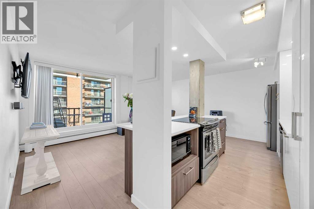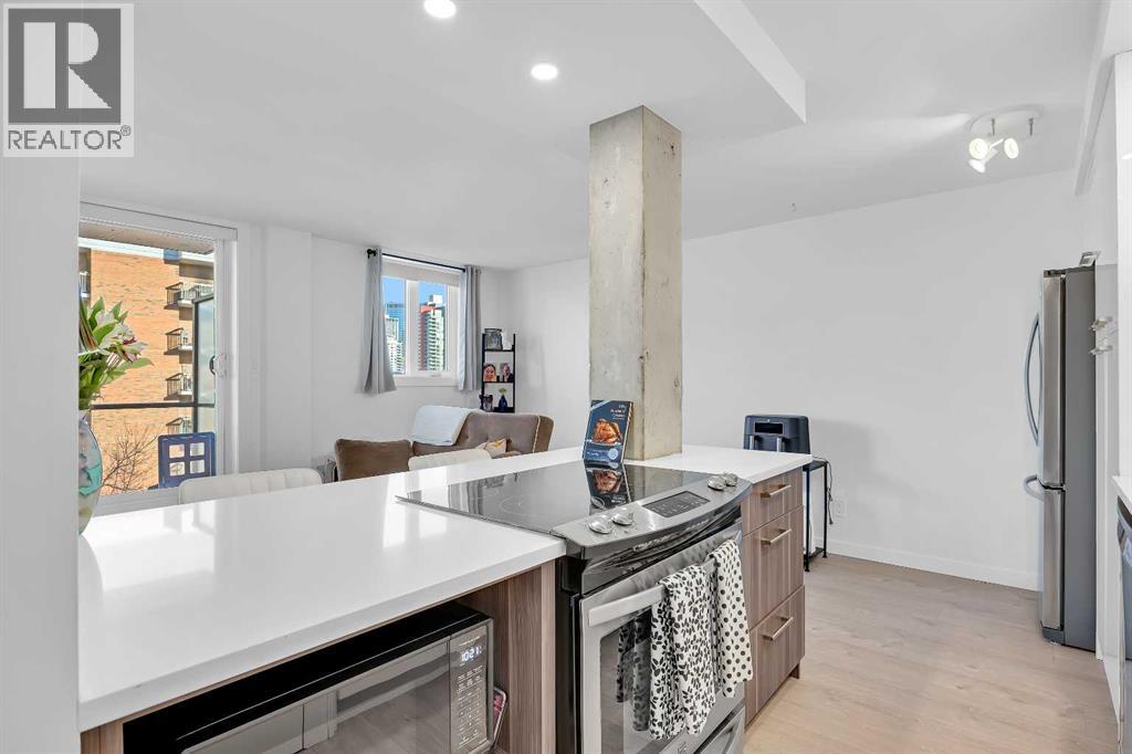 Fully renovated and move-in ready, this northwest corner 2 bedroom condo in the Beltline offers exceptional value in one of Calgary’s most walkable locations — and one of the best-priced 2-bedroom condos in the area. Whether you are a first-time buyer or investor, this turnkey property stands out in today’s market.The open concept layout features a modern kitchen with quartz countertops, high gloss cabinetry, stainless steel appliances, marble backsplash, and a functional breakfast bar. The bright living area opens to a private balcony with downtown and sunset views, complemented by new window coverings throughout.Both bedrooms are generously sized, with the primary offering double closets with built-in organizers. The updated bathroom includes full-height tile and quartz counters. Additional highlights include in-suite laundry, in-suite storage, a separate storage locker, and a designated parking stall with plug-in.This pet-friendly building with no weight restrictions has recently completed major exterior building improvements, including the full exterior envelope, windows, and roof providing buyers with added confidence in the condition of the building and long-term ownership.Located just steps from restaurants, shopping, transit, and downtown amenities, this is a stylish, low-maintenance Beltline home priced to sell. (id:53676)
