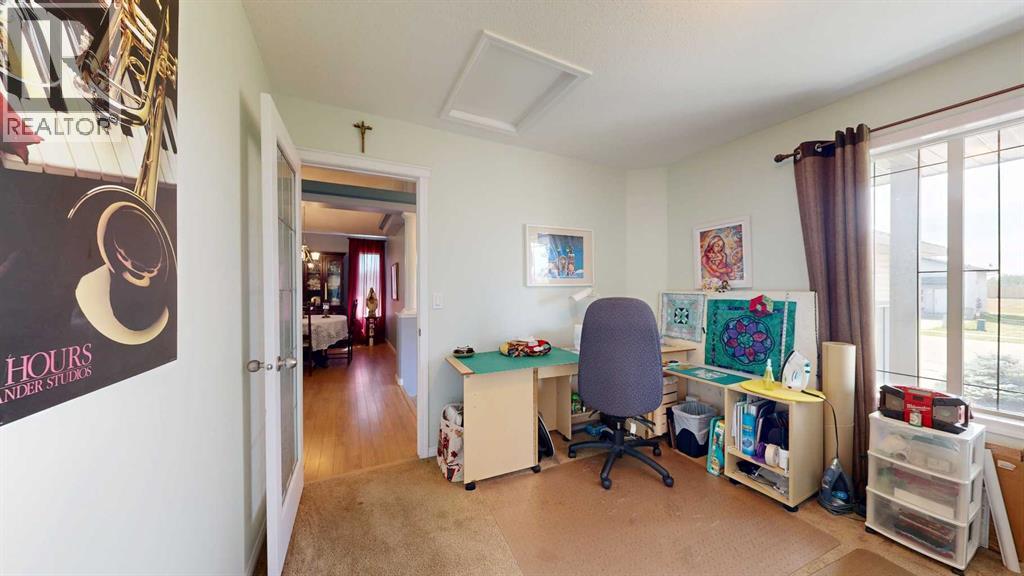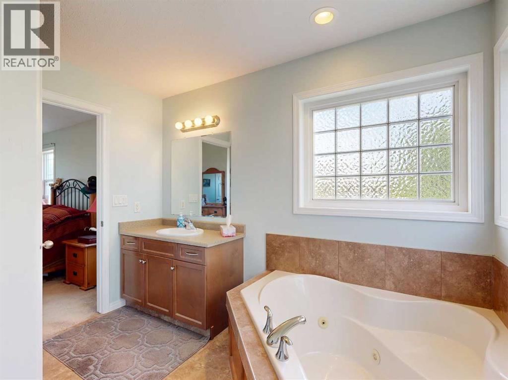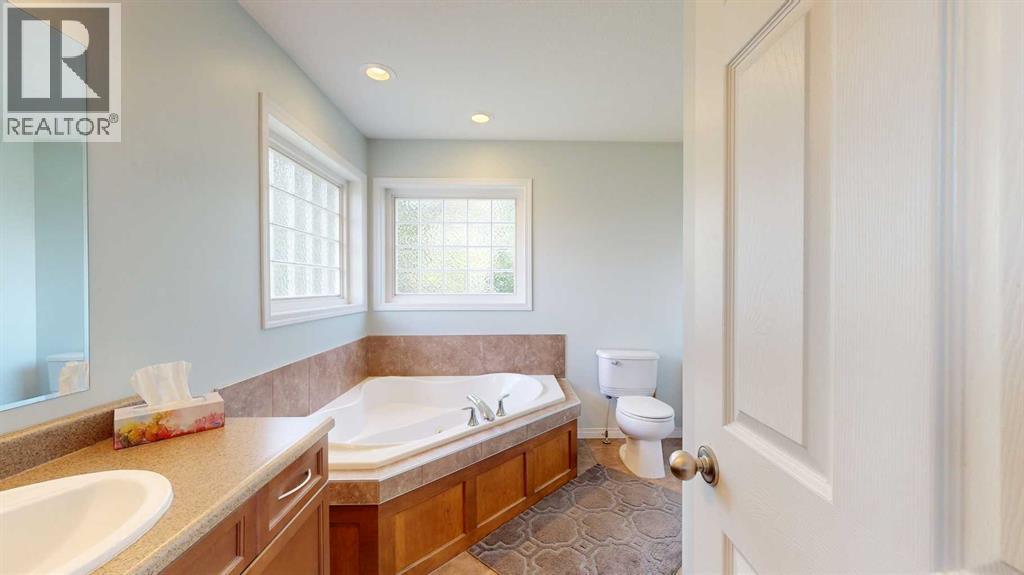 No neighbours behind plus greenspace with playground on the one side, make this one-owner, clean & well cared-for bungalow a true gem!Cute front curb appeal will sweetly draw you in to the home's interior, beginning with the spacious, quarry tile foyer, allowing you to comfortably greet & send off all your guests. Laundry room is just to the side, which also then lets you to carry on into the attached, double garage. Up a few stairs and you immediately notice the intriguing floor plan, detailed wall features, vaulted ceilings and lovely engineered hardwood flooring.Head past the second bedroom that would make for an excellent home office or home-based business and the formal dining area, for those extra special occasions.From there to the open layout of the kitchen and dining area for daily meals with doors leading to back deck, and then the great room at the rear of the home, with its gas fireplace & abundant windows providing generous amounts of natural light to the space. Kitchen has Templeton maple toffee cabinets, attractive tile backsplash, eat-up island with the double sinks, & corner pantry.Finishing the level is the main bathroom, hall closet and primary bedroom with walk-in closet & ensuite with luxurious corner jetted tub & separate shower. Big windows are in the undeveloped basement, which is just eagerly awaiting you and your imagination to complete. Striking & very private backyard will be your personal oasis with its black chain link fencing, assorted varieties of mature trees, bushes & perennials, side radial patterned brick patio & garden areas. Too hot outside? Step inside. Life’s a breeze with the home’s air conditioning. Property is located close to Mother Theresa school and easy access to both the City’s south & west ends. Very active housing market in Grande Prairie currently so get moving and don’t pass this one by! Contact a REALTOR® today for more details or to view! Take the 3D Tour, too :) (id:53676)
