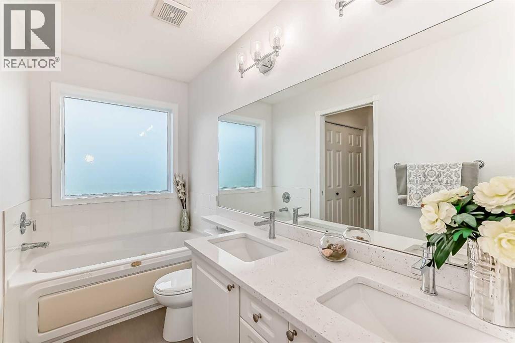 Listing is conditionally sold. Lister will open door to show for any back up offers in this beautiful property. Welcome to see this fully renovated 2-Storey home in the sought-after community of Hidden Valley. Featuring over 2100 sq. ft. of living space across three levels, this 4 -bedroom, 3 1/2 bath gem is move-in ready with front-drive double attached garage and a brand-new driveway. Extensive UPGRADES included freshly painted walls throughout the home.; gleaming new quartz countertops and new tile backsplash in every bathroom and kitchen; all brand-new stainless stainless steel kitchen appliances; new Lighting fixtures and bathroom flooring. Main floor with open-concept layout, bathed in natural light. The cozy living room features durable laminate floors and a gas fireplace. The renovated Kitchen boasts a bright extended breakfast nook, walk-in corner pantry and ample cabinetry and counter space for home chef. Upstairs, the spacious primary suite offers a walk-in closet and 5-piece ensuite with a Jacuzzi tub and separate shower. Two additional bedrooms and a 4-piece full bath complete the upper lever. The professionally fully-developed basement adds even more value, featuring a large family/recreation room; a fourth bedroom, a stylish 3-piece full bath with a custom stone-tiled shower and a storage area for family use. This property includes Central Air Conditioning for year round comfort and No Poly-B Plumbing for added peace of mind. This home is located on a quiet street near all amenities( schools, bus services and Hamptons shopping center), with a private backyard, spacious (22'8"x16'6") deck and valley view. To see is to appreciate. Property is vacant ready for immediate possession. (id:53676)