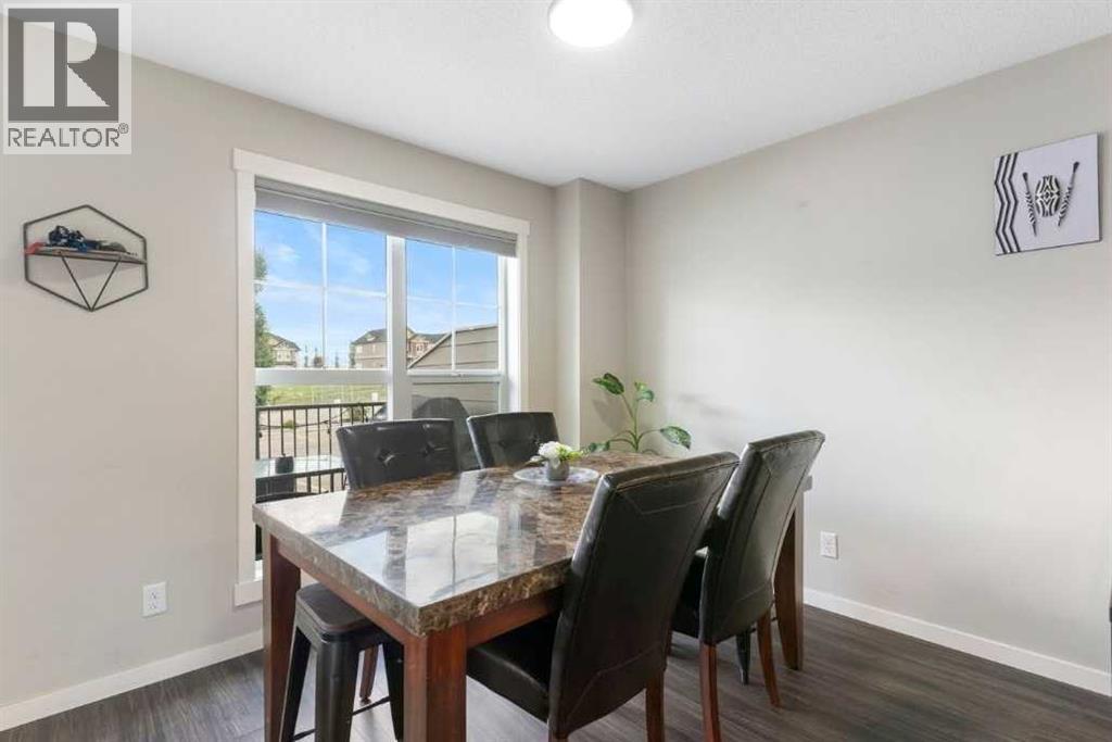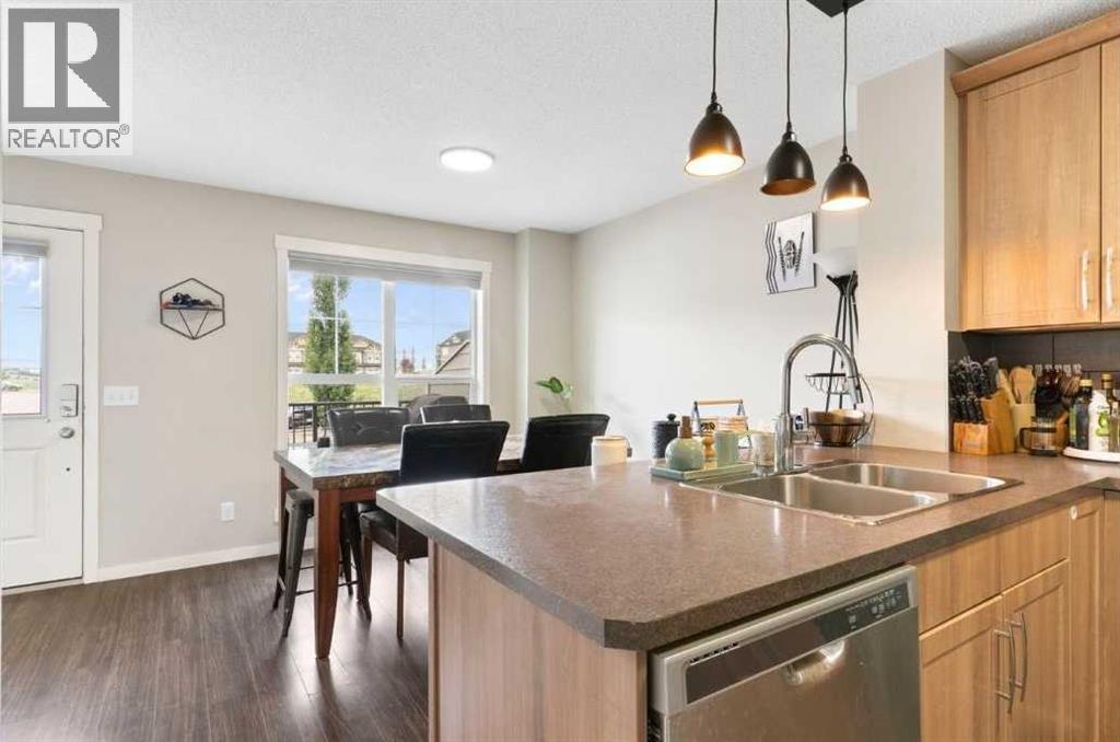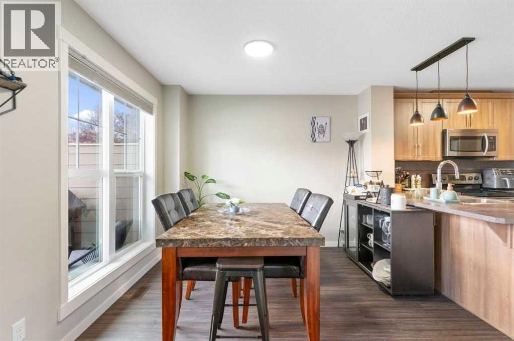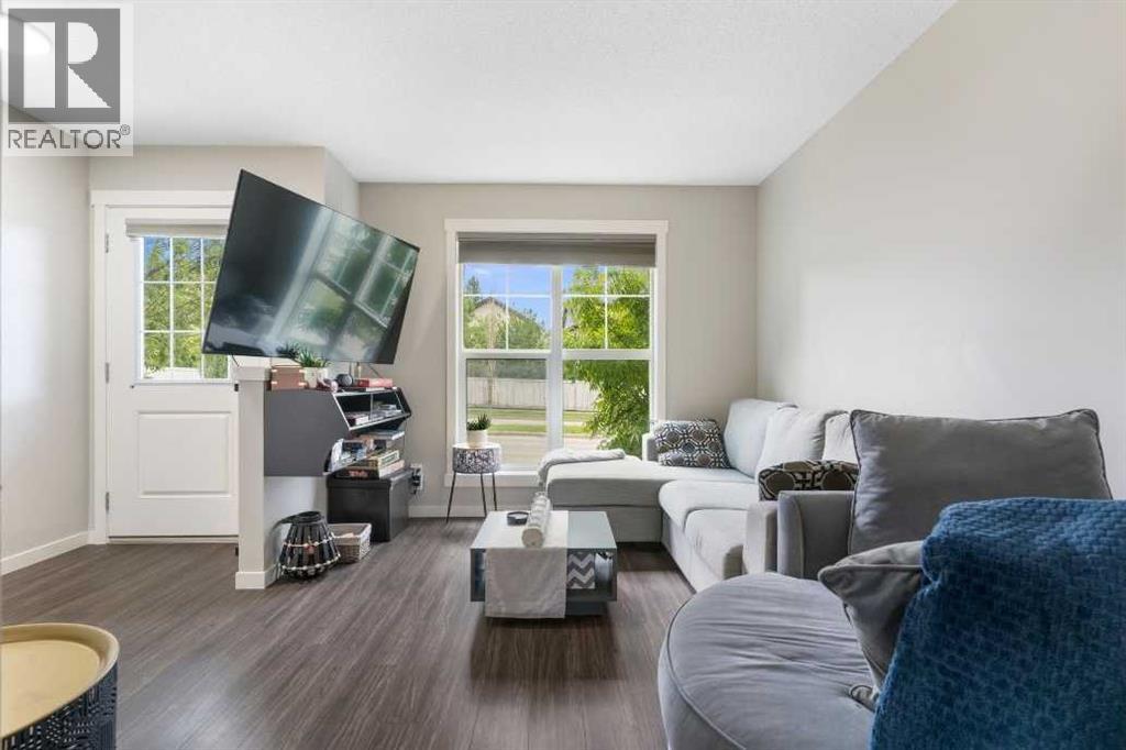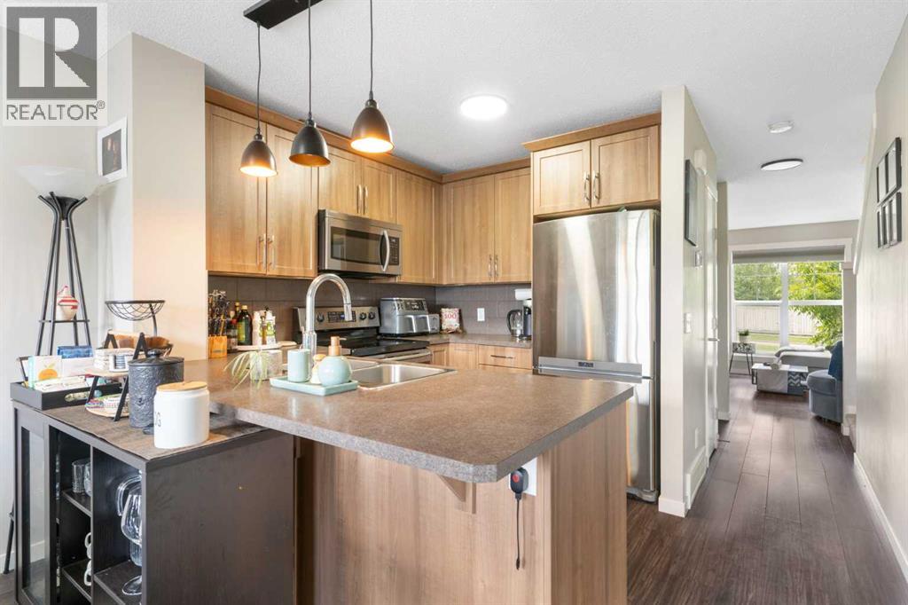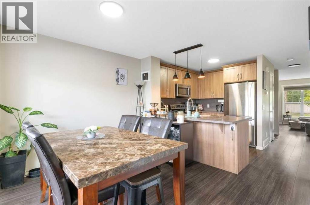 Step into comfort and style in this beautifully designed townhouse, offering over 1,100 square feet of well-planned living space in Cochrane’s sought-after Sunset Ridge community. As you enter, you're greeted by a welcoming dining area and kitchen, featuring warm caramel-toned cabinetry that adds a rich, modern touch. This space flows seamlessly to the back deck—perfect for morning coffee or evening BBQs in a quiet outdoor setting. The main floor also boasts a bright and airy living room, offering a cozy space to relax, with views of the charming, tree-lined Sunset Drive. Upstairs, two generously sized bedrooms provide comfort and privacy, including a spacious primary suite with direct access to a large 4-piece bathroom. With ample storage and room to unwind, the bathroom is both functional and luxurious. Two dedicated parking stalls offer everyday convenience, while the unfinished basement serves as a blank canvas—ideal for future development into a home office, gym, or additional living area. Set in a peaceful neighbourhood surrounded by mountain views, parks, walking paths, schools, and local amenities, this townhouse is the perfect blend of lifestyle and potential. (id:53676)