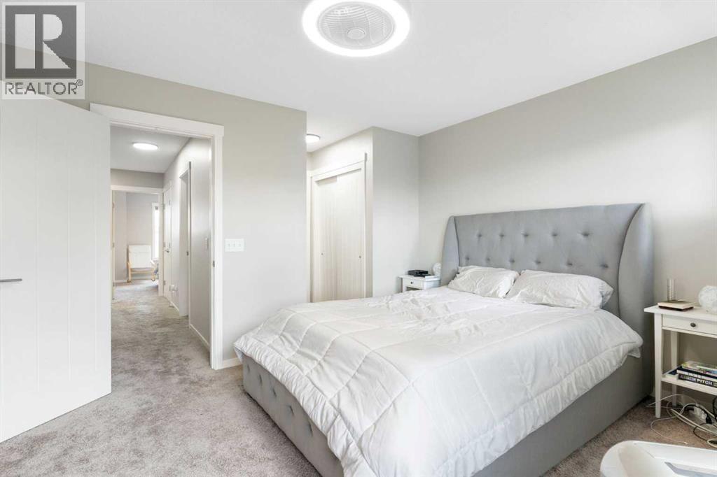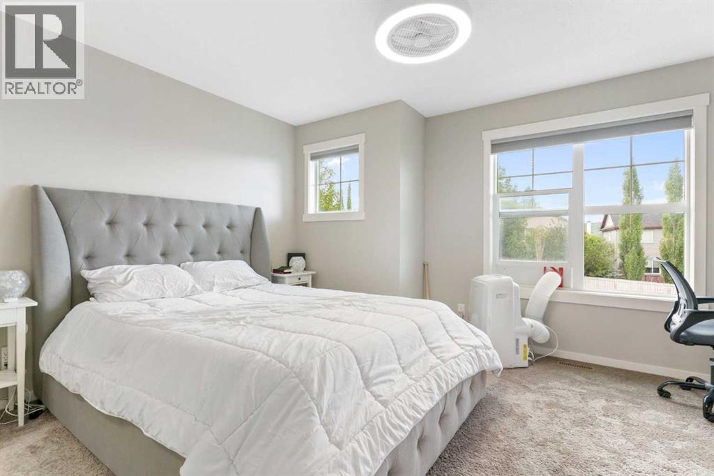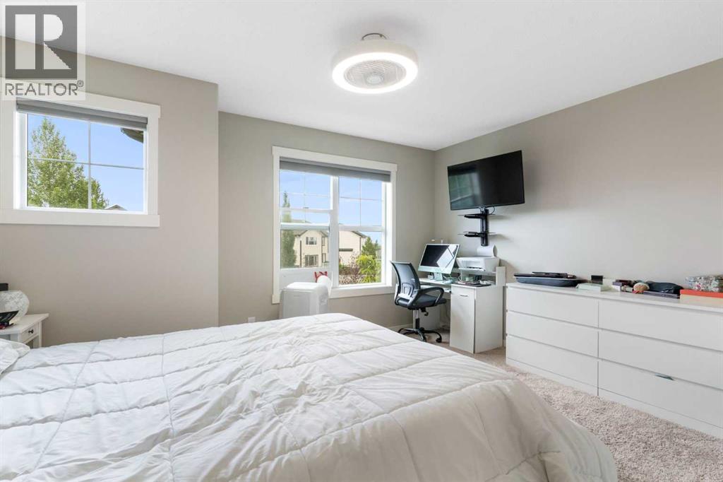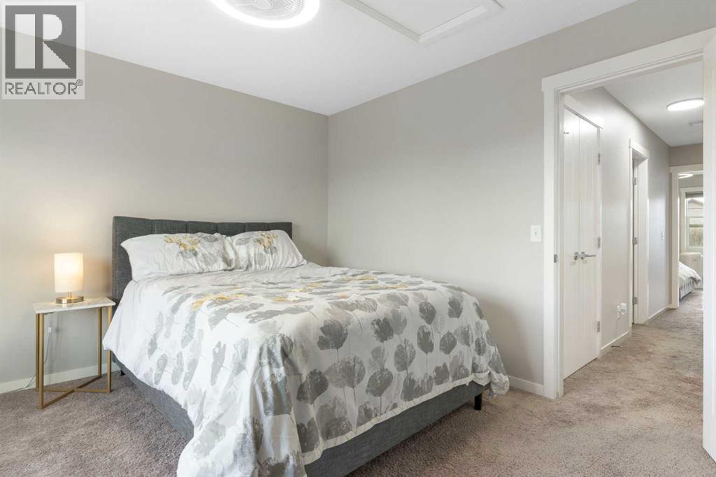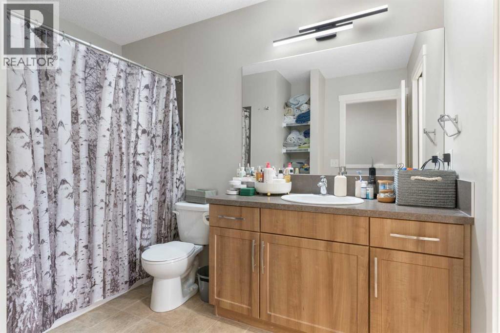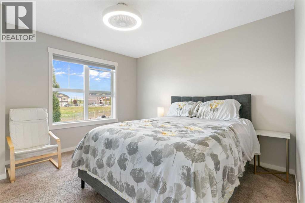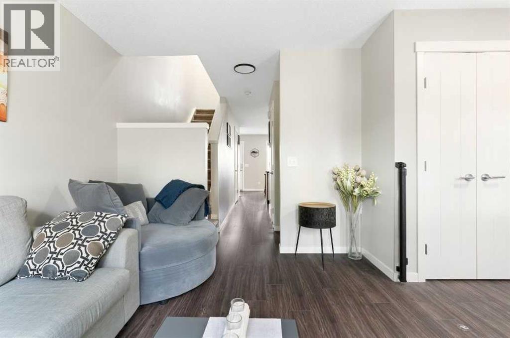 Step into comfort and style in this beautifully designed townhouse, offering over 1,100 square feet of well-planned living space in Cochrane’s sought-after Sunset Ridge community. As you enter, you're greeted by a welcoming dining area and kitchen, featuring warm caramel-toned cabinetry that adds a rich, modern touch. This space flows seamlessly to the back deck—perfect for morning coffee or evening BBQs in a quiet outdoor setting. The main floor also boasts a bright and airy living room, offering a cozy space to relax, with views of the charming, tree-lined Sunset Drive. Upstairs, two generously sized bedrooms provide comfort and privacy, including a spacious primary suite with direct access to a large 4-piece bathroom. With ample storage and room to unwind, the bathroom is both functional and luxurious. Two dedicated parking stalls offer everyday convenience, while the unfinished basement serves as a blank canvas—ideal for future development into a home office, gym, or additional living area. Set in a peaceful neighbourhood surrounded by mountain views, parks, walking paths, schools, and local amenities, this townhouse is the perfect blend of lifestyle and potential. (id:53676)
