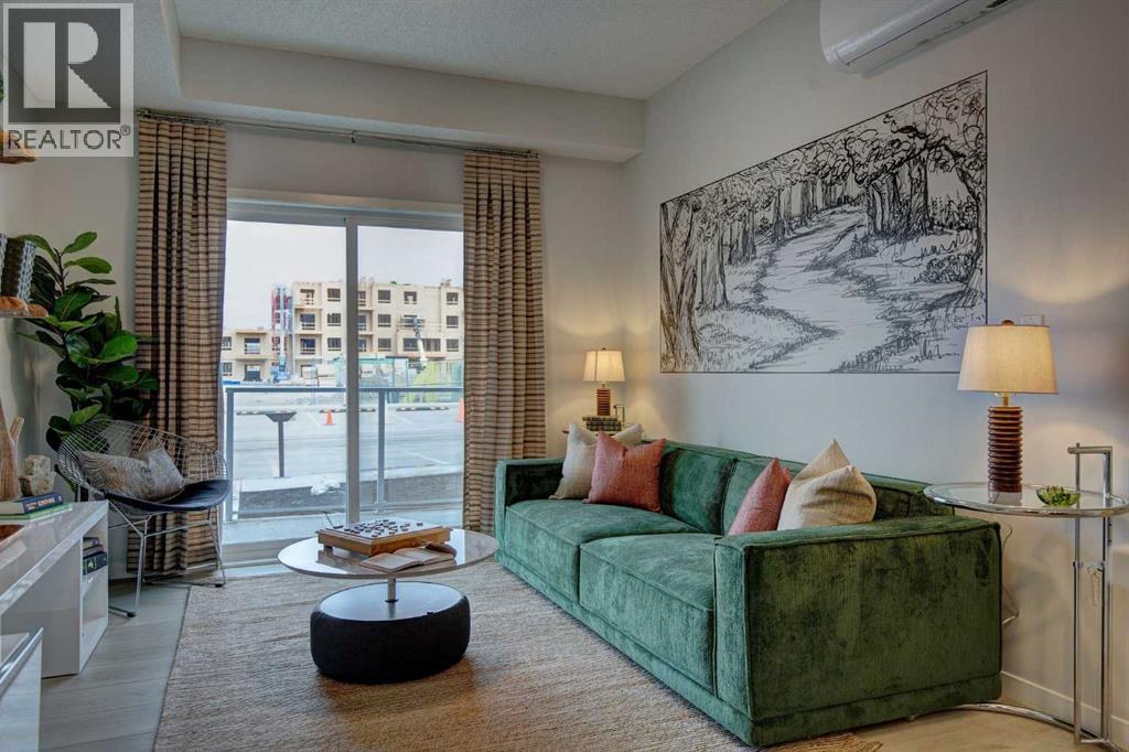 ***Please contact the listing agent for information regarding available units and current inclusions - estimated completion April 2027-December 2028*** Welcome to MINTOFT PLACE ON BLACKFOOT TRAIL, a brand-new development by CEDARGLEN LIVING, 6x Customer Insight Builder of Choice Award winner. This “B” floor plan offers 574.83 sq. ft. RMS (629 sq. ft. builder size) with 1 bed + 1 bath, and a bright open-concept layout with 9’ ceilings and LVP flooring throughout common areas, carpets in the bedrooms and closets (option to upgrade to LVP). The modern kitchen features quartz countertops, large island with eating area, stainless steel appliances, undermount sink, and pantry. The living area is ideal for entertaining and relaxing after a long day. The primary bedroom includes a walkin closet and a large bright window. Additional highlights include Low-E triple-glazed windows, ERV fresh air system, BBQ gas line, in-suite laundry, sound-reducing membrane, glass patio railing, and 1 titled underground parking stall. A once in a lifetime community off Blackfoot Trail and Southland Drive in Calgary. Nature lovers will appreciate that Sue Higgins park and Carburn Park are a short stroll away. Deerfoot meadows shopping centre, anchored by Costco, Ikea and Walmart, along with many other amazing shops and restaurants are located in very close proximity. Pet and rental friendly complex. (id:53676)