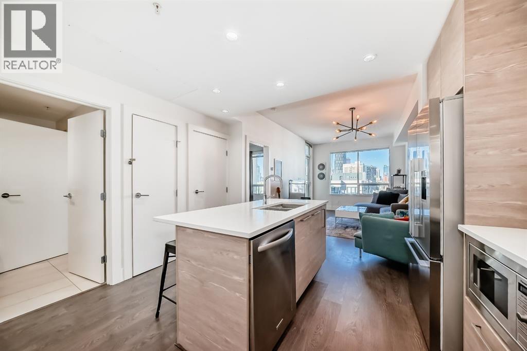 Welcome to this stylish west-facing 1-bedroom, 1-bathroom condo offering stunning downtown views, ideally located just steps from the C-Train. Whether you're a first-time homebuyer or an investor, this property presents an exceptional opportunity — currently operating as a successful short-term rental with a 30-day minimum stay.The condo comes fully furnished, with all modern and thoughtfully selected decor included in the sale, making it completely move-in or rental ready. Inside, you'll find a bright and open floor plan that seamlessly connects the living area to a sleek, modern kitchen featuring stainless steel appliances and contemporary cabinetry.Comfort is enhanced with central air cooling, and convenience is at your fingertips with an underground parking stall and a storage locker. The building offers a well-rounded lifestyle with exclusive access to a fully equipped gym, a beautifully designed party room, a comfortable guest suite for visitors, a dog wash station, and a community garden for those with a green thumb. This home effortlessly combines style, comfort, and location — just minutes from the heart of downtown. Don’t miss your chance to own this turnkey gem. Call today for your private showing! (id:53676)