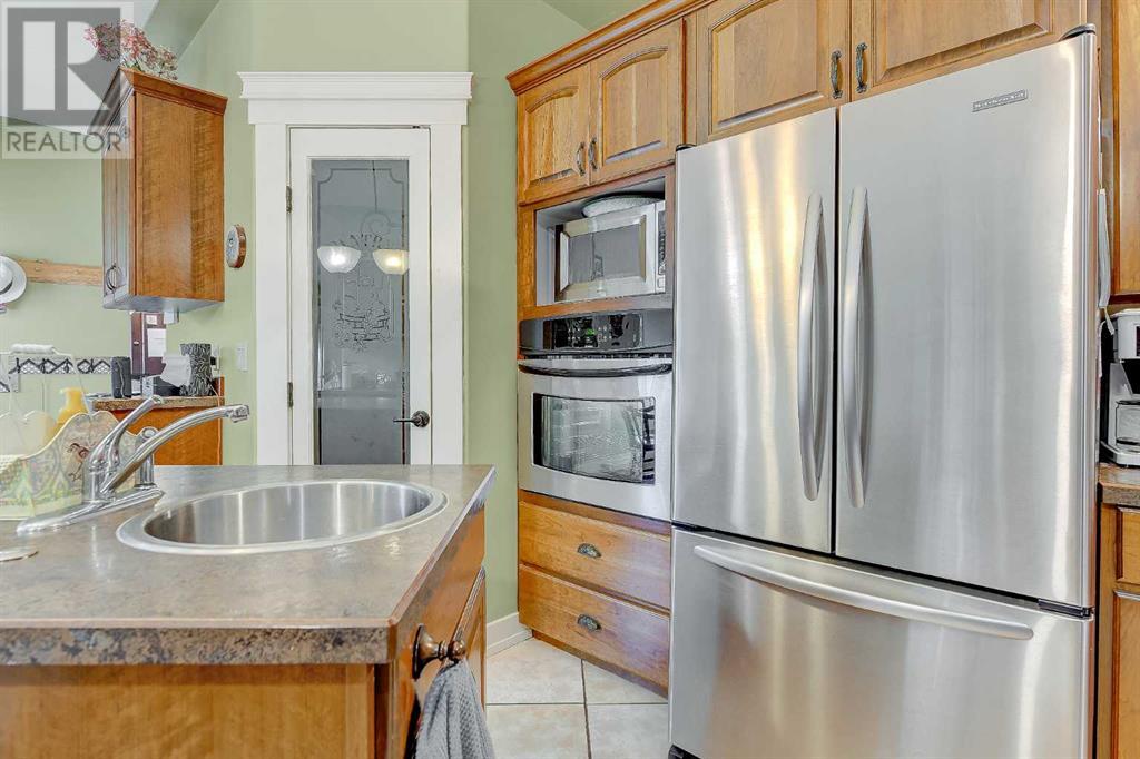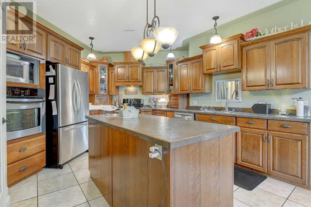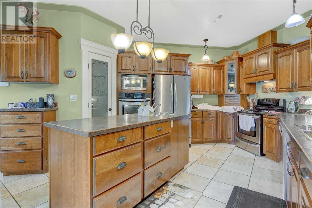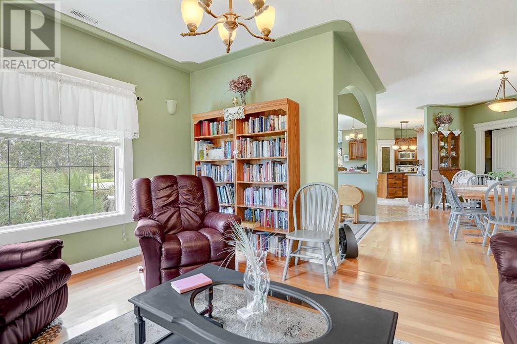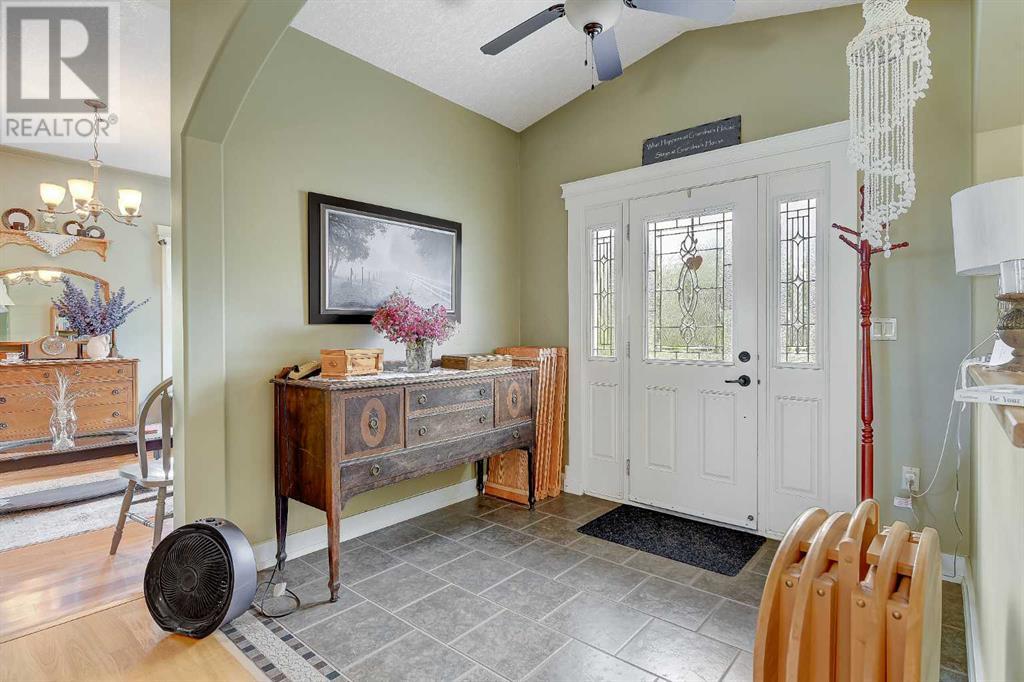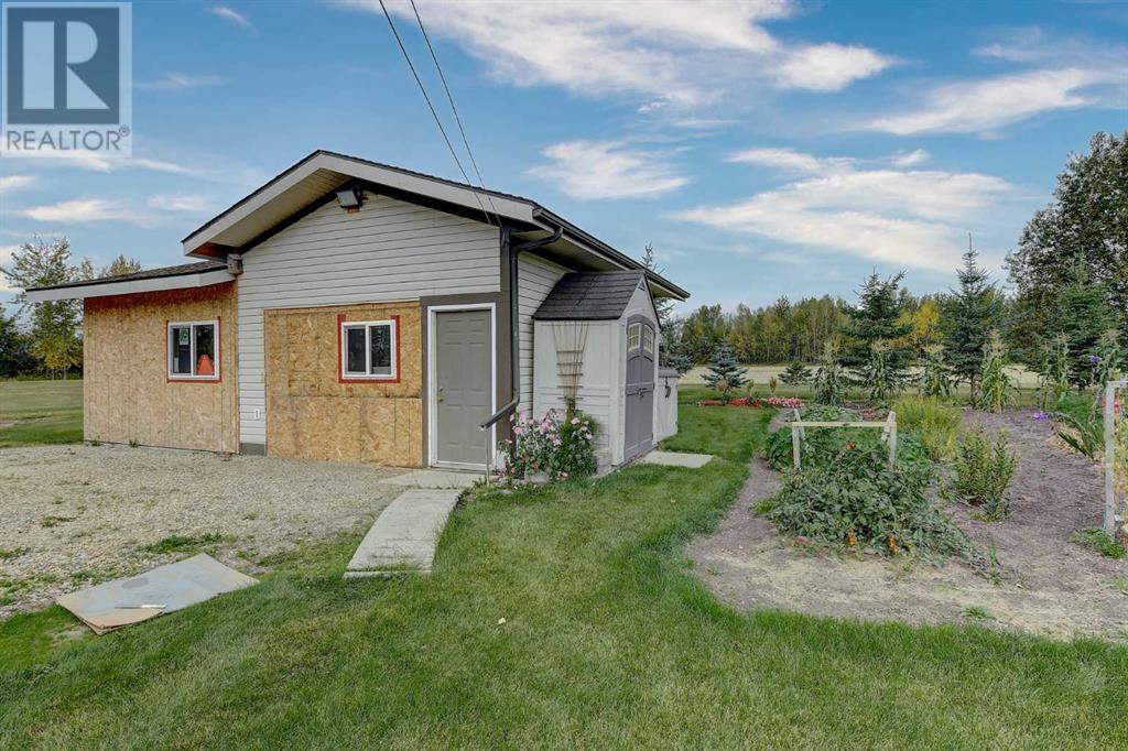 Check out this one of a kind bungalow located on an impeccably landscaped 3.71 acres near Crooked Creek / Ridgevalley. This home was custom built by the current owner and is situated on a reinforced poured concrete slab-on-grade foundation with an attached 2-car garage. Some of the features of the home include 9-foot ceilings, gas fireplace in the living room, a spacious primary bedroom with and 4-piece ensuite and jetted tub. The efficient and functional kitchen layout includes a built-in second oven and an abundance of custom cherry wood cabinetry. Flooring is mostly ceramic tile, hardwood and laminate and the home has both in-floor and forced-air heating. Beyond the home, the site has incredible landscaping with a treed front portion of the lot to provide privacy, stamped concrete walk-way and rear patio, garden area, underground irrigation for the lawn, allen-block enclosed garden beds, poured concrete front parking pad off the garage. The driveway and parking area are solid and underlaid with geotextile fabric. Out-buildings include a 24 x 30 workshop and a 8.5 x 20 shed on skids with a barn door entry. This pristine property shows pride of ownership at every turn. It's an easy 40 minute commute to the city with the sun at your back both morning and evening. (id:53676)