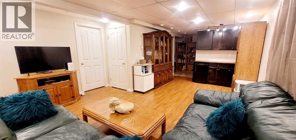 PRICE DROP $424,900 to $419,900****Welcome to this beautifully finished 4-bedroom, 2 bathroom bungalow with double attached garage built by True-Line, this home is perfectly situated on a quiet close and backing onto a serene green space. Enjoy the best of outdoor living near Maskepetoon Park, and only a 5 minute stroll to walking paths & stunning views of the Red Deer River. Step inside to a bright, thoughtfully designed main floor featuring a functional U-shaped kitchen complete with a corner pantry and an abundance of cabinetry. Large rear-facing windows flood the home with natural light, creating a warm and inviting atmosphere throughout the living space, highlighted by custom built-in shelving. The main level offers 2 spacious bedrooms, including the primary, along with a well appointed 4-piece bathroom. Downstairs, the fully developed basement is made for entertaining and relaxation, featuring a generous family room, dry bar, 2 additional bedrooms and second 4-piece bathroom. Cozy up year-round with in-floor heating or choice of central A/C! Enjoy the convenience of a dedicated laundry room with built-in cabinetry and folding counter. Step outside to your private backyard retreat. Fully fenced and beautifully landscaped with mature trees, paving stone accents, and a stunning two-tier covered deck ideal for entertaining. Some more added info includes, shingles replaced in2015, A/C installed in2017as well as hot water tank(s), and plumbing upgraded throughout the house in 2023! There's even RV parking for added flexibility. Make this your dream home and book your viewing today before it's gone! (id:53676)