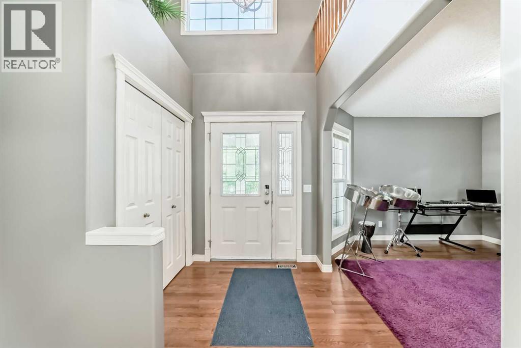 Welcome to this large family home sitting on a walkout lot with views of the Rocky Mountains! Just under 3000 total sq ft with a fully finished walkout basement. The main floor is wide open with upgraded kitchen cabinets and gleaming granite countertops. There is hardwood floors through to the kitchen, dining room & home office/den. The centre island is massive with dual undermount sinks and extra storage. There is plenty of cabinets and drawers plus a large corner pantry! Overlooking the front of the house is an oversized home office or den area~ perfect flex area for whatever you need. The garage is drywalled, insulated and heated. Upstairs you will love the custom wood railings and the huge Bonus room~ amazing entertainment space will hold any sized furniture. The Primary Bedroom has vaulted ceilings, a large walkin closet, a nice mountain view and an incredible 5 pce luxurious ensuite boasting dual sinks in the vanity, granite countertops, a deep corner soaker tub, a cozy stand up shower with corner seat and tiled floors. The two spare bedrooms are a good size (one has a handy walkin closet) and they can share the main 4 pce bathroom. The walkout level is fully finished with tiled flooring, knockdown ceiling with recessed lighting and large windows. There is a corner wet bar with upper & lower cabinets. The living room has a gas fireplace for extra comfort. There is one huge bedroom (the 4th one) and a large den (no closet but does have a stand up armoir & a big window). The basement has a full 4 pce bathroom as well. There is a good sized brick patio at the walkout entrance, a stone sidewalk comes from the front for easy access to the back. The private west facing backyard is a good size. The home has central AC, builtin vacuflo and can include the two spare fridges and the stand up freezer too. This is a great family for a large extended family. Easy walk to the Crestmont Community centre. Quick drive to get to the 16th Ave, Stoney Tr and downtown. (id:53676)