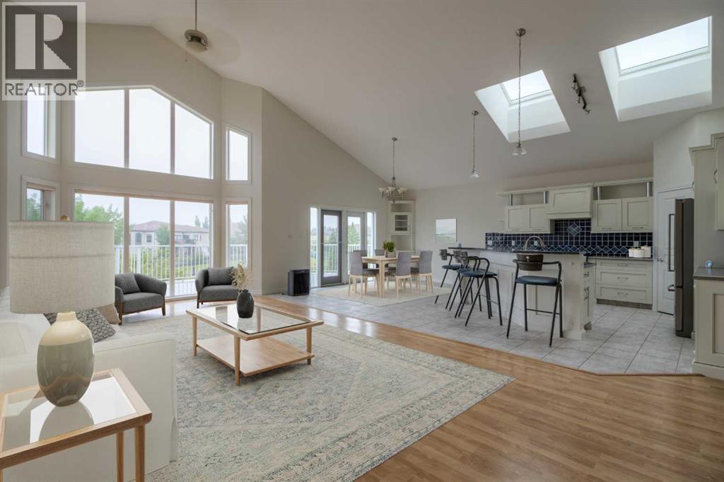 Welcome to 73 Fairmont Park Landing! This exclusive cul-de-sac in the community of Fairmont in south Lethbridge provides privacy and serenity just a couple blocks from some of the best shopping and dining options in the entire city. At almost 3,700 square feet, this custom built one-owner home sits on one of the most desirable feature lots in the neighborhood, backing onto Fairmont Park Lake. Entering the home, you're immediately greeted by an expansive foyer that leads either up into the open concept main floor or down into the massive walk out basement family room. Tall vaulted ceilings and large park-facing windows on the main floor showcase the tremendous main living space with room for cooking, dining, and entertaining all in one area. The patio doors lead to a full-width vinyl deck with maintenance-free aluminum picket railing, and at almost 400 square feet of space, this deck is ready for entertaining family and friends or simply lounging while overlooking the lake. You can also access the rear deck from the large primary bedroom, where you'll find a jetted tub, enclosed shower, and private water closet. Completing the main floor features, you'll find a powder room and a separate laundry room with cabinetry, shelving, and a side by side washer/dryer. Each bedroom on the upper floor over the garage area has a large closet and private 3-piece bathrooms, something you don't often see in most homes. Moving into the fully developed basement, you'll find a tremendous family room with a wet bar, corner fireplace, and access to the walkout basement exposed aggregate concrete patio. Adjacent to the family room, you'll see double doors leading to a flex space suitable for a kids play room or home office. A cute desk area is neatly tucked beside the entry to the flex space, giving you yet another spot for reading, computer or tidy storage. Two more large bedrooms and a 3-piece bathroom complete this terrific family home. A triple-car front attached garage is ready for all of your parking and storage needs and the decorative concrete work on this immaculately landscaped yard is sure to please. Come and see why Fairmont Park Landing is one of the most sought-after neighborhoods in Lethbridge. Photos contain virtual staging. NEW CONCEPT PHOTOS ADDED 08/13/25. THESE ARE VIRTUALLY RENDERED TO SHOW AN EXAMPLE OF A POSSIBLE RENOVATION TO THIS HOME. Homeowner can assist in coordinating this renovation, if you so desired! (id:53676)