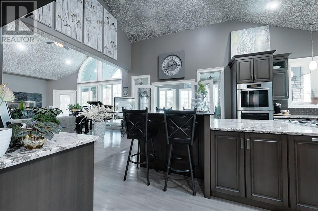 An exquisite luxury home with a stunning view of one of the most beautiful lakes in Alberta is the best way to describe this immaculate home. This 3755 sq ft home on 1.83 acres is stunning from the moment you walk in the door. The chef's kitchen features a Miele gas stove, double wall oven, pantry, large island with granite and marble countertops, sub-zero wine fridge, tall ceilings, and three large windows over the kitchen sink with a stunning view of the beautiful yard. Open to the living area with a double-sided marble fireplace, a sunroom that is a perfect spot to enjoy your morning coffee, and a formal dining room to host all of your family and friends. The master retreat is truly your oasis, complete with a large walk-in closet, access to the deck, and an ensuite with his/hers sinks, steam shower, air-jetted tub, heated floors, and towel racks. You will also find a large private office, a bedroom, a three pc bathroom, a mud room that is large enough for the whole family, and a laundry room with tons of workspace on the main floor. Follow the stairs to the 2nd-floor loft to find your stunning guest suite. The suite features a statement gas fireplace, a sunken living area that flows out to your private deck, and an impressive ensuite with claw foot tub, steam shower, and heated floors. Attached to the home is a triple-car garage with tons of storage and space for all of your toys! Moving to the outside of this one-of-a-kind home, you will find a large cedar deck with a hot tub, Fire Magic outdoor kitchen, and a gas fire pit that is perfect for entertaining or just enjoying the view on this gorgeous property. Some extras on the property include a greenhouse, irrigation system, sound system for both inside and out, and stairs down to the lake. This unique property is what dreams are made of when you view the remarkable Slave Lake sunsets from the privacy of your backyard. (id:53676)