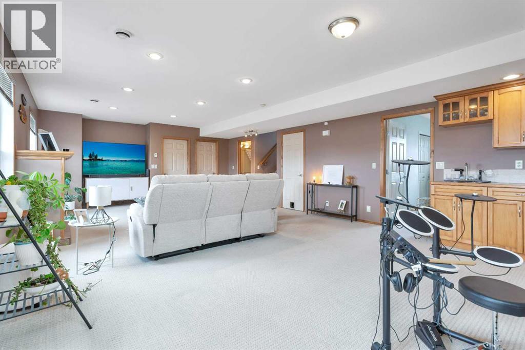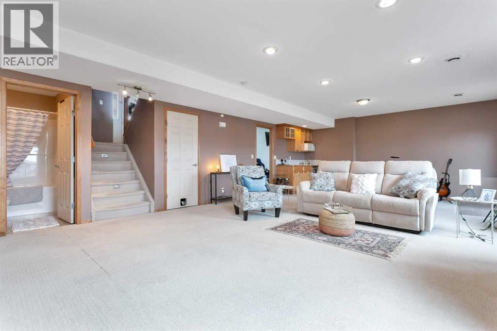 Fantastic walk-out modified bi-level on a quiet close in Fox Run, just steps from schools and walking trails, thoughtfully designed with generous space and flexibility to suit your lifestyle. This great family home offers room to grow with an open floor plan highlighted by a central family room that creates the perfect gathering space for both everyday living and entertaining, along with a functional kitchen featuring a pantry, eating bar, and plenty of quality cabinetry, plus a beautiful deck just off the kitchen ideal for BBQ’ing or relaxing on warm summer evenings. A bright and sunny front office provides an excellent work-from-home option or study space, while two bedrooms complete the main level. The private primary retreat is set on its own level and includes an ensuite and walk-in closet for added comfort and privacy. The fully developed lower level offers a massive family room with great amenities including a wet bar and cozy fireplace, perfect for entertaining or movie nights, along with two additional bedrooms and convenient walk-out access to the large, fenced yard complete with a fire pit, underground sprinklers, and attractive landscaping for enjoyable outdoor living. This bright and sunny home is move-in ready and ready to welcome you. (id:53676)