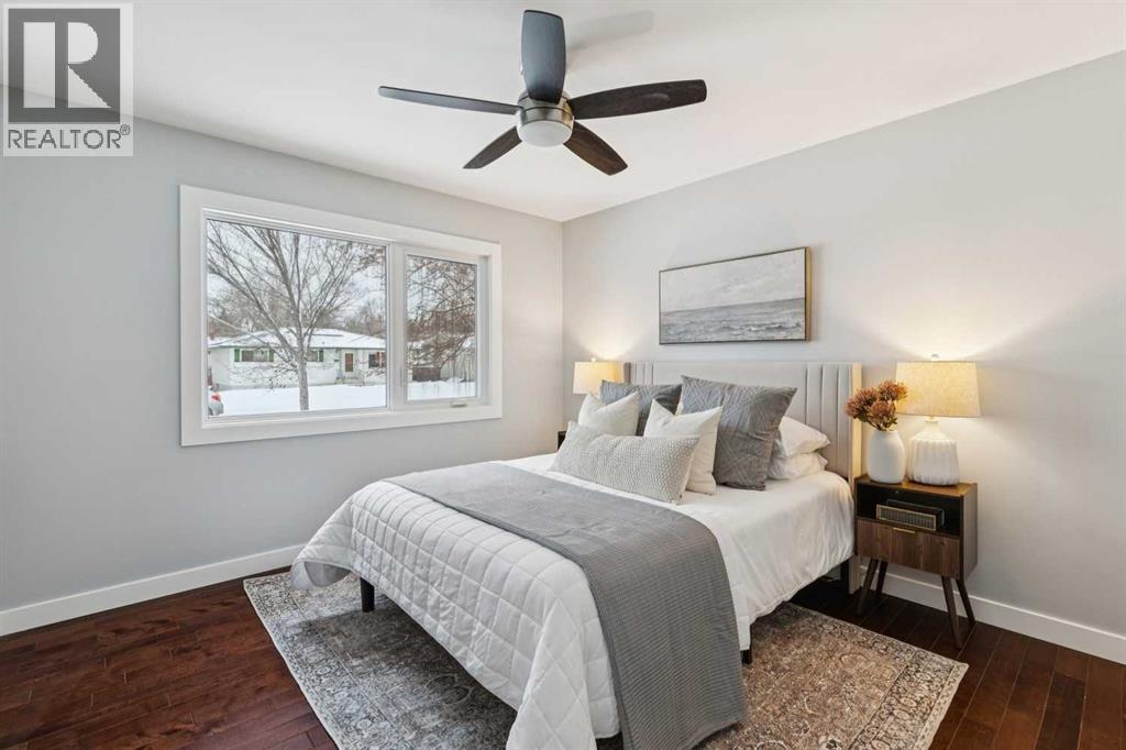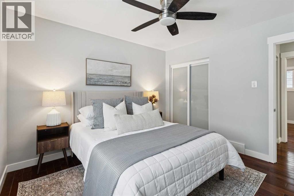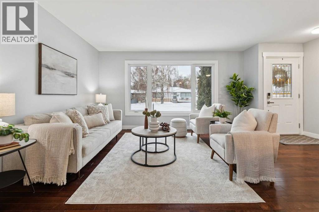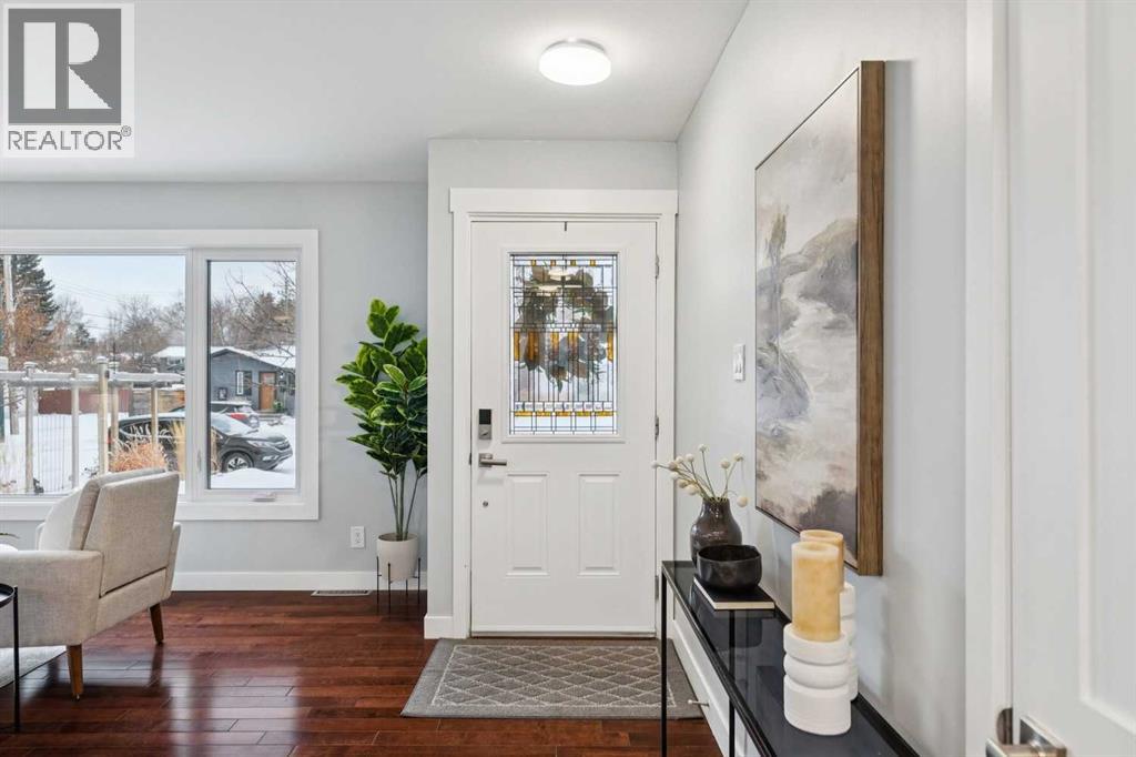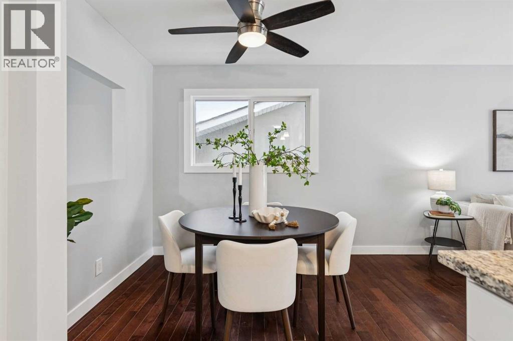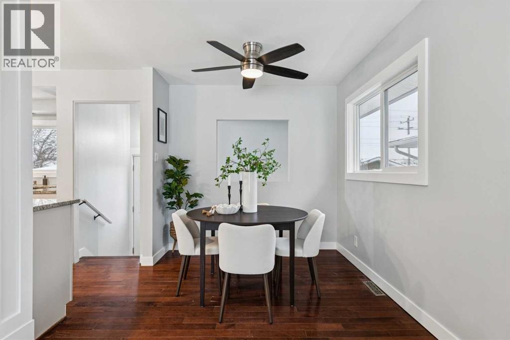 Welcome to this beautifully renovated bungalow nestled in the heart of Fairview, a mature, tree-lined community known for its welcoming feel and unbeatable convenience. Offering immediate possession, this move-in-ready home blends timeless charm with thoughtful modern updates throughout. Freshly painted throughout in 2025 and featuring new carpet in the fully developed basement (2025), the home is bright, refreshed, and ready for its next chapter. Hardwood floors grace the main level, where a large front window (new in 2024) fills the inviting living room with natural light and overlooks the landscaped front yard. The kitchen has been tastefully updated with newly painted cabinetry (2026), stylish new hardware, granite countertops, stainless steel appliances, a brand-new fridge (never used), breakfast bar seating, new lighting, and even a water line behind the fridge for a future ice and water connection. The main floor offers 3 comfortable bedrooms and a full bathroom complete with a tiled tub & shower combo. Downstairs, the spacious lower level creates the perfect retreat with a large rec room with plush new carpet (2025), a new gas fireplace (2022), a 4th bedroom with an egress window, a convenient half bathroom (seller can add shower for additional cost), laundry area with storage, generous storage room with shelving, water softener, and a dedicated workbench space for projects and storage. Comfort continues with air conditioning added in 2021 and rough-in for central vacuum. Outside, the fully fenced backyard is designed for both relaxation and enjoyment, featuring mature lilac bushes, a large deck ideal for summer evenings, garden beds, back alley access, and the rare bonus of an off-leash dog park directly behind. Parking for 4 is effortless with a detached single garage boasting a new smart overhead door (2021), new shingles (2021), and a gas line already run for a future heater, plus 1 driveway stall and 2 additional spaces beside the garage. The house roof was comprehensively redone in 2021 with new shingles, eaves, soffits, and downspouts, and the front windows were replaced in 2024. All new attic insulation in 2021. Ideally situated near Fairview School and Lord Beaverbrook High School, close to parks, shopping, transit, and with quick access to Glenmore Trail and Macleod Trail, this lovingly maintained home offers the perfect blend of comfort, functionality, and location in one of Calgary’s most established neighbourhoods. (id:53676)