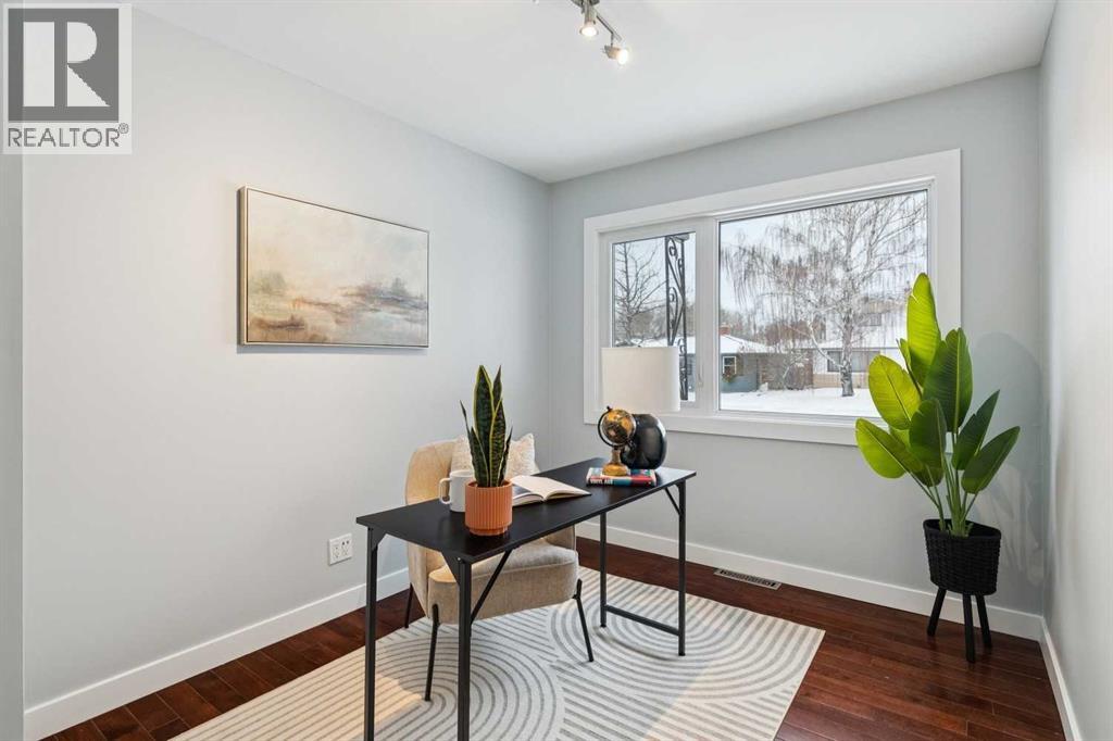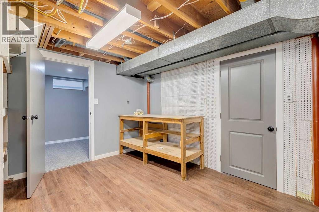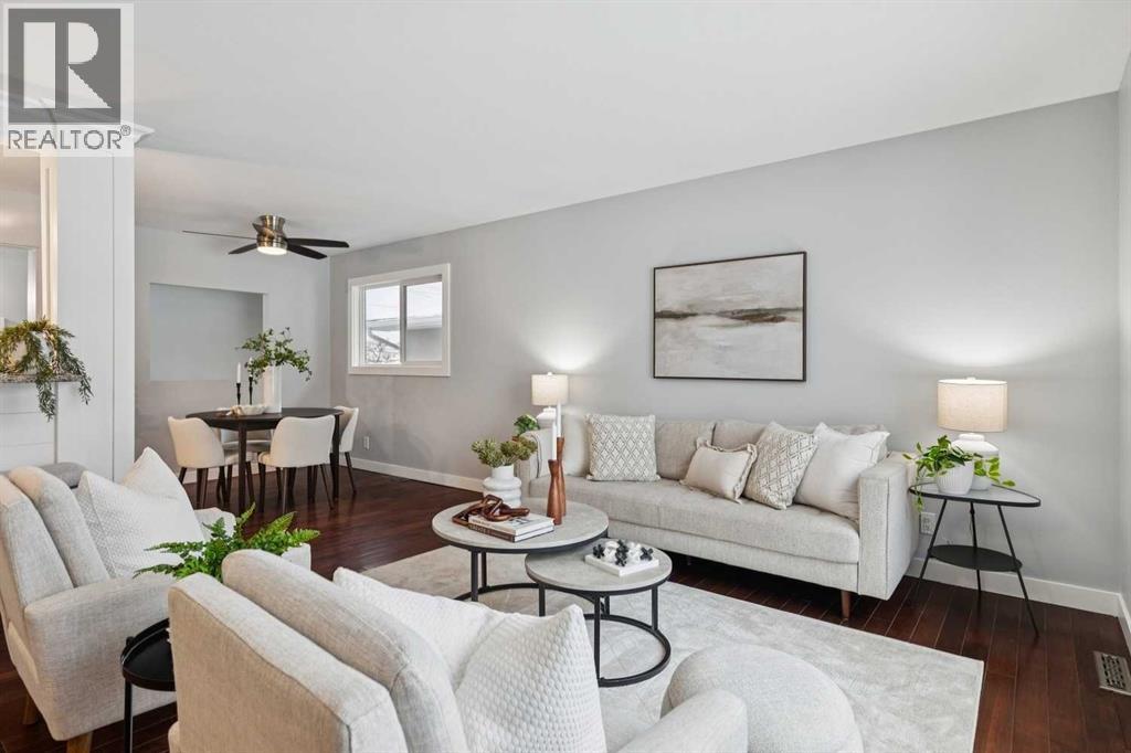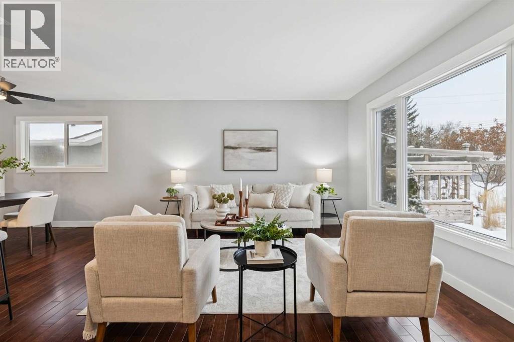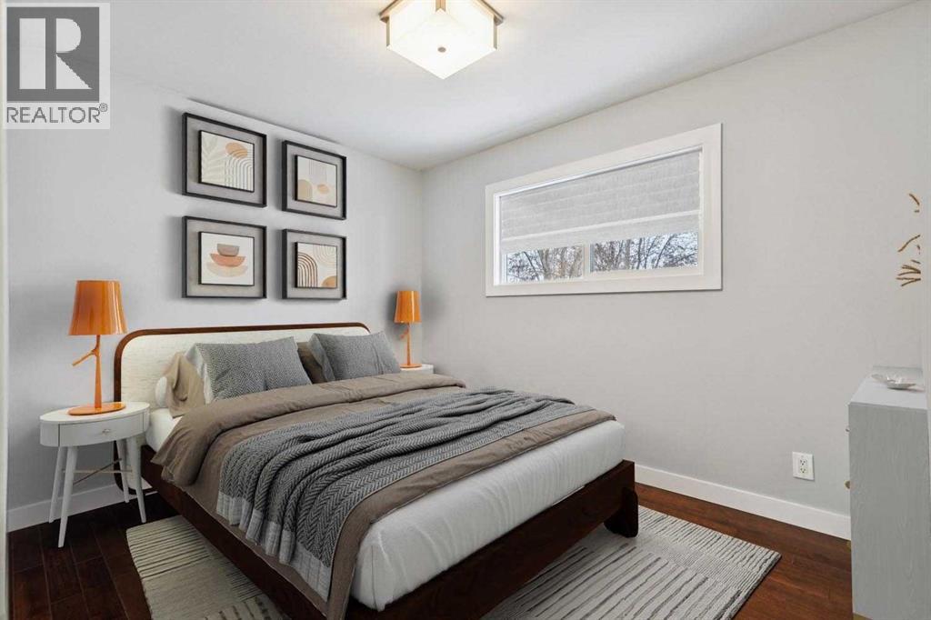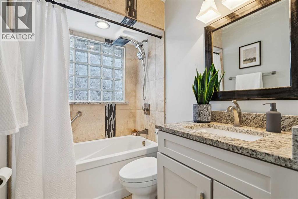 Welcome to this beautifully renovated bungalow nestled in the heart of Fairview, a mature, tree-lined community known for its welcoming feel and unbeatable convenience. Offering immediate possession, this move-in-ready home blends timeless charm with thoughtful modern updates throughout. Freshly painted throughout in 2025 and featuring new carpet in the fully developed basement (2025), the home is bright, refreshed, and ready for its next chapter. Hardwood floors grace the main level, where a large front window (new in 2024) fills the inviting living room with natural light and overlooks the landscaped front yard. The kitchen has been tastefully updated with newly painted cabinetry (2026), stylish new hardware, granite countertops, stainless steel appliances, a brand-new fridge (never used), breakfast bar seating, new lighting, and even a water line behind the fridge for a future ice and water connection. The main floor offers 3 comfortable bedrooms and a full bathroom complete with a tiled tub & shower combo. Downstairs, the spacious lower level creates the perfect retreat with a large rec room with plush new carpet (2025), a new gas fireplace (2022), a 4th bedroom with an egress window, a convenient half bathroom (seller can add shower for additional cost), laundry area with storage, generous storage room with shelving, water softener, and a dedicated workbench space for projects and storage. Comfort continues with air conditioning added in 2021 and rough-in for central vacuum. Outside, the fully fenced backyard is designed for both relaxation and enjoyment, featuring mature lilac bushes, a large deck ideal for summer evenings, garden beds, back alley access, and the rare bonus of an off-leash dog park directly behind. Parking for 4 is effortless with a detached single garage boasting a new smart overhead door (2021), new shingles (2021), and a gas line already run for a future heater, plus 1 driveway stall and 2 additional spaces beside the garage. The house roof was comprehensively redone in 2021 with new shingles, eaves, soffits, and downspouts, and the front windows were replaced in 2024. All new attic insulation in 2021. Ideally situated near Fairview School and Lord Beaverbrook High School, close to parks, shopping, transit, and with quick access to Glenmore Trail and Macleod Trail, this lovingly maintained home offers the perfect blend of comfort, functionality, and location in one of Calgary’s most established neighbourhoods. (id:53676)