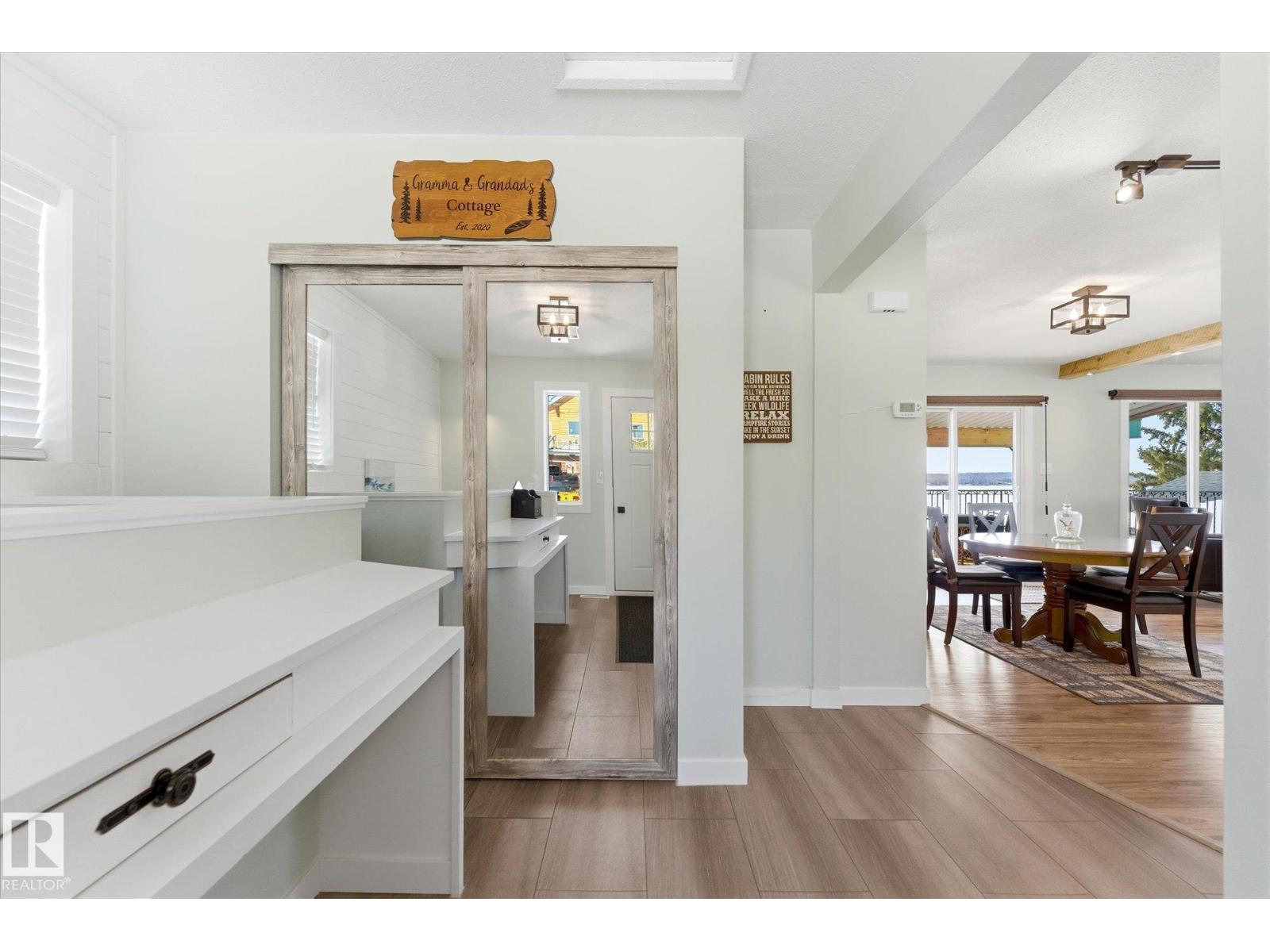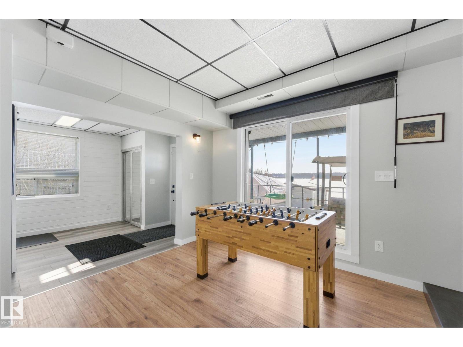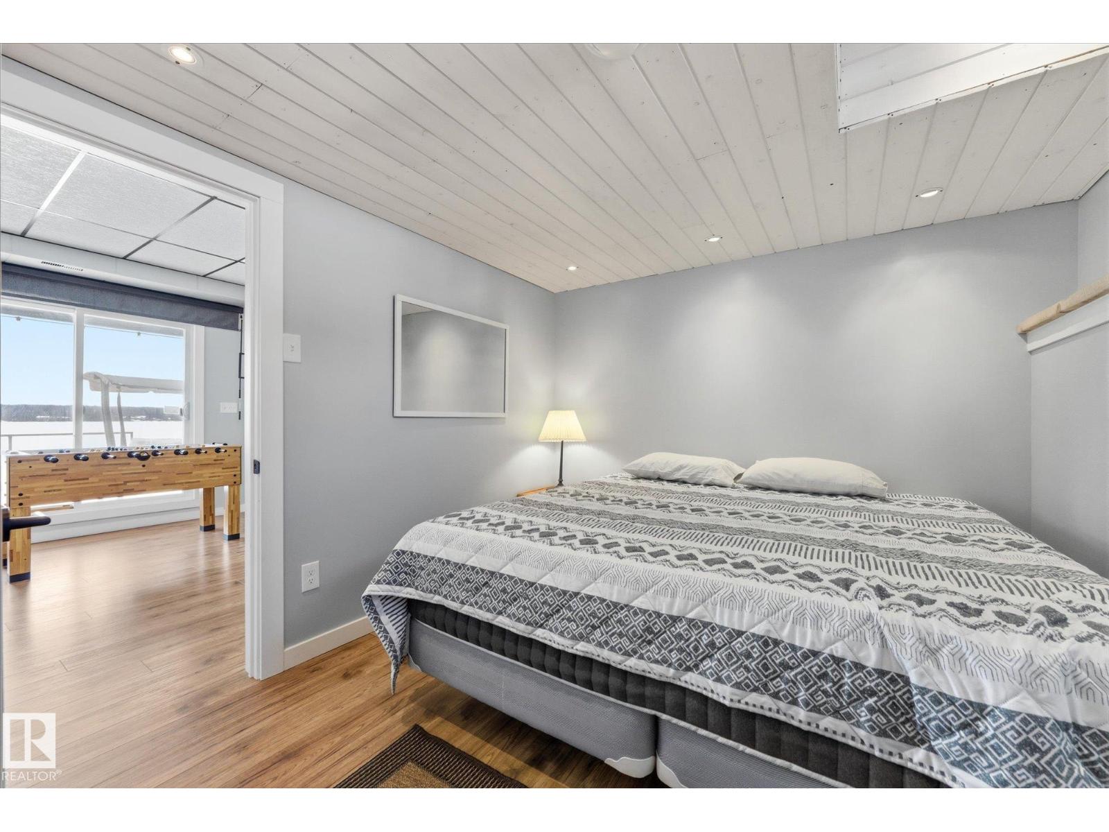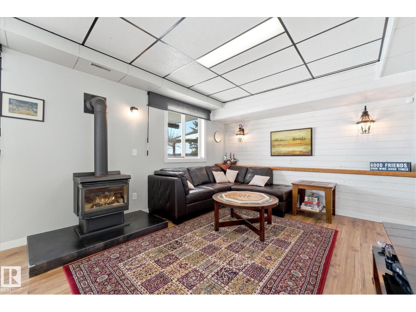 The lake place everyone wants to come back to. Full lakefront walkout bungalow on Isle Lake, set on a quiet no-through road in the Summer Village of South View. Major updates in 2020, the home offers two bright, lake-facing gathering areas with large windows, giving extended family & guests both connection & separation. With three bedrooms plus a separate four-season flex room (approx. 110–120 sq. ft. with its own exterior access), there’s room for family & guests. Covered outdoor spaces on both levels—a spacious upper deck & fully covered lower patio—extend your time outside in changing weather, while the walkout basement provides direct lake access. The fenced yard adds peace of mind, & the detached drive-through garage functions as a boathouse with overhead doors at both ends. An improved shoreline enhances usability & long-term enjoyment. Located in a well-run community with a park, playground, & boat launch, where lake life stretches from summer days on the water to winter skating & sunset evenings. (id:53676)