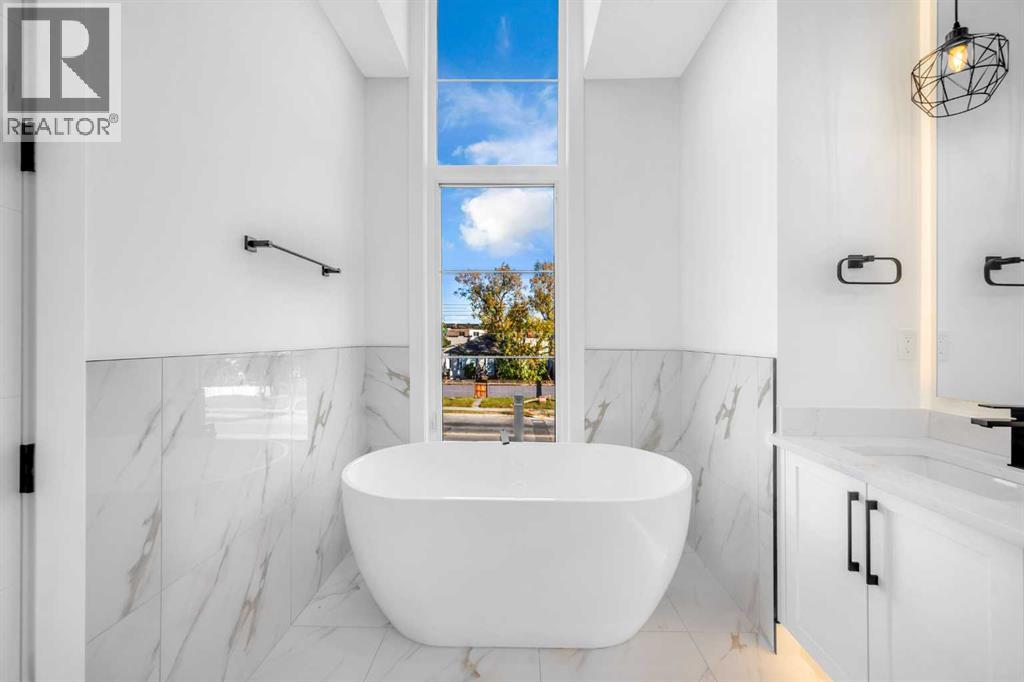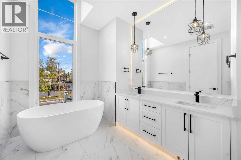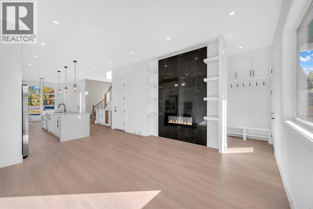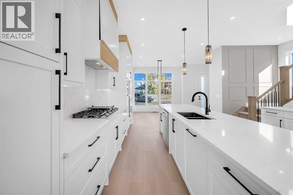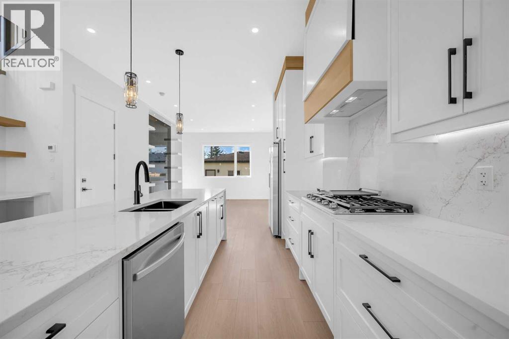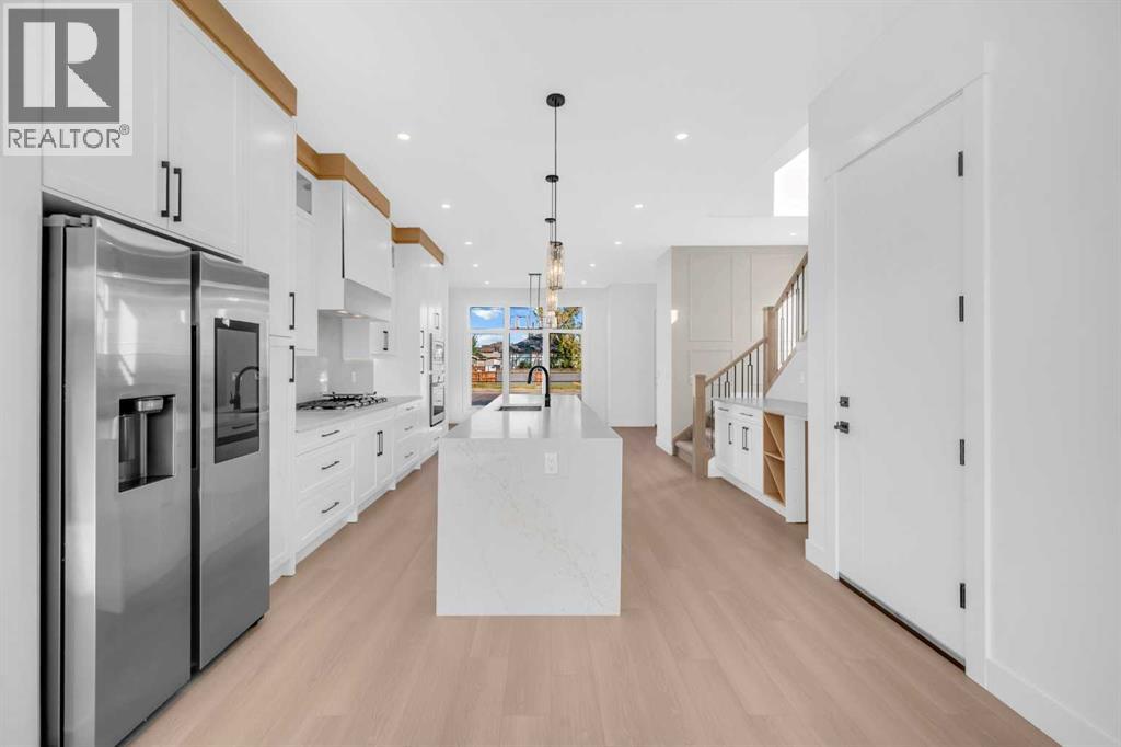 *VISIT MULTIMEDIA LINK FOR FULL DETAILS & FLOORPLANS!* IMMEDIATE POSSESSION AVAILABLE | 5 BEDROOOMS | 3.5 BATHROOMS| 10 FT MAIN FLOOR CEILING | 2 BED LEGAL SUITE | DOUBLE DETACH GARAGE. Welcome to 7617 Ogden Road, located in the historic community of Ogden this home enjoys easy access to Glenmore and Deerfoot Trails, excellent schools, Lynnwood Park, and nearby pathways along the Bow River. Ogden is perfect for nature lovers and golfers, and it is near the Inglewood Bird Sanctuary and Golf Course. Recently developed Quarry Park is only a 5-minute drive South with endless shopping and its own YMCA. The open-concept main floor with 10 ft ceiling features a chef’s inspired kitchen with ceiling-height custom cabinetry, a built in coffee station with extra storage & decorative shelves, a modern quartz backsplash, designer lighting and massive island with ample bar seating with waterfall edges. The spacious living room centres on a stunning electric fireplace and feature wall with a full-height tile and custom built-ins for added elegance. Finishing off this level, the large dining room offers a custom feature wall and 3 oversized windows, allowing lots of natural light into the home. Upstairs, the elegant primary suite features a soaring 14 ft vaulted ceiling, large windows, & a walk-in closet with ample storage. The spa-inspired ensuite is elegantly finished with tile floors, quartz countertops, dual undermount sinks, a stand-alone tub, and a stunning glass shower. Two additional bedrooms with built-in closets share a modern 4-piece bath, and a convenient laundry room with a quartz folding counter and additional storage space completes the upper floor. The 2 bedroom Legal basement suite has its own separate entrance, 9ft ceilings and separate laundry. The contemporary kitchen offers custom cabinetry, quartz countertops, and an island, while the open-concept living area makes this a desirable and functional space. Complete with separate laundry, a 4-piece bathroom, and t wo bedrooms. Enjoy your double car garage with extra space for storage and parking. Dual furnaces ensure comfort for both the main home and the Legal suite. Quick commutes to downtown and nearby amenities make this home ideal for those on the go. Situated in a highly accessible location, close to shopping, transit, and major highways, this property is perfect for attracting renters. Don’t miss your chance to make this incredible property your next home—contact your favorite Realtor today for a private showing! (id:53676)