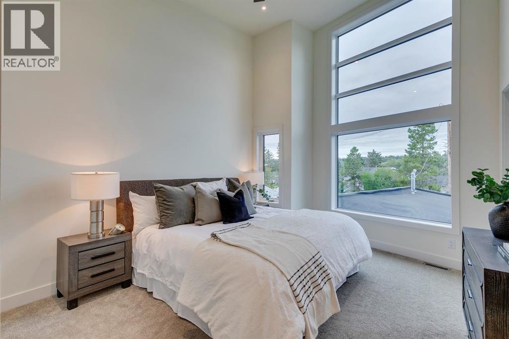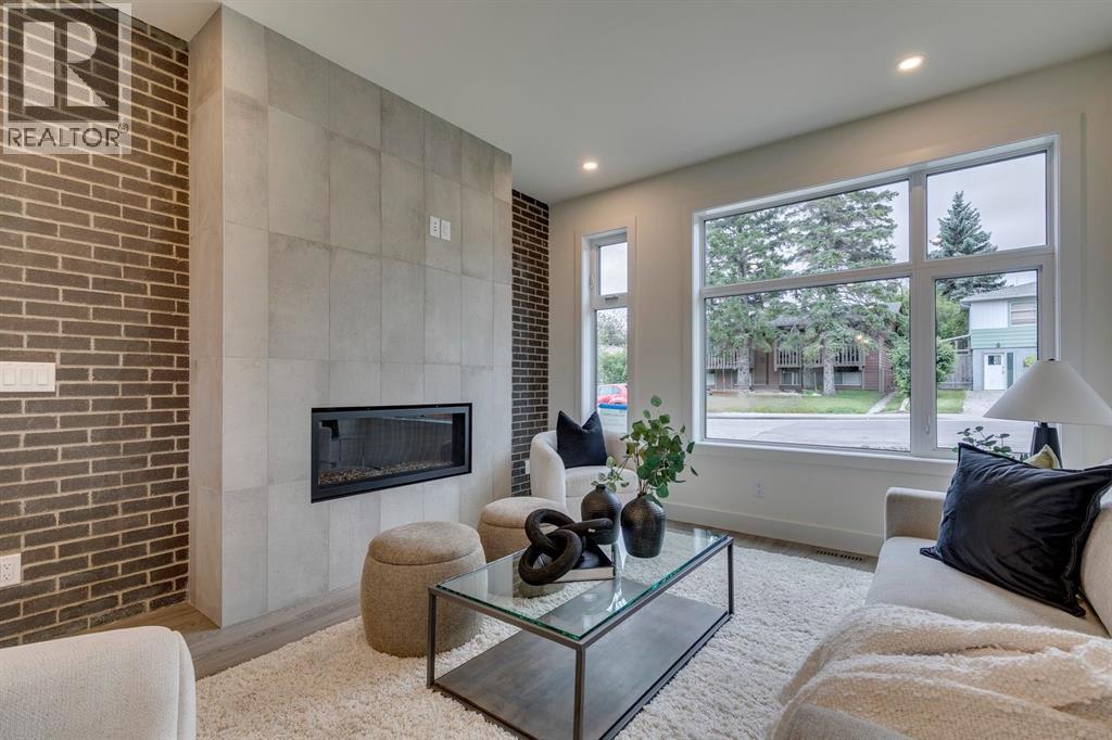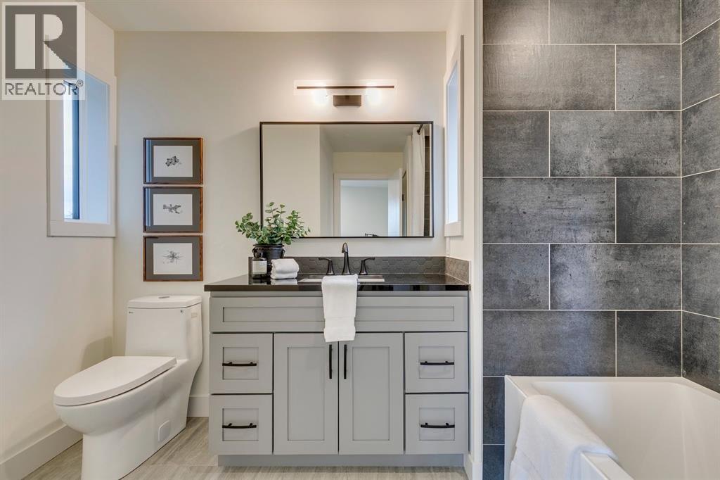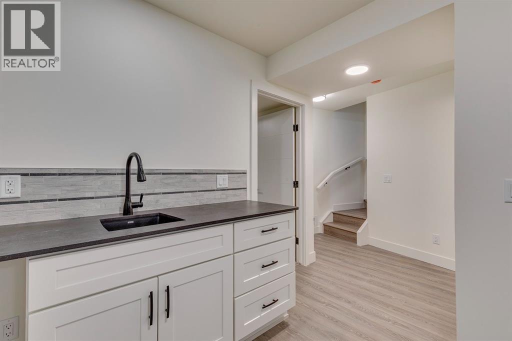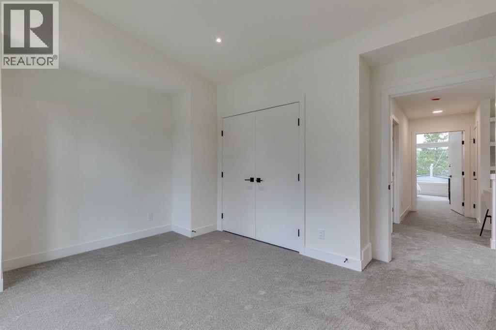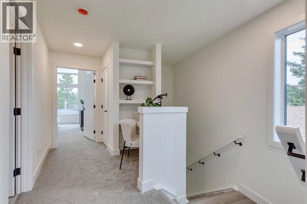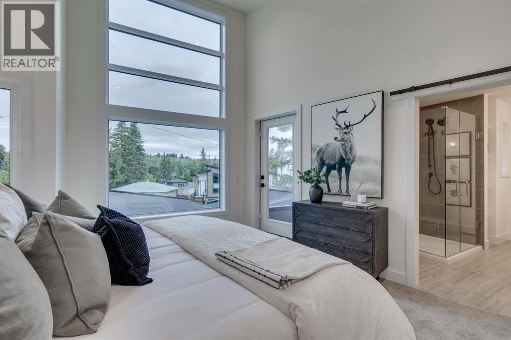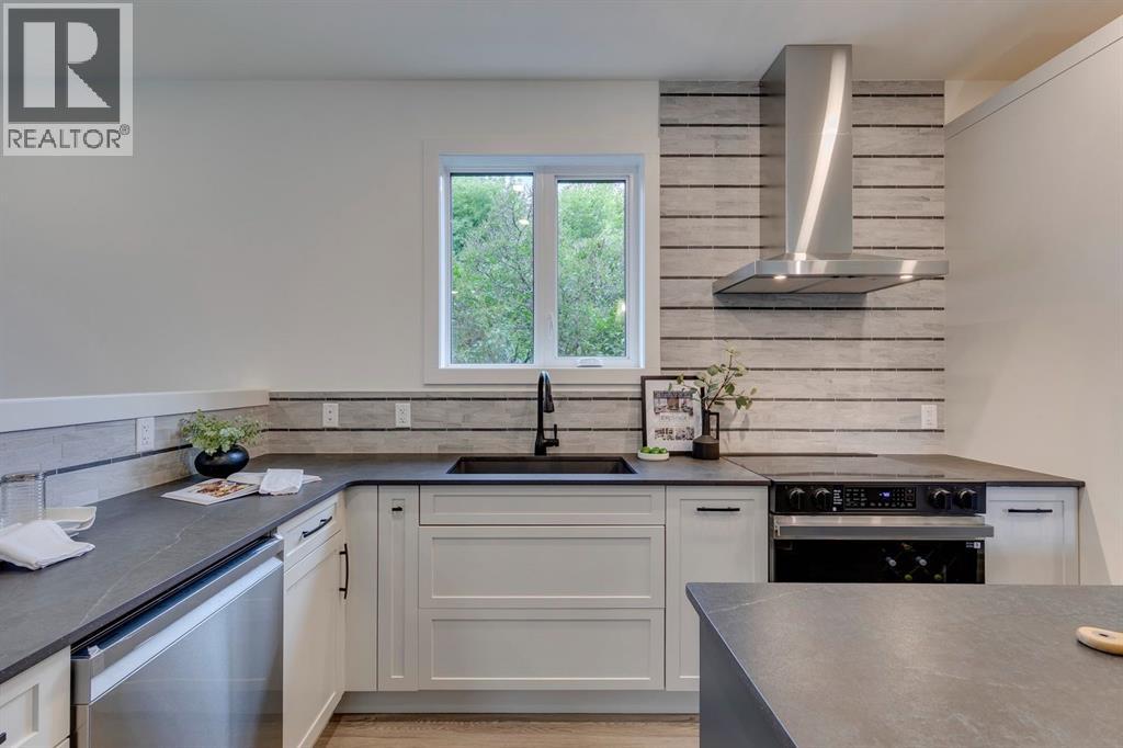 This stunning newly built detached home by Timberland Homes showcases exceptional craftsmanship and modern design throughout. The main floor features a striking brick feature wall and a spacious living room with a linear gas fireplace and sleek tile surround. The chef-inspired kitchen offers new stainless steel appliances, quartz countertops, a large island with an eat-up counter, and a stylish, functional pull-out pantry. Adjacent to the kitchen is a bright dining area, perfect for everyday meals or entertaining guests. A rare double attached garage leads into a practical mudroom, adding convenience to daily life. Upstairs, you’ll find two generous bedrooms, a four-piece bathroom, and a cozy home office nook. The primary bedroom is a private retreat with vaulted ceilings, a luxurious four-piece ensuite, and access to a serene private balcony—ideal for morning coffee or quiet evenings. The upper floor also includes a conveniently located laundry area. The fully finished lower level is filled with natural light from large windows and includes a third bedroom, a three-piece bathroom, a bar area, and a spacious family room—ideal for relaxing or entertaining. Throughout the home, you’ll find high-quality finishes such as solid core doors, LED lighting, and superior attention to detail. This home is only minutes away from the trendy shops and cafes in Bowness, offering the perfect balance of quiet residential living and vibrant urban amenities. (id:53676)
