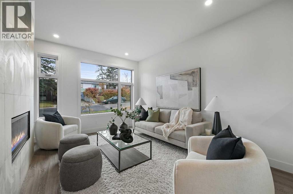 ** Brand new home with warranty ready for immediate possession ** Click on "Videos" for 3D tour ** Welcome to a very well built, contemporary 2 Storey infill, nestled on a whisper quiet street in a very desirable area of Bowness! Stunning features include: 2+1 bedrooms, 3.5 bathrooms, almost 2150 square feet of developed living space with excellent layout making the home feel larger, chef's kitchen with stone counters & high end appliance package, 9 foot ceilings on main floor, upper office/loft area, cozy gas fireplace, amazing master retreat with towering 13 foot ceilings/4-piece "spa like" master bath/good sized private balcony, custom built-ins in EVERY closet & cupboard, solid core doors, roughed-in A/C, insulated/drywalled double ATTACHED garage, wet bar, upper laundry and much more! Location is amazing - super quiet street with front and rear street access (very rare), 1 block to the Bow River/Bow River Pathway System, only a 10 minute drive to downtown & easy access to all the great amenities in the area! This brand new masterpiece was completed August 2025, is ready for new owners AND comes with bumper to bumper warranty (1 year, 2 year, 5 year, 10 year). Even the landscaping is complete - sidewalks/rear deck/fences & gates - just move in and enjoy! Amazing quality - amazing location! (id:53676)