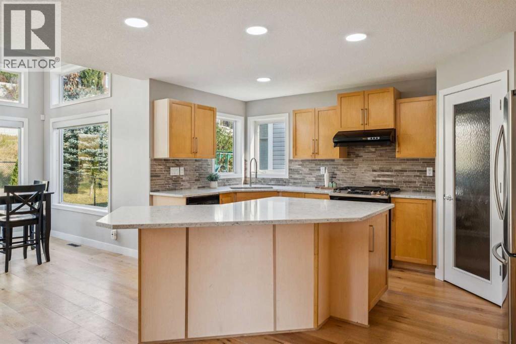 Welcome to a home that perfectly complements the way you live, offering room where you need it, comfort where you want it, and a design that simply feels right. Set on a quiet, family-friendly street and backing onto a tranquil green belt, this beautifully refreshed detached home boasts more than 2,900 sq ft of flexible living space. Step inside to soaring ceilings, fresh paint, wide plank engineered hardwood, and large windows that flood the interior with natural light. The main floor showcases a thoughtful open-concept plan that unites the kitchen, dining, and living spaces; ideal for everyday routines and memorable gatherings. At the center is an updated, modern kitchen featuring quartz countertops, gas range, sleek cabinetry, and generous prep space for everything from quick weekday meals to festive celebrations. The bright dining area offers clear views of the backyard, while the living room with its inviting gas fireplace provides the perfect setting for cozy nights in. Just off the kitchen, an open den works well as a home office, creative studio, or study nook. Completing the main floor are a powder room and laundry area with direct access to the double attached garage. Upstairs, you’ll find four spacious bedrooms together on one level. A rare and highly desirable layout. Brand new carpet extends throughout the entire upper level, creating a fresh, inviting feel from room to room. The private primary suite, located at the front of the home, is a true sanctuary with lofty ceilings, abundant natural light, and a calm, retreat-like ambiance. It features a generous walk-in closet and a spa-inspired ensuite with dual sinks, a deep soaker tub, and a tiled walk-in shower. The three additional bedrooms are impressively sized, with two offering walk-in closets of their own. This level is especially well-suited to families, ensuring everyone enjoys their own space while remaining connected. The fully finished basement extends the living area even further, offering a large rec room that can easily adapt to your lifestyle; whether as a fitness zone, media lounge, or playroom. A spacious fifth bedroom and full bathroom make it an ideal setup for teenagers, extended stays, or multi-generational living. Outdoors, the backyard opens onto a serene green belt, creating a natural backdrop. Sip your morning coffee on the deck, enjoy evening strolls along nearby pathways, or watch the kids play in a yard that feels like an extension of the home. Nestled in one of Calgary’s most desirable neighborhoods, Springbank Hill offers the best of both worlds: peaceful surroundings with convenient access to top-rated schools, parks, shopping, transit, and quick escapes to the mountains. With its rare four-bedroom upper level, stylish updates, finished basement, and unbeatable location, this property truly has it all. Come see why this is the home you’ve been waiting for. (id:53676)