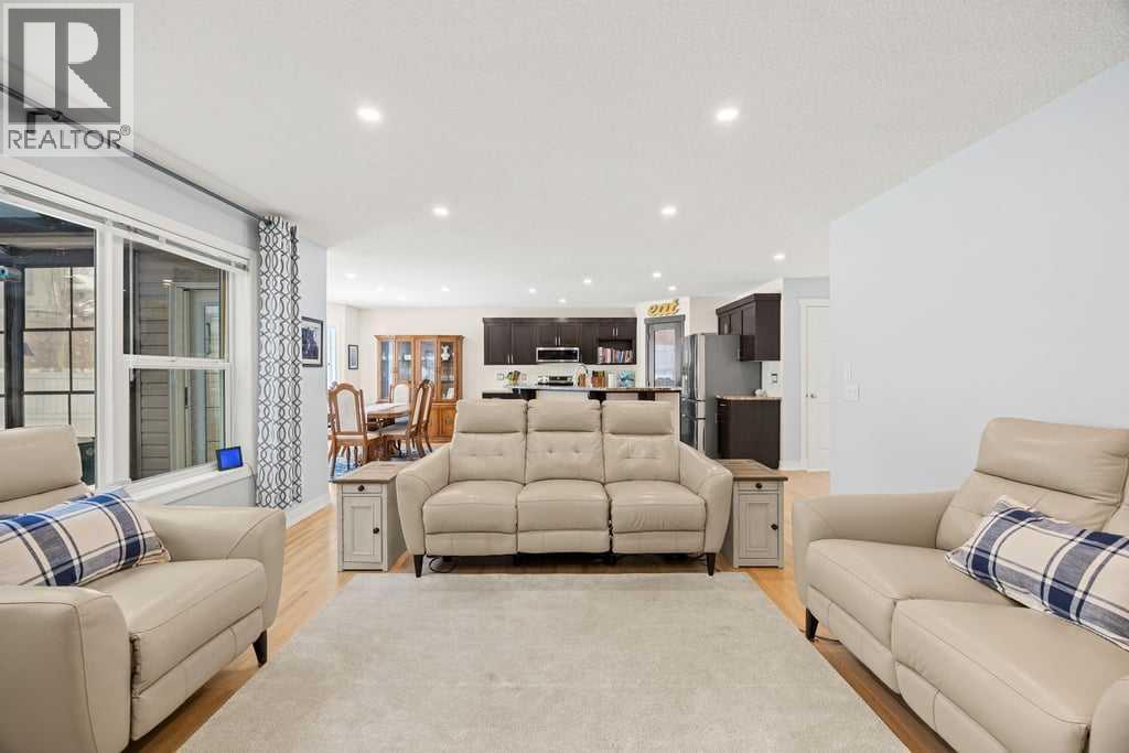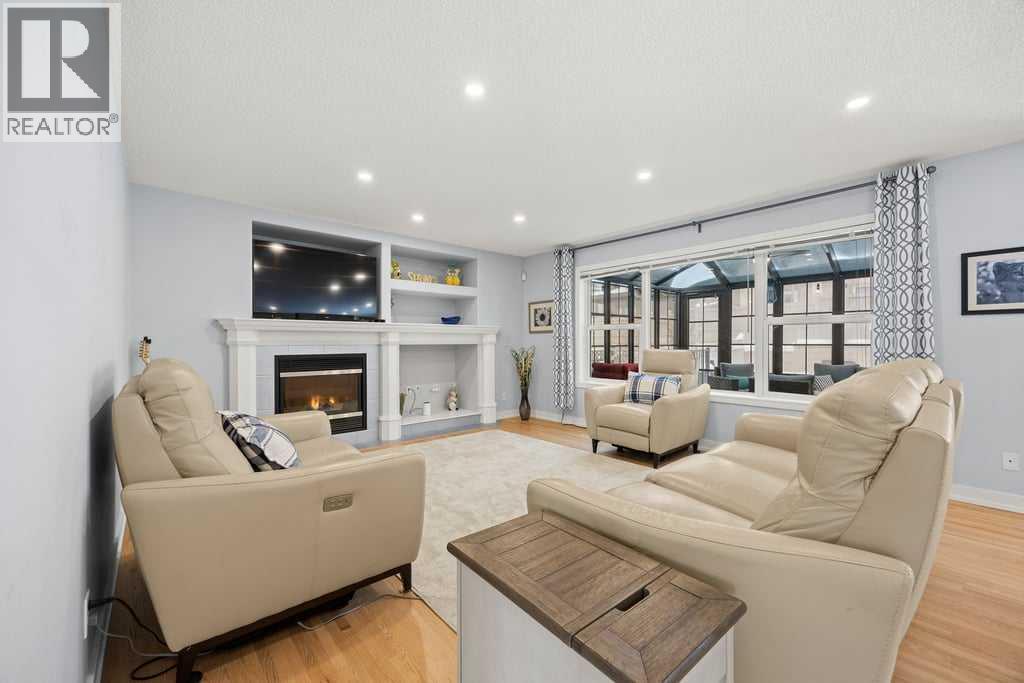 OPEN HOUSE - Saturday 12-2pm & Sunday 2-4pm** Exceptional pride of ownership shines throughout this beautifully updated 4-bedroom home in desirable community of Crestmont, offering over 2,798 sq ft of total living space on a large south-facing lot with a spectacular three-season sunroom. From the moment you step inside, you’ll appreciate the open-concept main floor featuring refinished hardwood floors, a bright great room with a cozy gas fireplace and custom built-ins, and a stunning kitchen complete with granite countertops, newer stainless steel appliances, a large island, and walk-in pantry. The dining area opens to a truly show-stopping, heated three-season sunroom—an incredible extension of the home, flooded with natural light and perfect for morning coffee, relaxing afternoons, or entertaining in every season. Upstairs, freshly painted throughout, you’ll find a spacious primary suite with a jetted tub, separate shower, and walk-in closet, along with two additional bedrooms and a full bathroom. The fully developed basement adds even more functional living space with a fourth bedroom, full bath, and a comfortable family room featuring a custom-built bar cabinet. Recent updates include newer appliances (all within the past 2.5 years), refinished hardwood, retiled bathrooms, new eavestroughs (2024), and exterior Gemstone lighting (2023). Additional highlights include central A/C, a heated attached garage, rubberized driveway and walkways, and a durable metal garden shed. The fully fenced south-facing backyard offers privacy with mature trees and a convenient dog run—ideal for families and pet lovers alike. Perfectly located with quick access to both the mountains and downtown, this move-in-ready home is a standout. (id:53676)