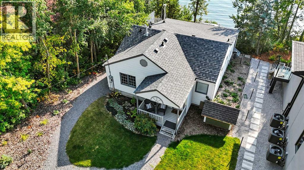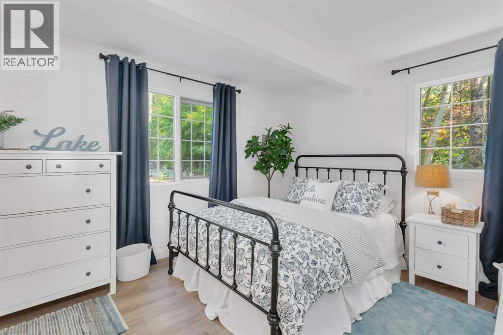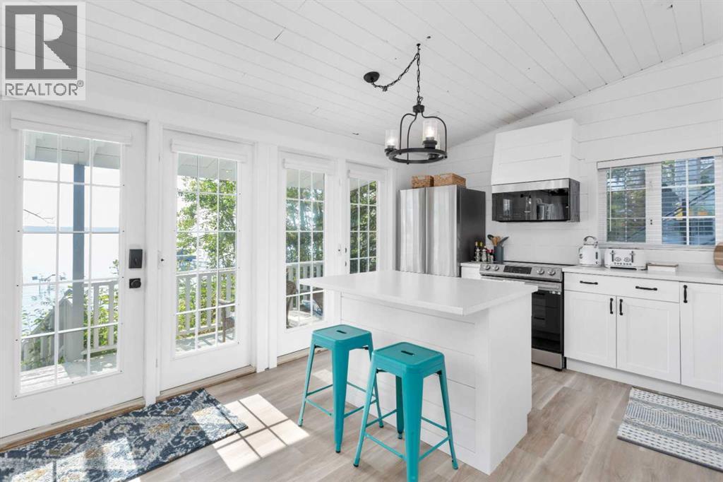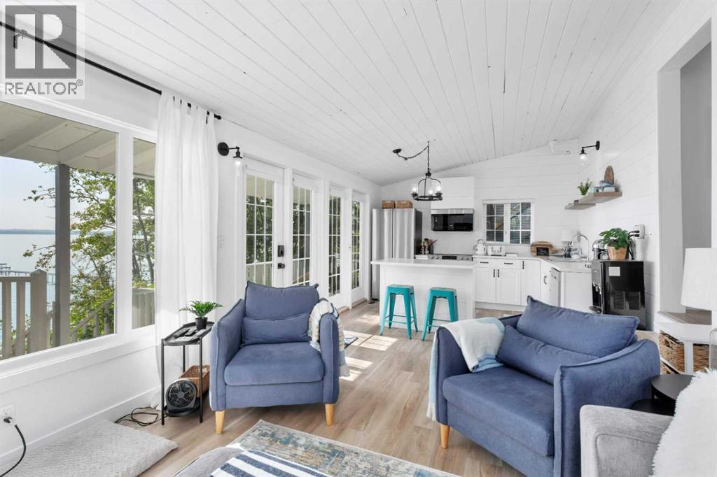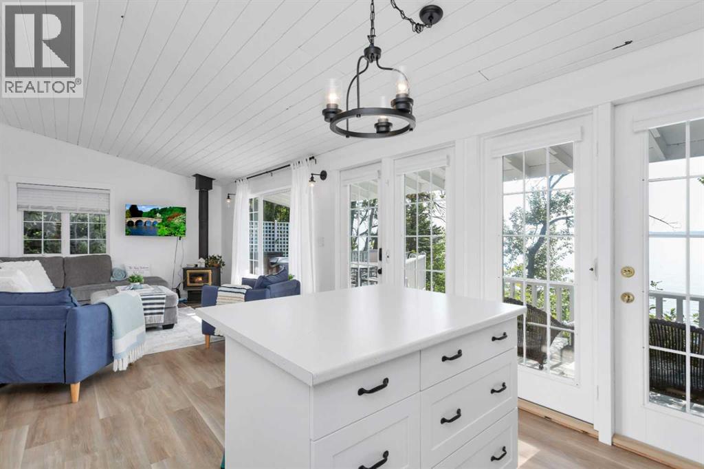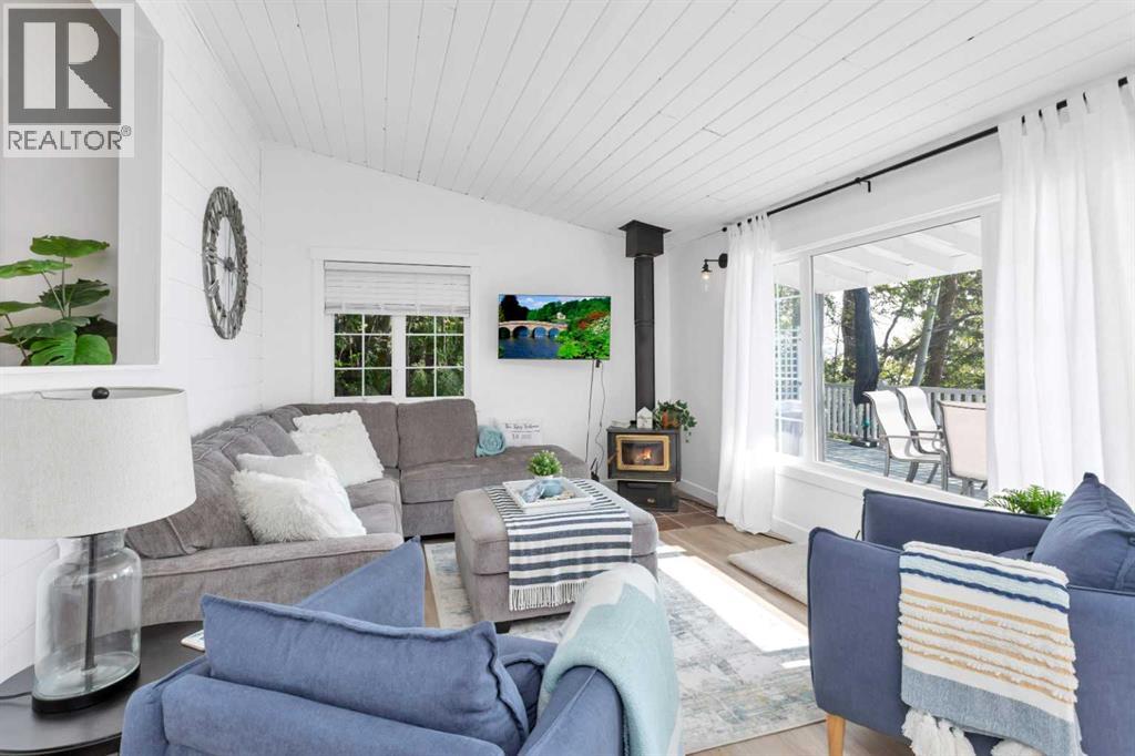 Welcome to your dream lakefront getaway on the sunny side of Sylvan Lake. Set on a level 50 x 203 ft lot with 50 feet of pristine shoreline and southwest-facing views, this fully renovated cabin offers rare privacy, full riparian rights, and some of the best sunsets on the lake. This is not just updated. It has been completely renovated so you can arrive, unpack, and start enjoying lake life immediately. No projects. No to-do list. Just turn the key and relax. The 1,044 sqft cabin features 3 bedrooms and 1 full bath, thoughtfully redesigned with stylish, cohesive finishes throughout. Warm wood panel ceilings and a corner wood-burning fireplace preserve the classic cabin charm, while every major component has been refreshed for modern comfort. The home is fully winterized for year-round use and even includes EV charging capability, adding modern convenience to this timeless setting. Outside, the transformation continues with extensive landscaping, an RV parking pad, and a spacious deck designed for morning coffee or evening wine overlooking the water. The lot is nearly level, usable, and ideal for lakeside gatherings, swimming, boating, or simply enjoying the view. If you have been searching for a lake property where the work is already done, this is it. A fully renovated Sylvan Lake cabin where you can step straight into summer and stay all year long. (id:53676)