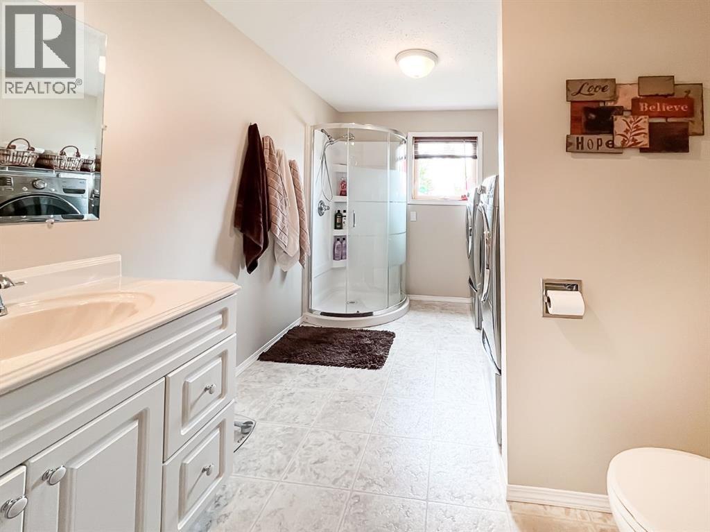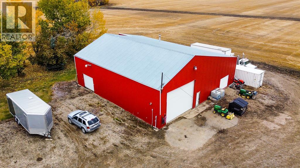 **BACK ON THE MARKET** Welcome to your dream retreat on this picturesque 4.39-acre property! This charming 3-bedroom, 2-bathroom home perfectly balances comfort and functionality. The spacious kitchen is a true centerpiece, with an eat-at island, corner pantry, ample cupboard space, and generous countertops for meal prepping. It seamlessly flows into a bright dining area and cozy living room, featuring a homework station nook. The main floor includes a versatile bonus room and a 3-piece bathroom with laundry for convenience. Upstairs, unwind in the expansive primary bedroom with a walk-in closet and direct access to a 3-piece bathroom with a large soaker tub. Two additional large bedrooms and a dedicated office space provide plenty of room for family or work-from-home needs. The property also boasts a remarkable 60'x40' shop, equipped with concrete floors, radiant heat, 220V power, and a spacious 14' high, 18' wide overhead door for easy access. A second 8'x9' door and over 580 square feet of mezzanine space add even more versatility for storage or workspace. Attached to the shop is a 72'x20' cold storage lean-to with a 9'x6' overhead door, perfect for equipment or additional storage. Tucked away amidst mature trees, this property provides exceptional privacy and a peaceful, serene atmosphere. Enjoy outdoor living with a fenced-in dog run, a cozy fire pit for evening relaxation, and a garden space ideal for those with a green thumb. A convenient shed is available for tools or extra storage. With its combination of space, comfort, and natural beauty, this property provides the perfect setting for your next chapter. Schedule your showing today! (id:53676)