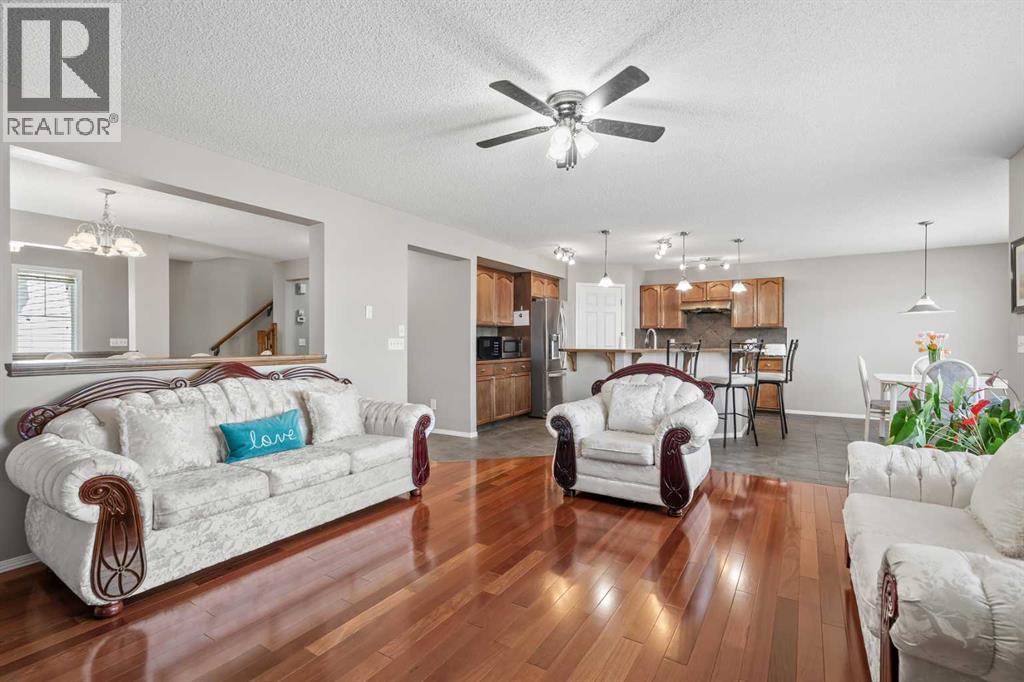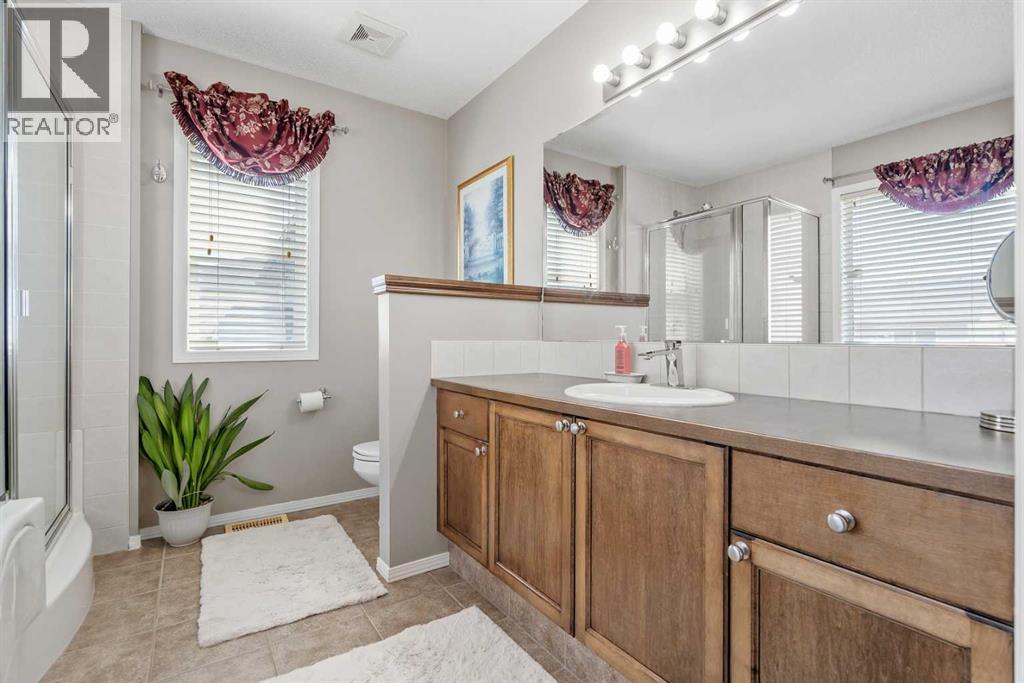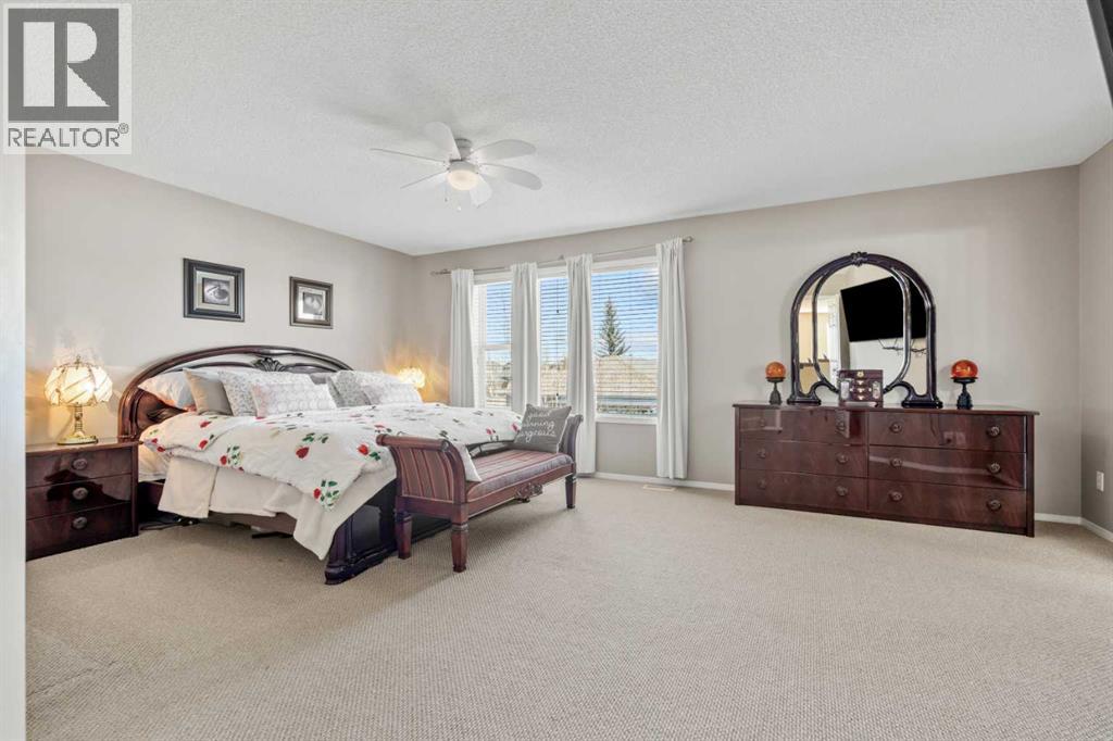Location, quality, function, style and space! All on a quiet street across from a park in highly desirable Chaparral! Welcome to 8 Chapalina Rise, a one owner custom Avi built home with thought and quality throughout. This home boasts 2350 square feet of above grade living featuring ample, well balanced rooms, and a unbeatable floor plan. Enter through the bright foyer to the open plan commencing with the gracious dining room, flowing to the large living room featuring impeccable stunning Brazilian hardwood cherry flooring in both. The kitchen is open and functional, with large working island with eating bar, ample counter space, gas range and flow through pantry and laundry for ultimate convenience. Upstairs opens to a huge sun drenched bonus room overlooking a park, with plenty of room for media and multi use. The vast master suite boasts large walk in closet and well appointed 4 piece ensuite. Two other ample bedroom complete the flowing second floor. The large backyard includes a spacious sunny deck and ample room for garden beds and play equipment. Enjoy the comfort and ease of living in this remarkable home, featuring central air conditioning, central vacuum system, high efficiency furnace, main floor laundry, bbq line to the deck, no smoking or animals. This home has been lovingly maintained and updated by the original owner, and pride of ownership shines from every corner. 8 Chapalina Rise, fabulous home, fabulous location! (id:53676)