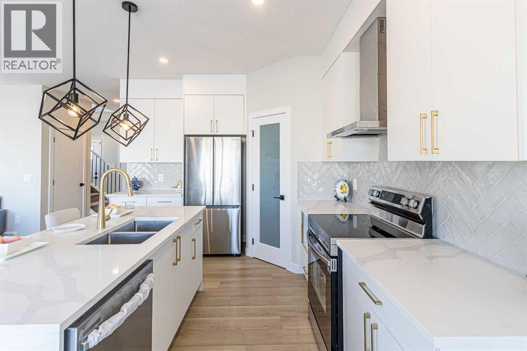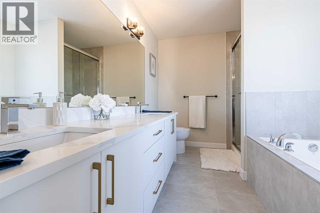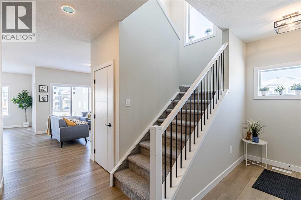 ***QUICK POSSESSION -SHOW HOME*** FRONT DOUBLE GARAGE , 3 Bedrooms + Bonus Room + Den | 2.5 Baths | The most popular Moana model, on a 33 feet wide lot, situated in the Waterford Community, minutes from the lake. Experience the epitome of open concept living, featuring upgrades such as 9 ft Ceilings on main floor and basement, metal spindles on railing, 3cm quartz countertops, LVP flooring, under mount sinks convenient upstairs laundry and so much more! Great room includes an electric fireplace which adds style and warmth perfect for chilly nights. The kitchen is completed with a huge island, perfect for gathering families and friends, soft close cabinets and drawers throughout, spacious pantry plus extra counter space, new appliance package including chimney exhaust fan, smooth top electric range, built-in microwave and UPGRADED refrigerator and dishwasher. The dining room can host a big family. Upstairs, indulge in the comfort of your perfectly sized central bonus room, ideal for streaming your favourite movies. Retreat to the spacious master suite with an ensuite and walk-in closet for a relaxing escape. The conveniently located laundry room and two secondary bedrooms, both with walk-in-closets, complete the second level. The basement is unfinished but comes with 9 feet ceilings, separate side entrance and a mechanical room moved to a corner. Proximity to the CALGARY, schools, diverse retail and culinary delights are just some of the highlights. Call to book your showing now !!!!!!! (id:53676)