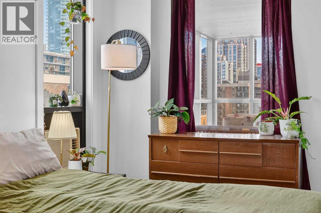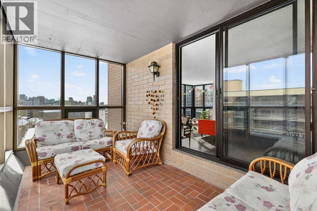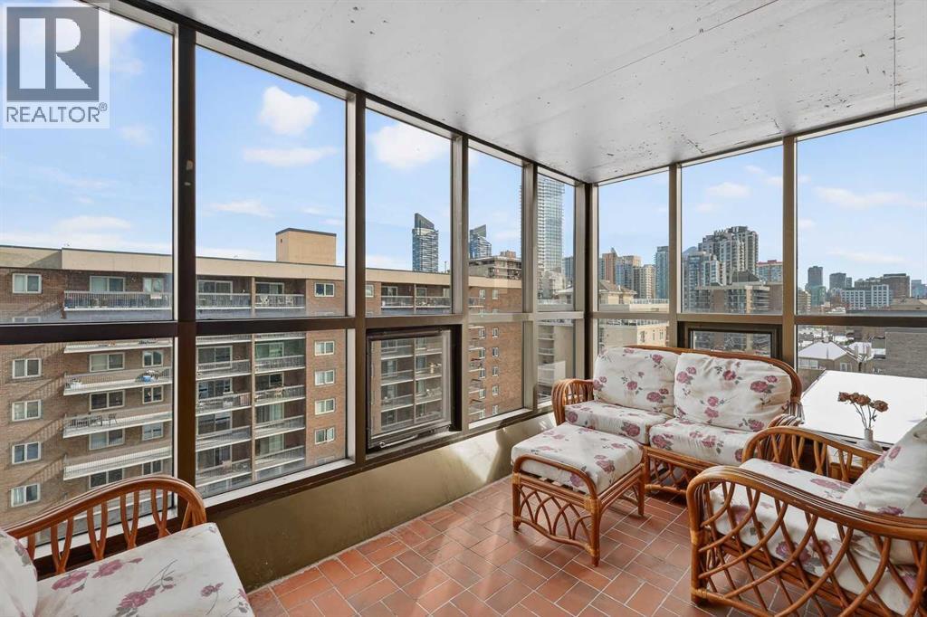 Offering an impressive range of amenities and set just minutes from downtown Calgary, this bright corner-unit condo showcases floor-to-ceiling windows that capture abundant morning light from its East exposure. The corner layout provides views in three directions, giving the home an airy, expansive feel. Inside, you’ll find a generous 931 sq ft open-concept floorplan with 9 ft ceilings, air conditioning, stylish oak cabinetry in both the kitchen and bathroom, and durable laminate and tile flooring throughout. Both bedrooms are comfortably sized with ample closet space, and the 4-piece bathroom includes a convenient cheater door connecting directly to the primary bedroom. Enjoy the luxury of a fully enclosed balcony/sunroom that can be used year-round—an ideal spot to unwind or let your plants flourish. Additional perks include in-suite laundry, a underground parking stall with a winter plug, and a separate storage locker. The Huntsman is a professionally managed, pet-friendly building pending board approval offering an impressive list of amenities: a fitness center, sauna, tennis courts, pickleball court, and community garden. Recent upgrades include modernized elevators and a refreshed lobby. Its prime location puts you within walking distance of downtown, close to the river pathways for jogging, and just a few blocks from the shops and restaurants along 17th Ave. With easy access to recreation, conveniences, and urban attractions, this unit delivers the comfortable, connected lifestyle you’re looking for. (id:53676)
