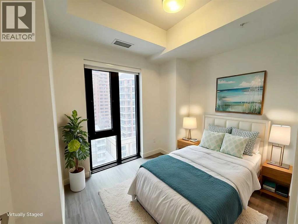 Stylish Downtown Condo with Expansive Balcony & Smart Layout Welcome to this beautifully designed 2-bedroom + 1 office, 2-bathroom condo located in the heart of downtown Calgary. Offering thoughtfully utilized space, this unit is perfect for professionals, couples, or those seeking a flexible work-from-home setup.Step into a bright and airy open-concept layout featuring a spacious kitchen with ample counter space, gas stove, seamlessly flowing into the dining area and cozy living room— ideal for entertaining or relaxing after a busy day. Enjoy direct access to a large private balcony, perfect for morning coffee or evening sunsets.The primary bedroom is a peaceful retreat, complete with a large closet and a private 3-piece ensuite. Another bedroom and office offer versatility as guest rooms, creative studios, or dedicated remote workspaces. A 4-piece main bath, in-unit laundry, generous storage, and functional foyer round out this efficient and modern unit.Titled underground parking stall and underground locker also come with this unit. Building amenities include gym, meeting room, bike storage, visitor parking, and daytime concierge.Located in a vibrant riverside community with easy access to pathways, restaurants, shopping, and transit. This condo combines downtown convenience with the tranquility of a well-planned home. (id:53676)