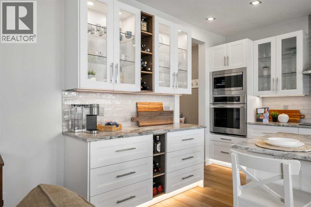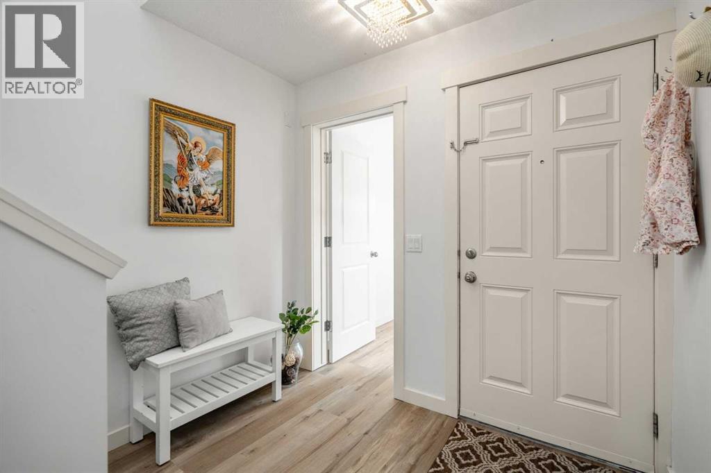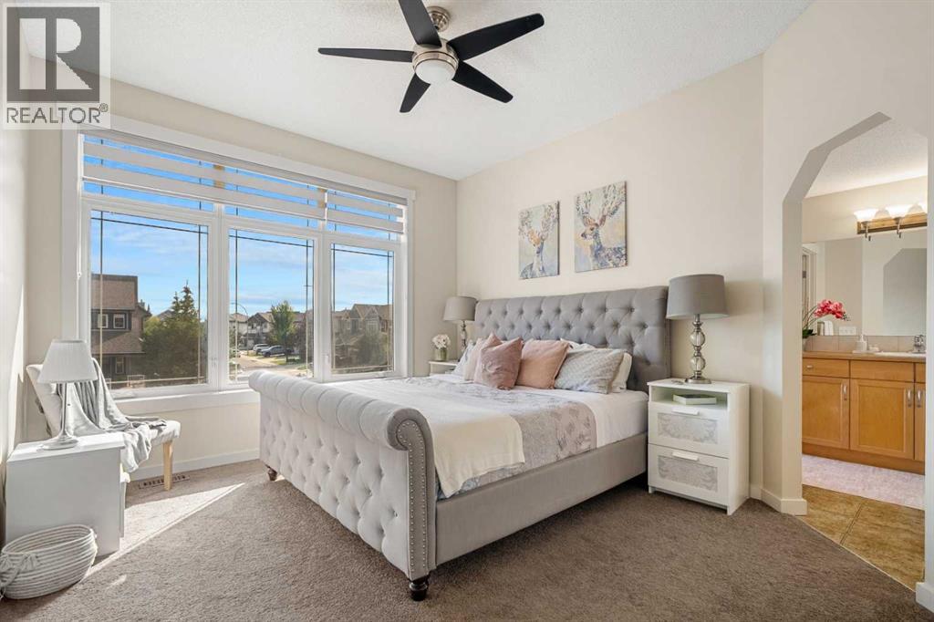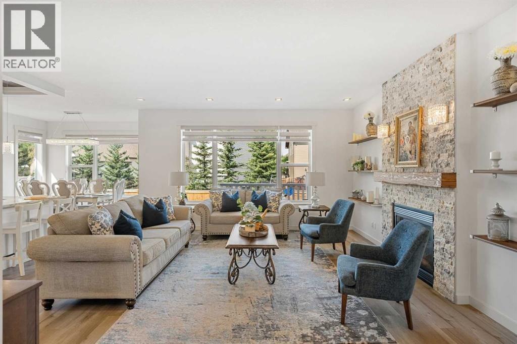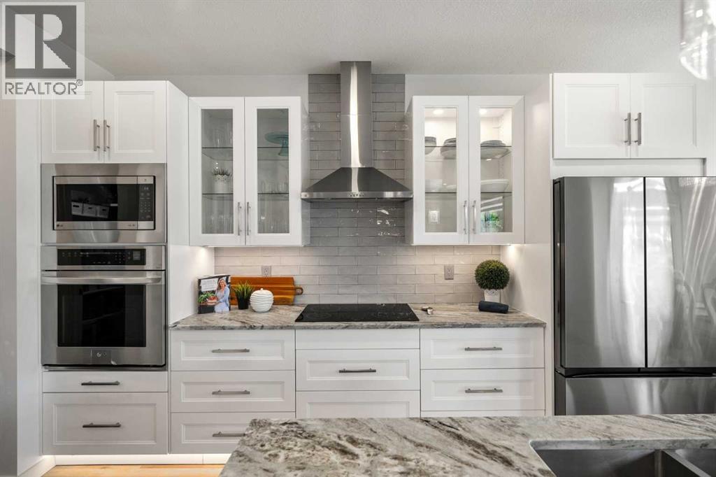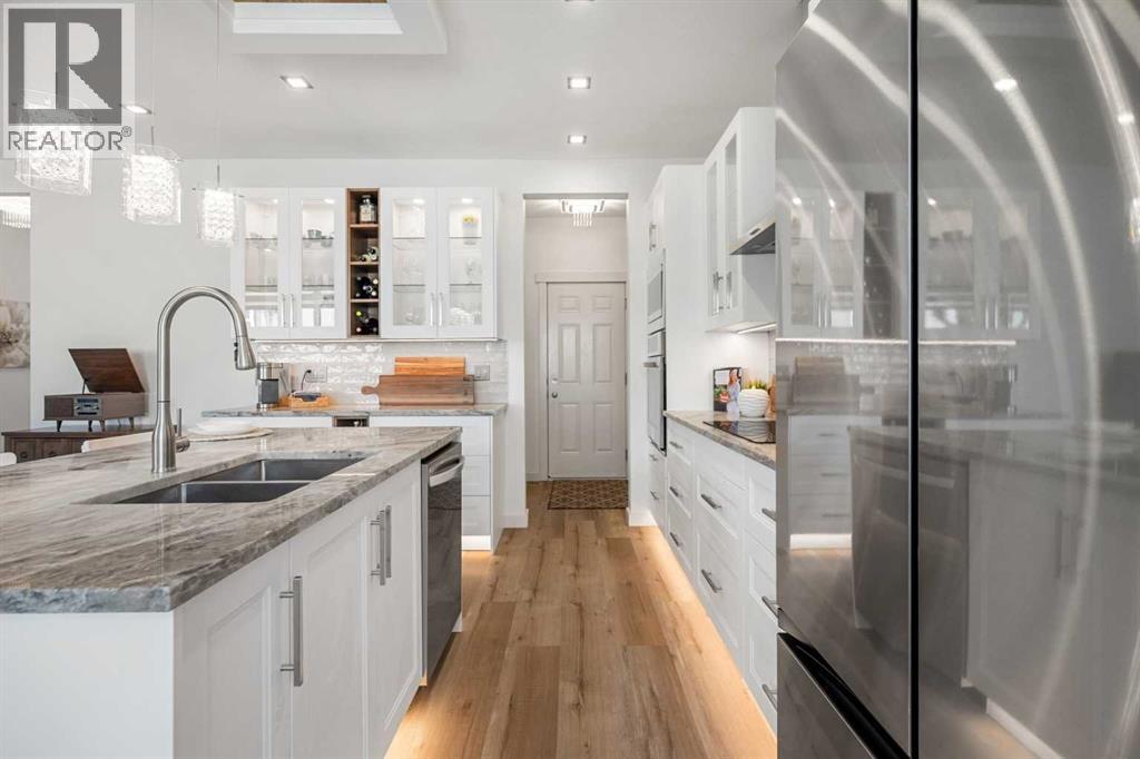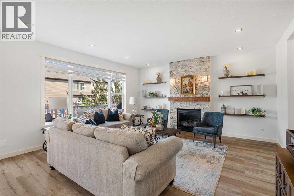 Nestled on one of the most sought-after streets in award-winning Cooper’s Crossing, this stunning home is designed to impress. Step inside and be greeted by a gorgeous, open foyer with soaring ceilings and a grand staircase as well as a versatile front flex room – perfect as a home office, playroom, or even a guest space that easily fits a queen-sized bed. Before you enter the main living area you find a fabulous and well situated guest bath perfectly tucked away. The living space dramatically opens with 9FT ceilings, wide vinyl plank flooring adjustable LED pot lights and chandeilers, and oversized windows with custom blinds, all allowing for plenty of light.The heart of the home is the fully renovated chef’s kitchen, featuring a built-in oven, microwave, and stovetop with a chimney hood fan, and elegant white cabinetry with glass panels and custom lighting – even inside the cabinets and along the toe-kicks for a dramatic evening glow. A fantastic walk-in pantry and functional mudroom with a deep freezer off the heated garage keeps everything organized and out of sight. The dining area comfortably seats eight, framed by picture windows with beautiful views of the backyard, while the living room invites you to gather around the striking floor-to-ceiling stone fireplace. Built-in shelving with power outlets flanks the fireplace, ready for your favorite décor or media setup.Upstairs has an air of sophistication with a lovely family room that overlooks the foyer – the perfect place for cozy movie nights. Architectural detail and arched doorways add a level of sophistication. The king-sized primary suite is a true retreat with its large windows, spa-like ensuite with maple cabinets, a soaker tub, walk-in glass shower, private water closet, and a sun-filled walk-in closet with its own window. Two additional well-sized bedrooms share a conveniently located main bath, and the laundry room – also with a window – is upstairs where you need it most.The unfinished basement is a blank canvas with plenty of space to create the basement of your dreams. Outside, the deck overlooks a large backyard – ideal for entertaining, gardening, or watching the kids play. The oversized heated garage boasts excellent storage, a new extra-tall garage door for trucks or vans, and there is LED exterior lighting for curb appeal and security.Living in Cooper’s Crossing means you’re part of Airdrie’s most celebrated community – voted Best Neighbourhood year after year – with its abundance of parks, playgrounds, pathways, and nearby schools. Add in the safe, welcoming atmosphere and this home truly has it all. (id:53676)