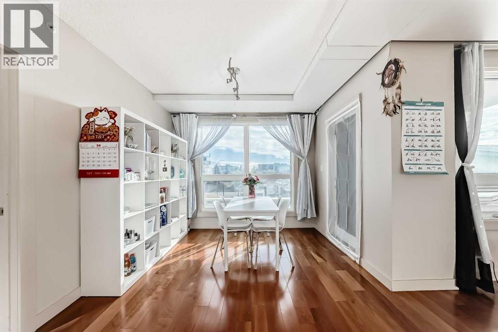 One of the largest floor plans in London at Heritage Station. Spacious end unit with open concept living/dining/kitchen. Floor to ceiling windows bathe this unit in a lot of natural light but is air conditioned so you can enjoy the views without the discomfort. Unit has opposite bedrooms for the ultimate in privacy. The large entrance welcomes you into a gourmet eat up Kitchen with stainless appliances, granite counters and an island to eat at when you don't want to use the dining room. The kitchen is open to the living and dining area which makes it easy to engage with family or friends when making meals and sharing your time. The master bedroom has a four piece ensuite with tub/shower and the opposite bedroom has the other three piece bath with a walk in glass shower. The Balcony is private with a gas hook up for the BBQ and has a partial mountain view. Groceries are through the parking garage at the fourth level and is accessed without ever going outside. Assigned parking with in a heated garage and visitor parking is included. Dominion Tower has full time security and a Concierge in the lobby making this a unique feature for your peace of mind. Heritage LRT is accessed from a walk bridge from the north side of this building for excellent access to downtown or Chinook Center for shopping. The Grocery store, pharmacy and Tim Hortons can be accessed through the 4th level of the parking garage. This condo is priced to sell,. Come and make it your New Home today! (id:53676)