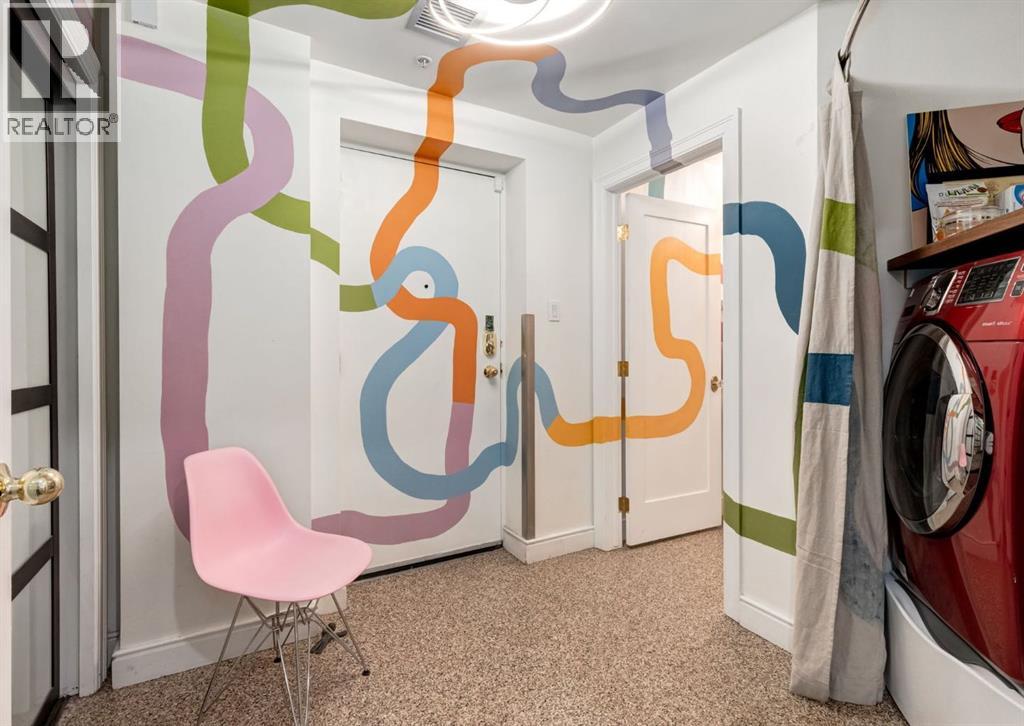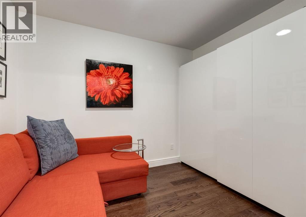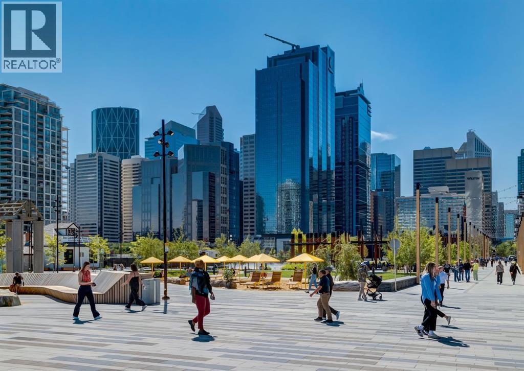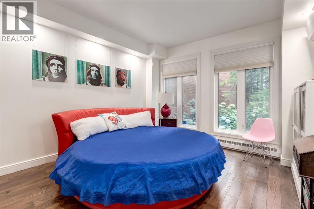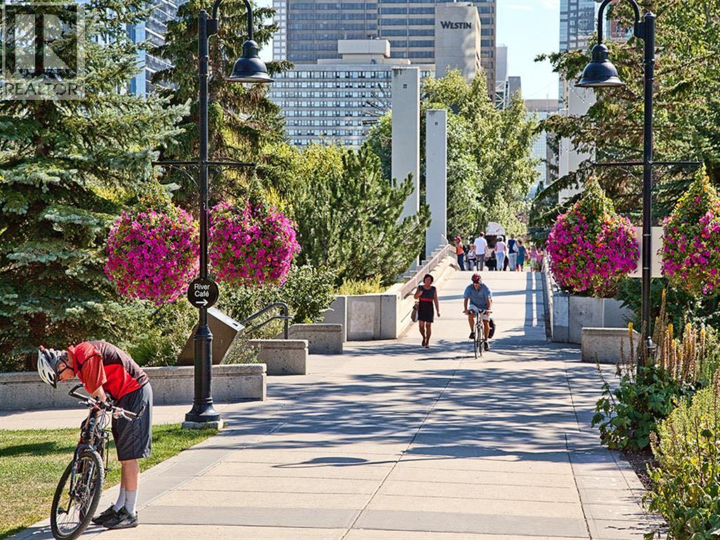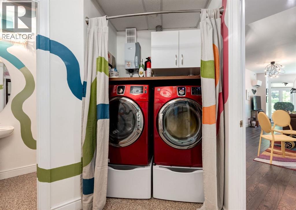 Rare Garden-Level Bungalow in Eau Claire with a private yard, professionally renovated interior, and exceptional accessibility. Offering over 1,400 square feet of refined single-level living, this home combines modern comfort, thoughtful design, and an unbeatable location. Step into a bright and open-concept living space with 9-foot ceilings, engineered hardwood floors, and garden-facing windows fitted with upgraded blinds. The spacious layout includes a 1-bedroom plus a den—perfect for a home office or overnight guests. The fully renovated kitchen is both stylish and functional, featuring quartz countertops, stainless steel appliances, induction cooktop, ample storage, and a generous sized pantry. The primary suite easily fits a king-sized bed with room to spare. The luxurious, handicap-accessible bathroom features a large barrier-free waterproofed shower with a stunning rose quartz bench, dual sinks, and elegant modern finishes. A dedicated mud room with full sized washer and dryer connects directly to the heated underground parkade, offering the convenience of private front and back entrances—ideal for pet owners, gardeners, or anyone seeking easy access. Outdoor living is just as impressive, with a private fenced yard, aggregate patio, gas line for BBQ, and beautiful flowers surrounded by mature trees—your own tranquil oasis in the city. This pet-friendly complex (with board approval) includes valuable amenities like a car wash bay, 27 indoor visitor parking stalls, onsite property manager, and a secure concrete structure for peace of mind. Additional highlights include air conditioning, titled underground parking directly outside of the unit, assigned storage locker, and condo fees that include all utilities (water, power, gas). Whether you're downsizing from a house or seeking a posh, low-maintenance inner-city lifestyle, this exceptional home offers comfort and convenience in one of Calgary’s most desirable communities. Floor plans and a 3D tour are readily available, providing a glimpse into this stylish condo! (id:53676)