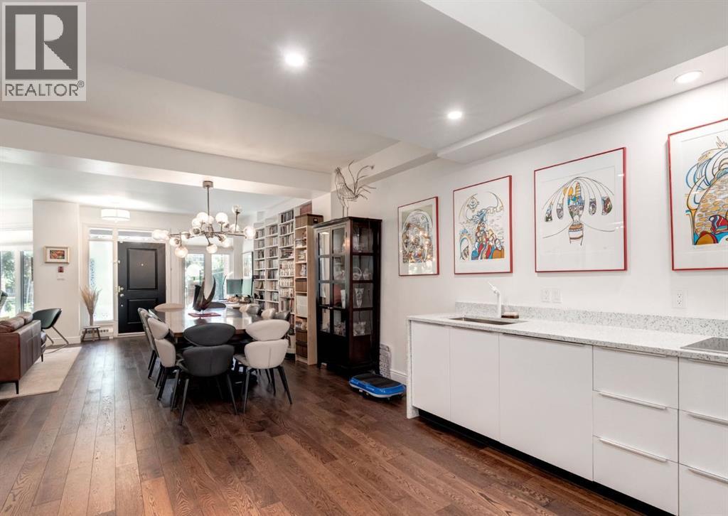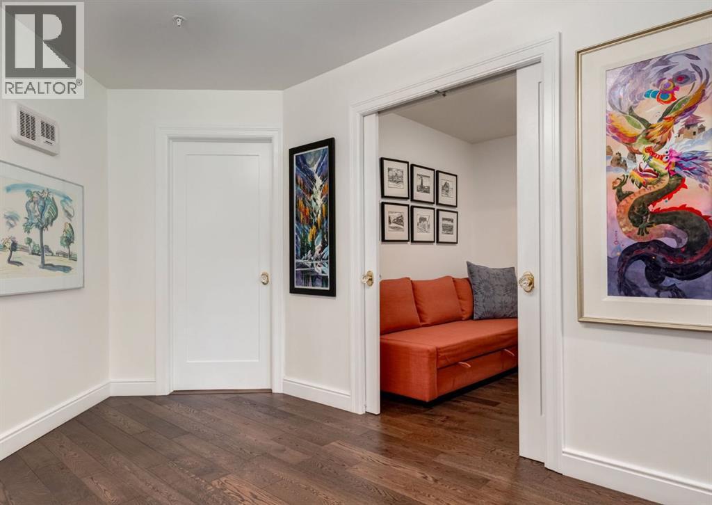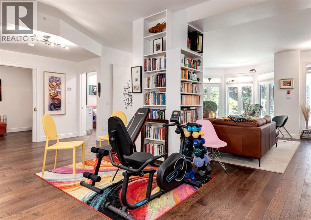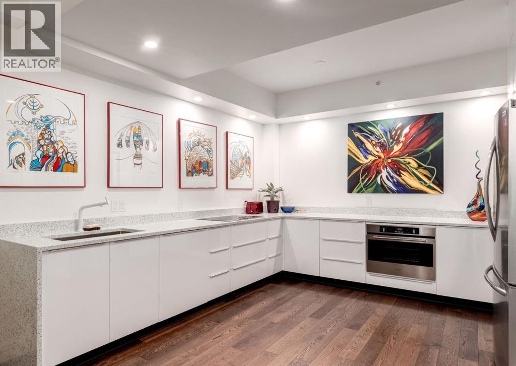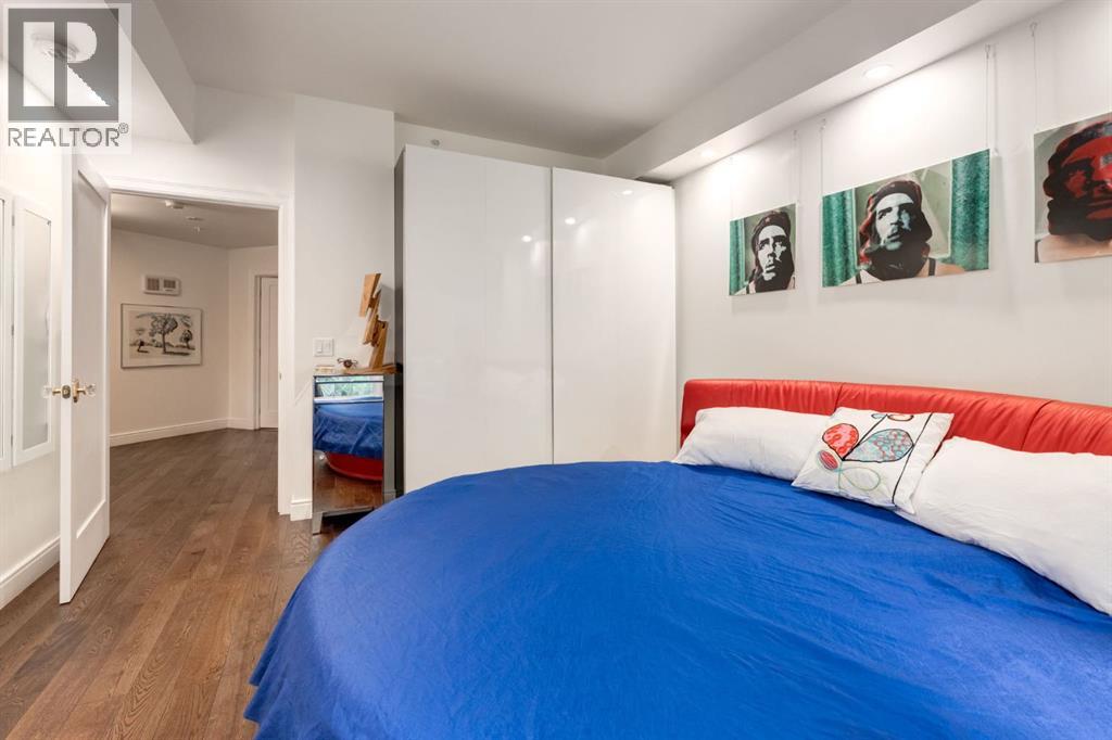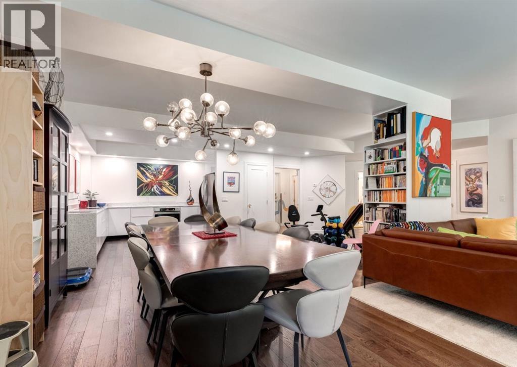 Rare Garden-Level Bungalow in Eau Claire with a private yard, professionally renovated interior, and exceptional accessibility. Offering over 1,400 square feet of refined single-level living, this home combines modern comfort, thoughtful design, and an unbeatable location. Step into a bright and open-concept living space with 9-foot ceilings, engineered hardwood floors, and garden-facing windows fitted with upgraded blinds. The spacious layout includes a 1-bedroom plus a den—perfect for a home office or overnight guests. The fully renovated kitchen is both stylish and functional, featuring quartz countertops, stainless steel appliances, induction cooktop, ample storage, and a generous sized pantry. The primary suite easily fits a king-sized bed with room to spare. The luxurious, handicap-accessible bathroom features a large barrier-free waterproofed shower with a stunning rose quartz bench, dual sinks, and elegant modern finishes. A dedicated mud room with full sized washer and dryer connects directly to the heated underground parkade, offering the convenience of private front and back entrances—ideal for pet owners, gardeners, or anyone seeking easy access. Outdoor living is just as impressive, with a private fenced yard, aggregate patio, gas line for BBQ, and beautiful flowers surrounded by mature trees—your own tranquil oasis in the city. This pet-friendly complex (with board approval) includes valuable amenities like a car wash bay, 27 indoor visitor parking stalls, onsite property manager, and a secure concrete structure for peace of mind. Additional highlights include air conditioning, titled underground parking directly outside of the unit, assigned storage locker, and condo fees that include all utilities (water, power, gas). Whether you're downsizing from a house or seeking a posh, low-maintenance inner-city lifestyle, this exceptional home offers comfort and convenience in one of Calgary’s most desirable communities. Floor plans and a 3D tour are readily available, providing a glimpse into this stylish condo! (id:53676)