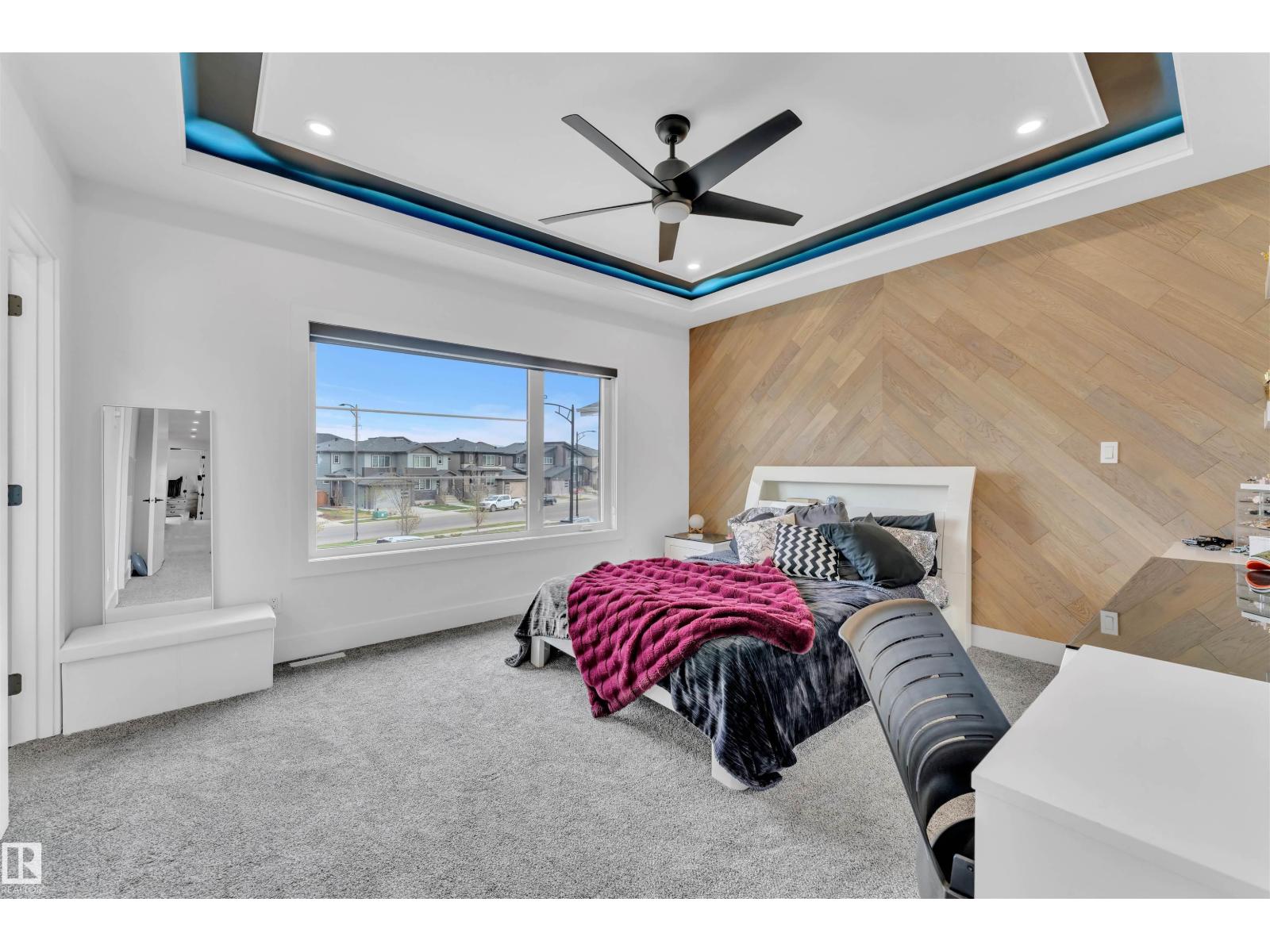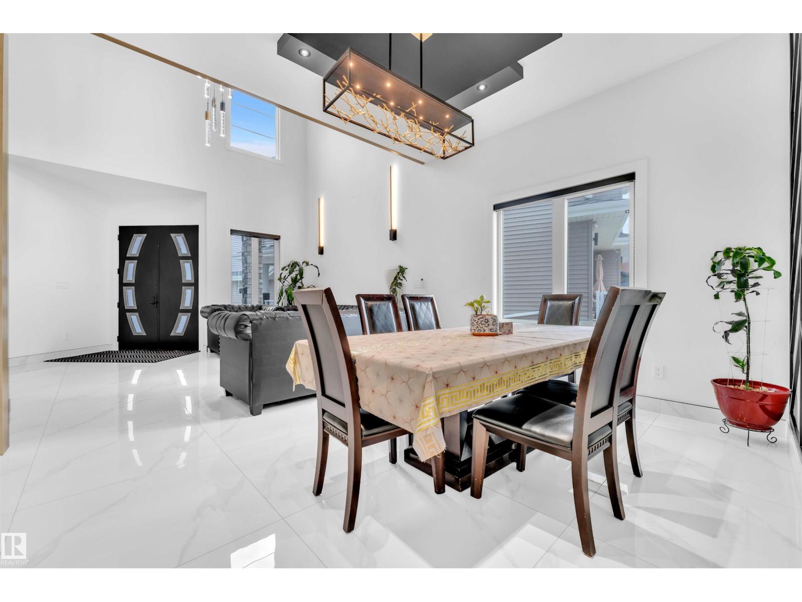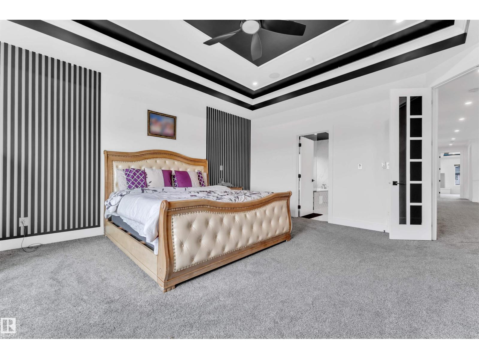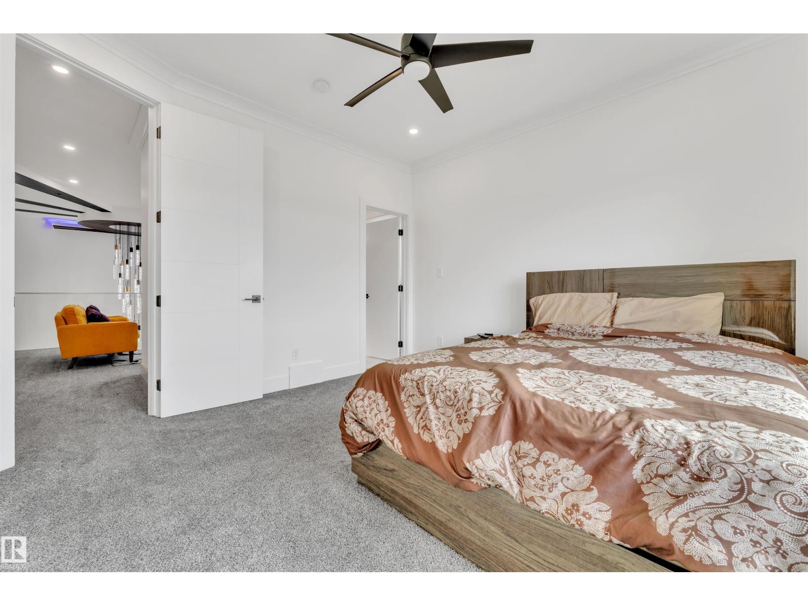 Experience luxury living in this stunning 3,920 sq. ft. walkout home featuring a rare triple garage and serene pond views. The main floor impresses with a bright open-to-below living room, a cozy family area, and a versatile bedroom or den paired with a full 3-piece bath—perfect for guests or multigenerational living. A thoughtfully designed mudroom adds everyday convenience, while the chef-inspired main kitchen showcases elegant quartz countertops, complemented by a fully equipped separate spice kitchen. Upstairs, discover four generously sized bedrooms, each with its own private ensuite, along with a convenient laundry room, a spacious bonus room, and an additional prayer or storage space. The fully finished walkout basement is an entertainer’s dream, offering two additional bedrooms, two full bathrooms, a dedicated theatre room, a second kitchen, a wet bar, and a large recreation area—ideal for hosting or extended family living. (id:53676)