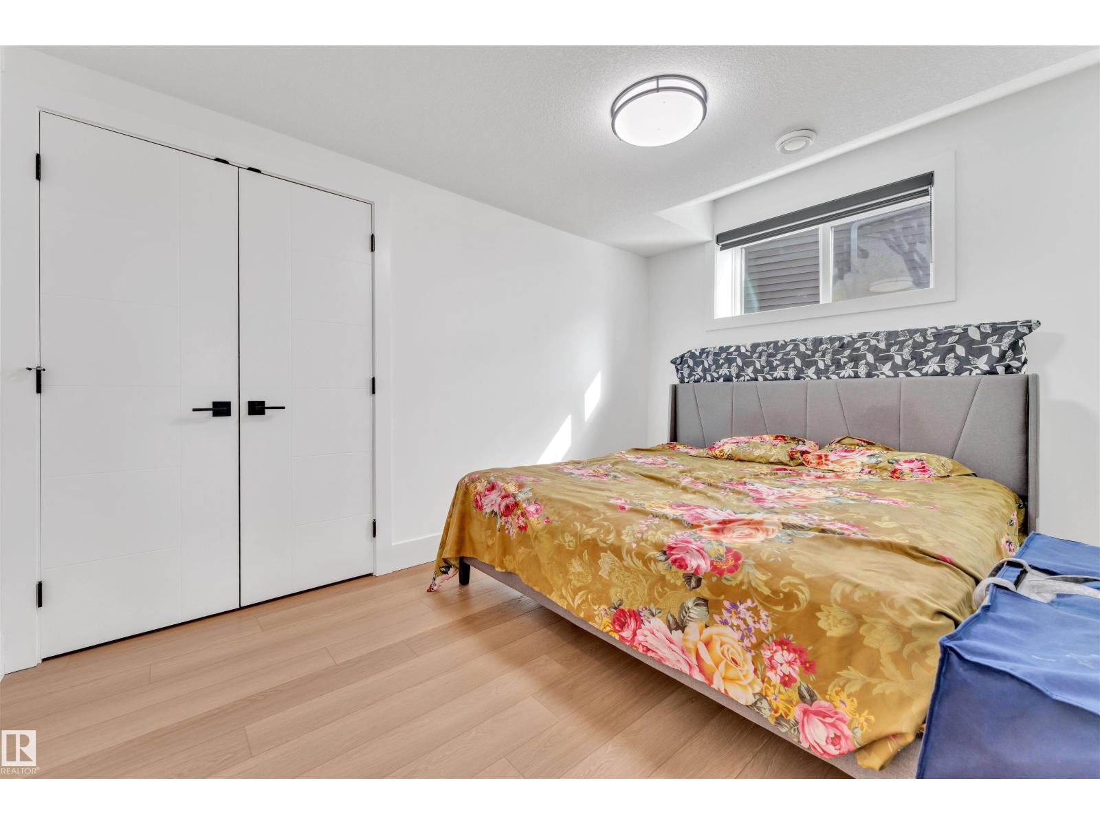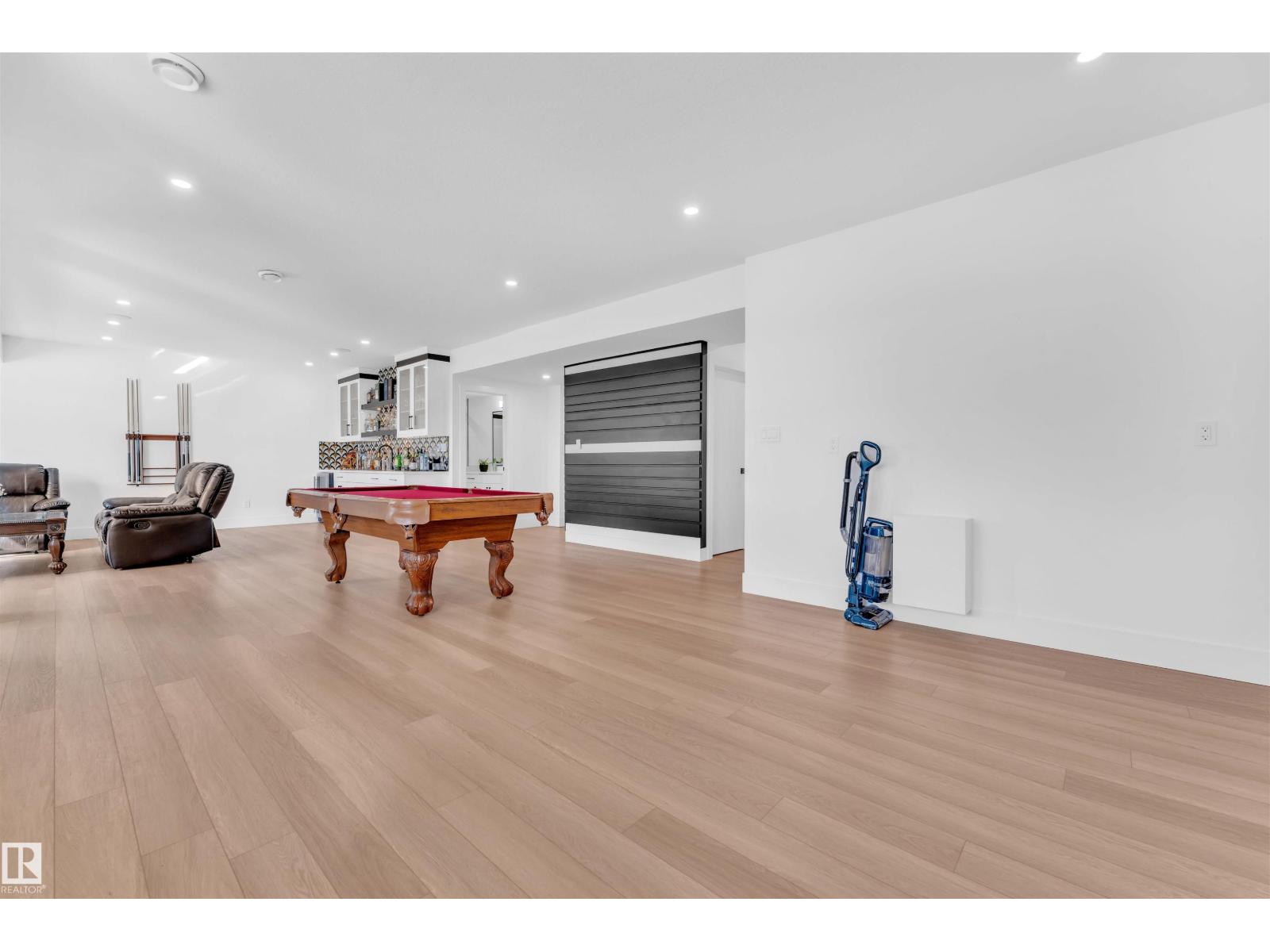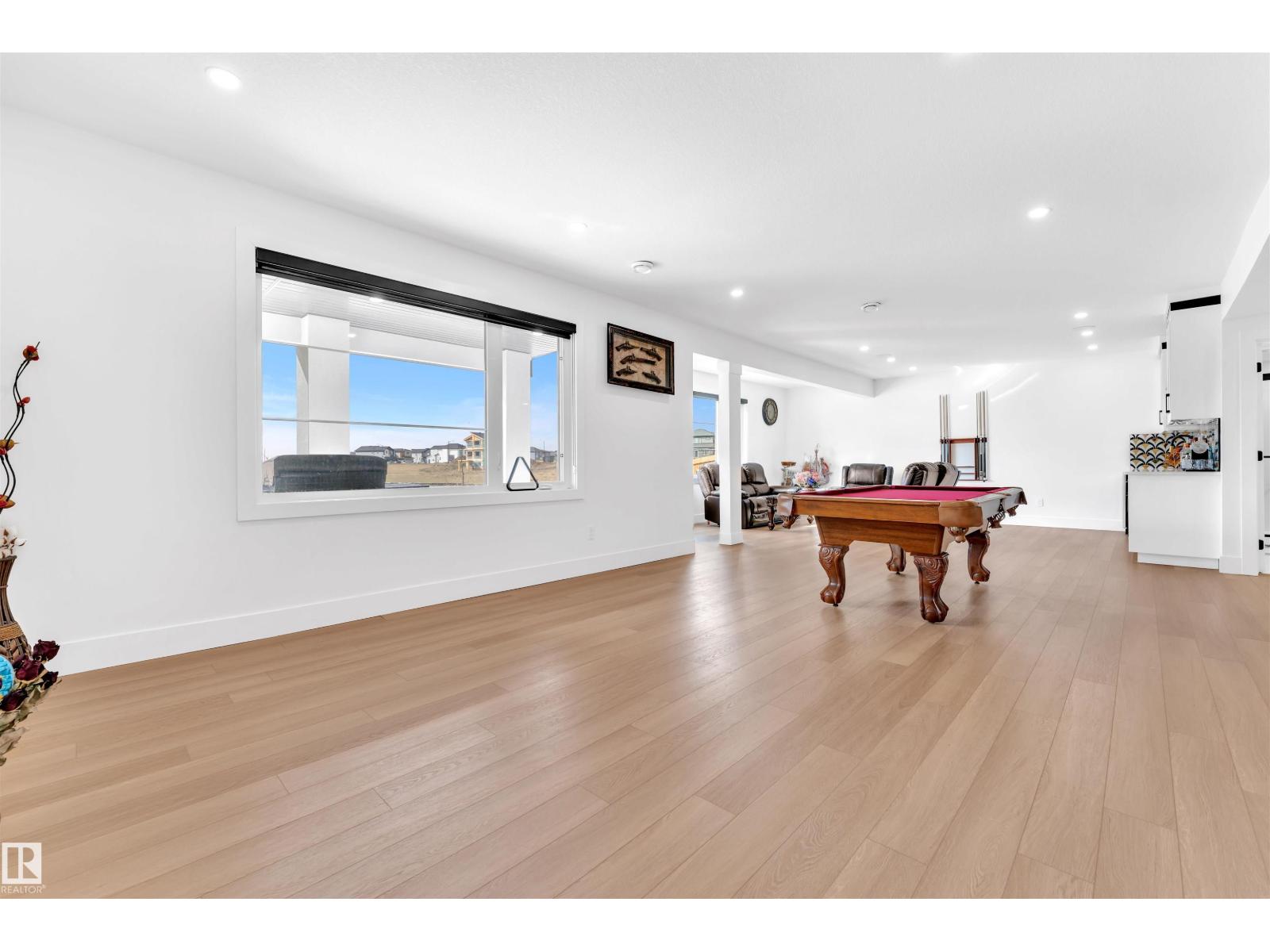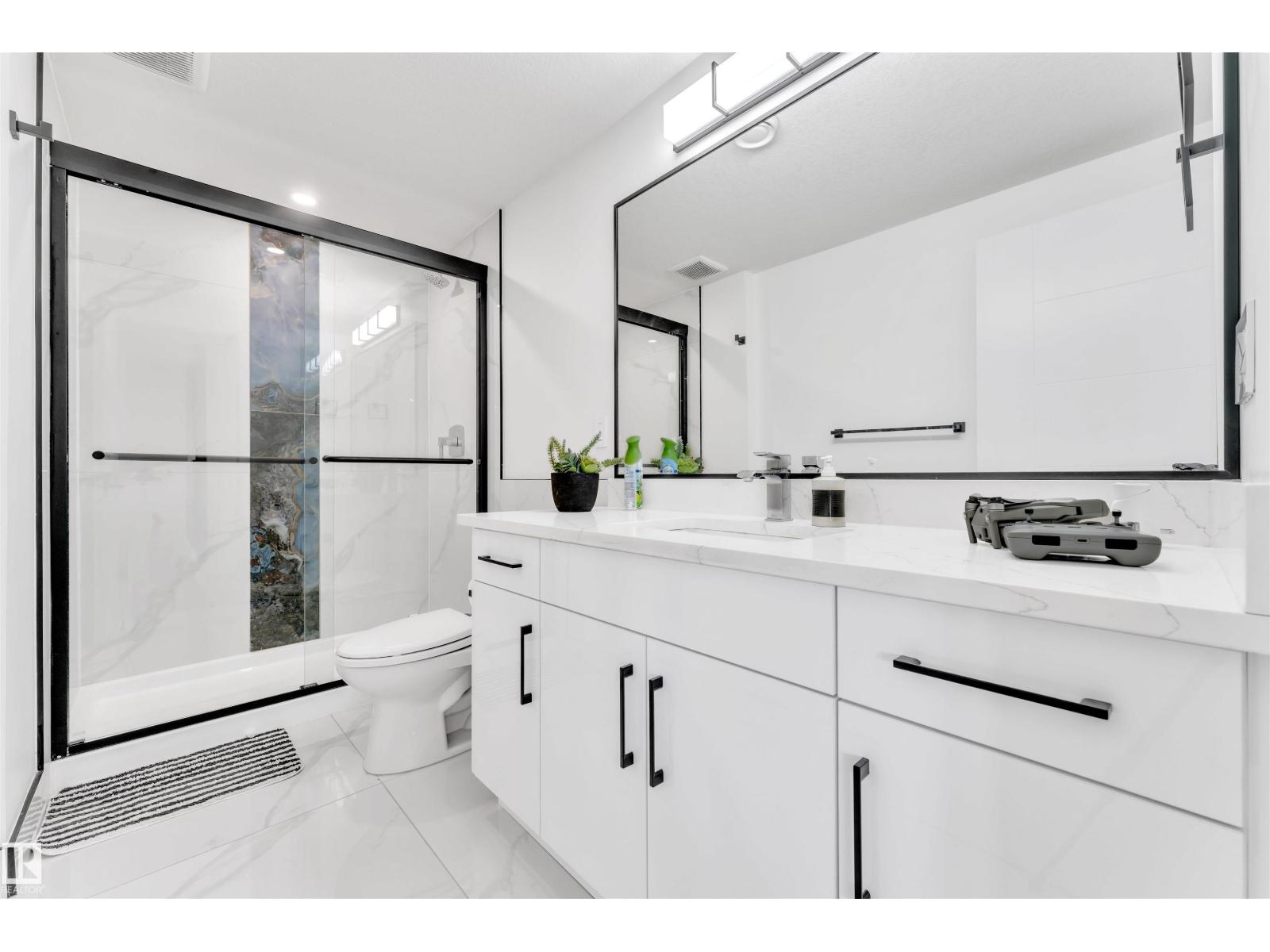 Experience luxury living in this stunning 3,920 sq. ft. walkout home featuring a rare triple garage and serene pond views. The main floor impresses with a bright open-to-below living room, a cozy family area, and a versatile bedroom or den paired with a full 3-piece bath—perfect for guests or multigenerational living. A thoughtfully designed mudroom adds everyday convenience, while the chef-inspired main kitchen showcases elegant quartz countertops, complemented by a fully equipped separate spice kitchen. Upstairs, discover four generously sized bedrooms, each with its own private ensuite, along with a convenient laundry room, a spacious bonus room, and an additional prayer or storage space. The fully finished walkout basement is an entertainer’s dream, offering two additional bedrooms, two full bathrooms, a dedicated theatre room, a second kitchen, a wet bar, and a large recreation area—ideal for hosting or extended family living. (id:53676)
