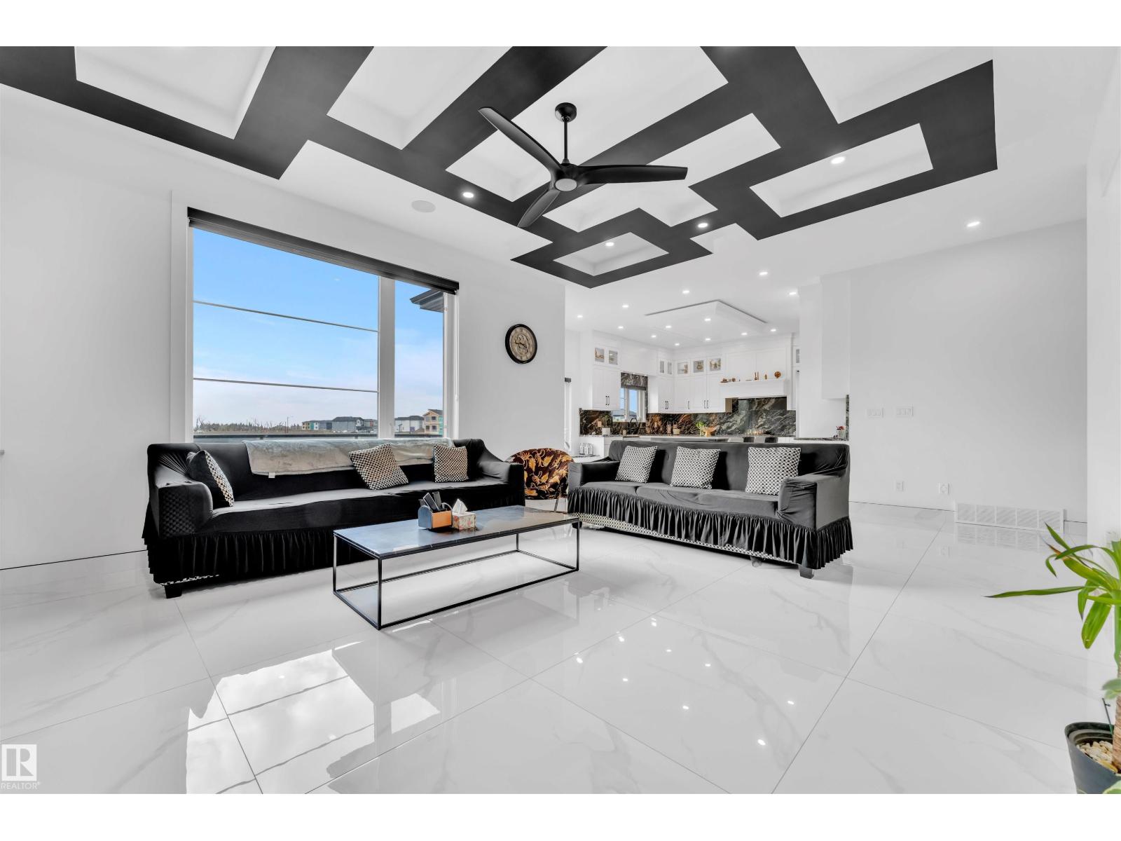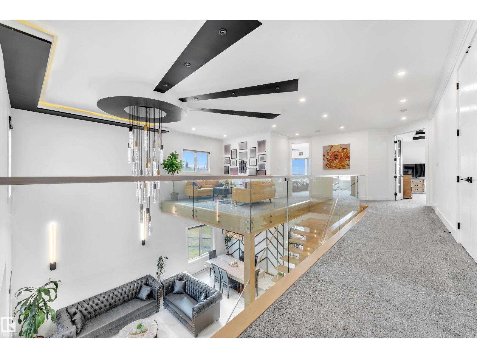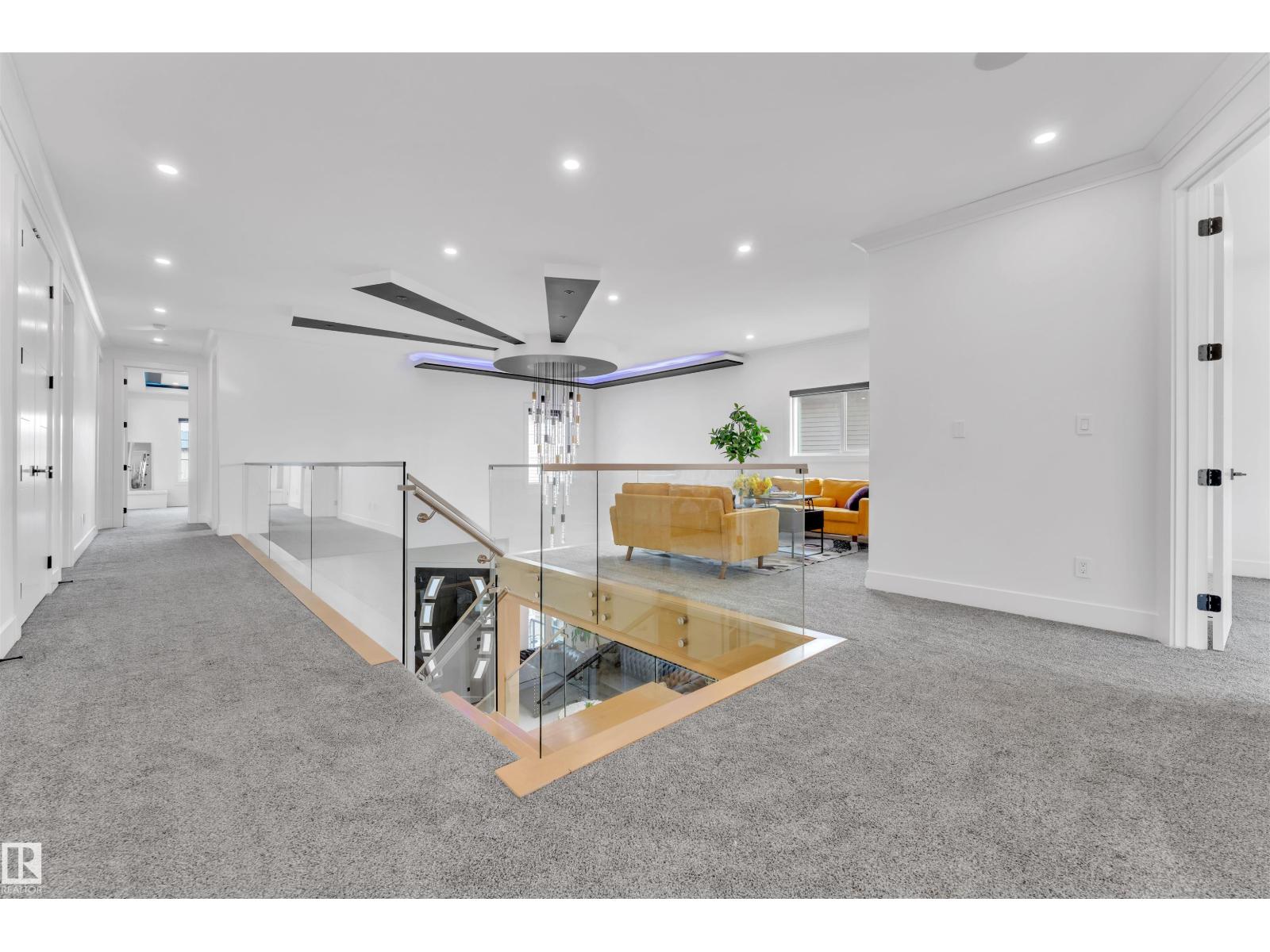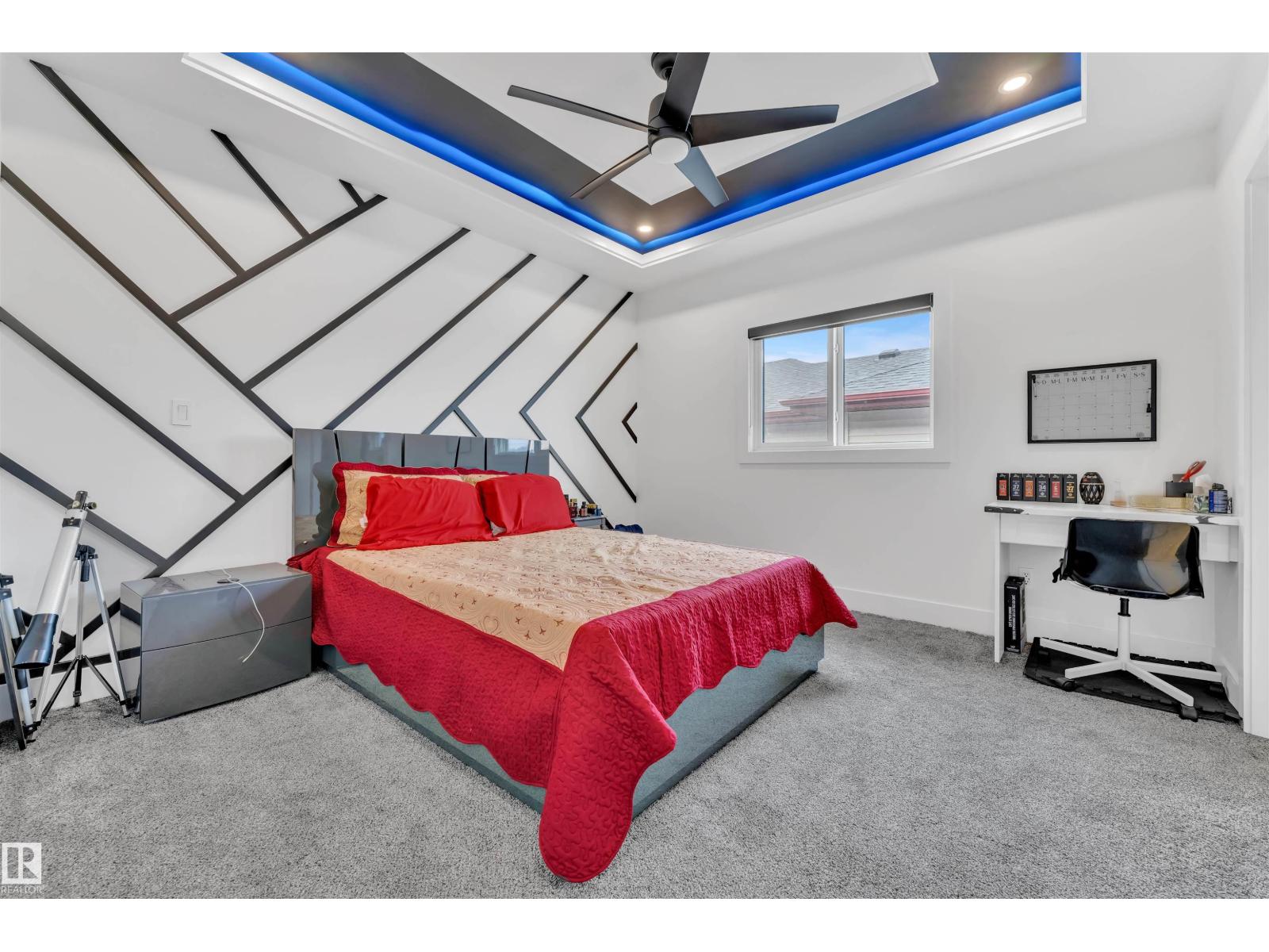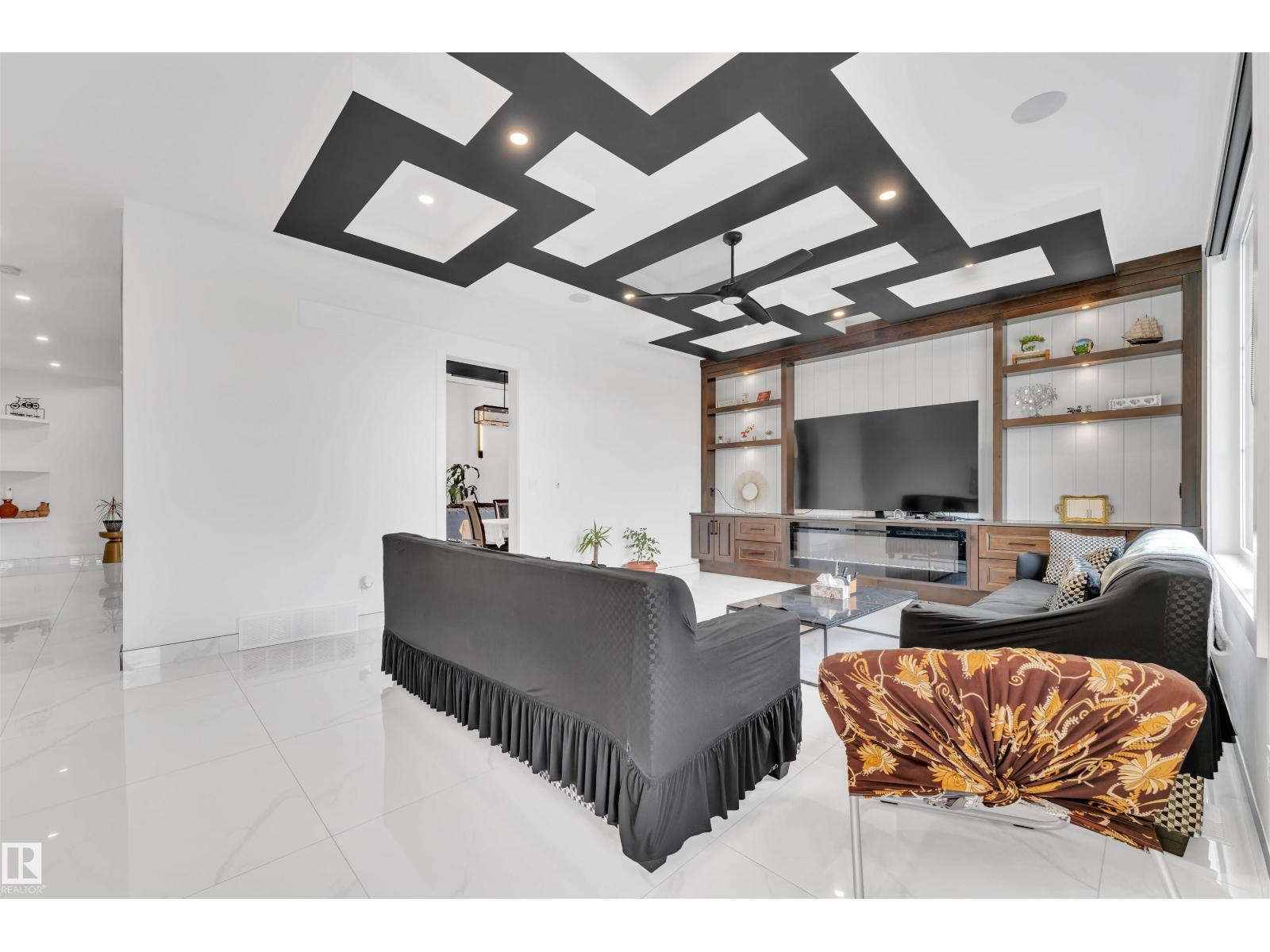 Experience luxury living in this stunning 3,920 sq. ft. walkout home featuring a rare triple garage and serene pond views. The main floor impresses with a bright open-to-below living room, a cozy family area, and a versatile bedroom or den paired with a full 3-piece bath—perfect for guests or multigenerational living. A thoughtfully designed mudroom adds everyday convenience, while the chef-inspired main kitchen showcases elegant quartz countertops, complemented by a fully equipped separate spice kitchen. Upstairs, discover four generously sized bedrooms, each with its own private ensuite, along with a convenient laundry room, a spacious bonus room, and an additional prayer or storage space. The fully finished walkout basement is an entertainer’s dream, offering two additional bedrooms, two full bathrooms, a dedicated theatre room, a second kitchen, a wet bar, and a large recreation area—ideal for hosting or extended family living. (id:53676)