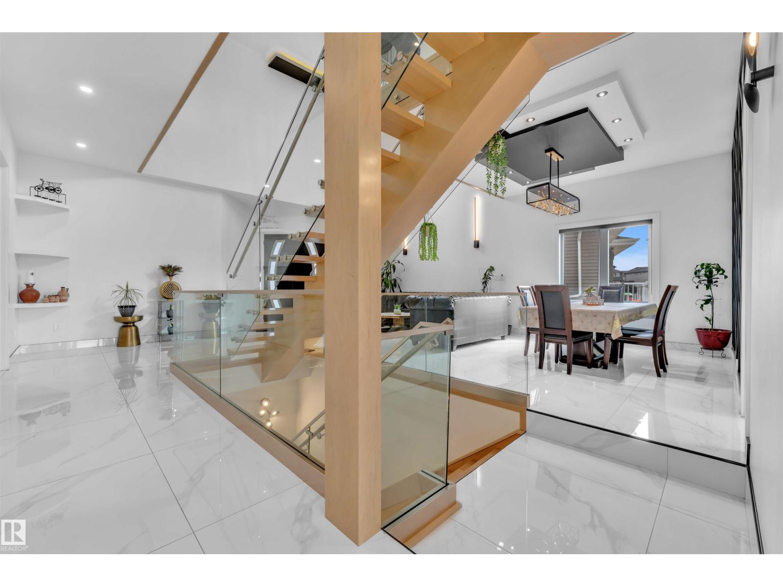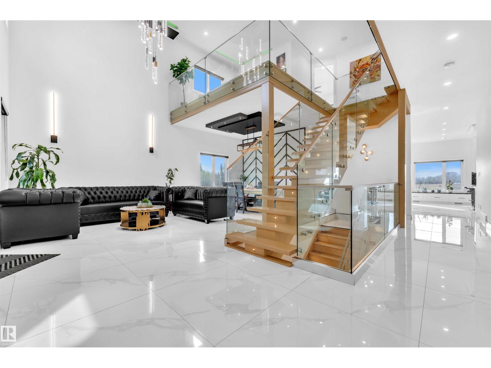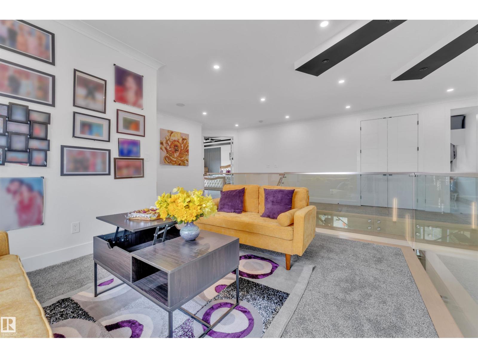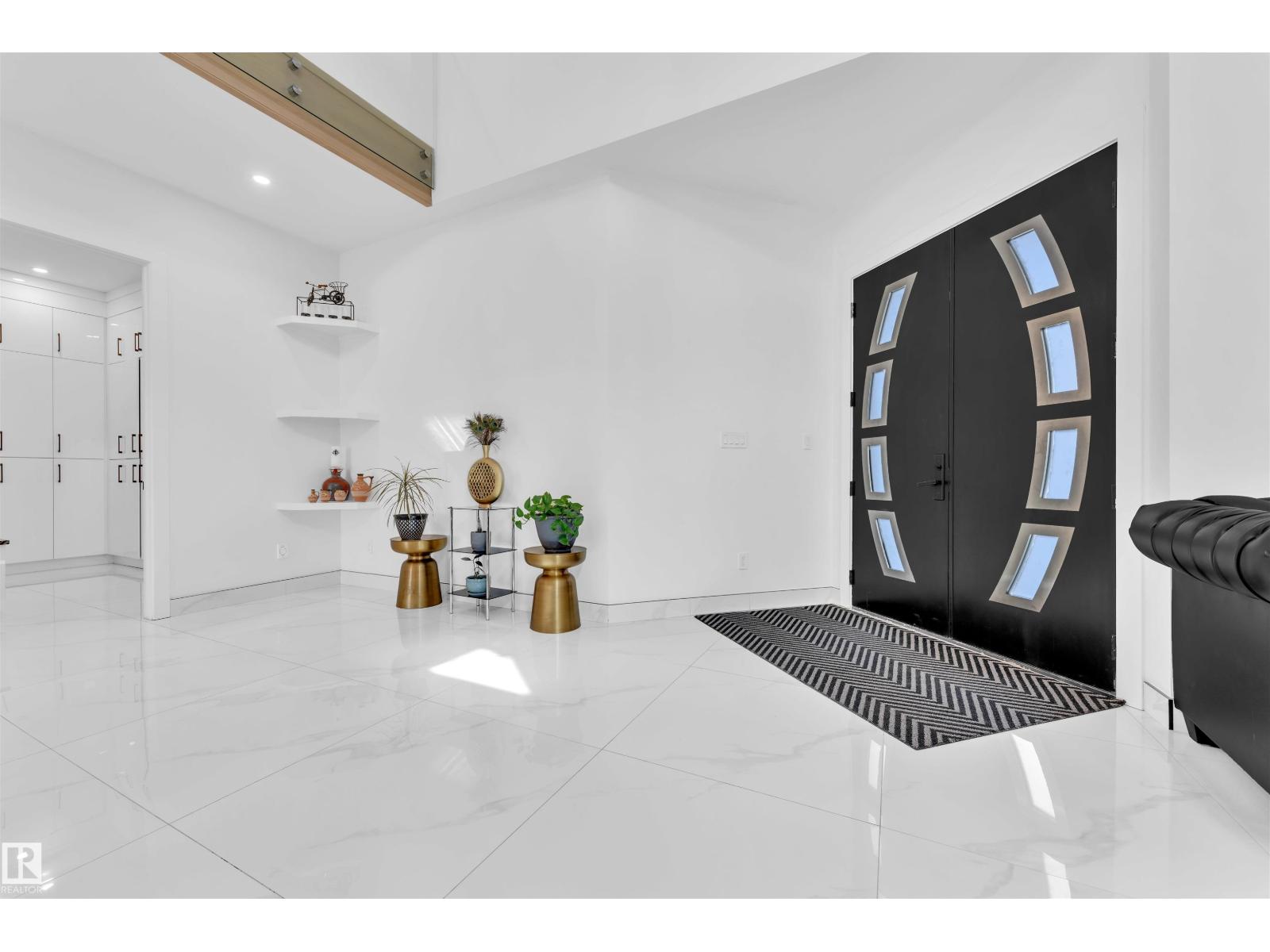 Experience luxury living in this stunning 3,920 sq. ft. walkout home featuring a rare triple garage and serene pond views. The main floor impresses with a bright open-to-below living room, a cozy family area, and a versatile bedroom or den paired with a full 3-piece bath—perfect for guests or multigenerational living. A thoughtfully designed mudroom adds everyday convenience, while the chef-inspired main kitchen showcases elegant quartz countertops, complemented by a fully equipped separate spice kitchen. Upstairs, discover four generously sized bedrooms, each with its own private ensuite, along with a convenient laundry room, a spacious bonus room, and an additional prayer or storage space. The fully finished walkout basement is an entertainer’s dream, offering two additional bedrooms, two full bathrooms, a dedicated theatre room, a second kitchen, a wet bar, and a large recreation area—ideal for hosting or extended family living. (id:53676)