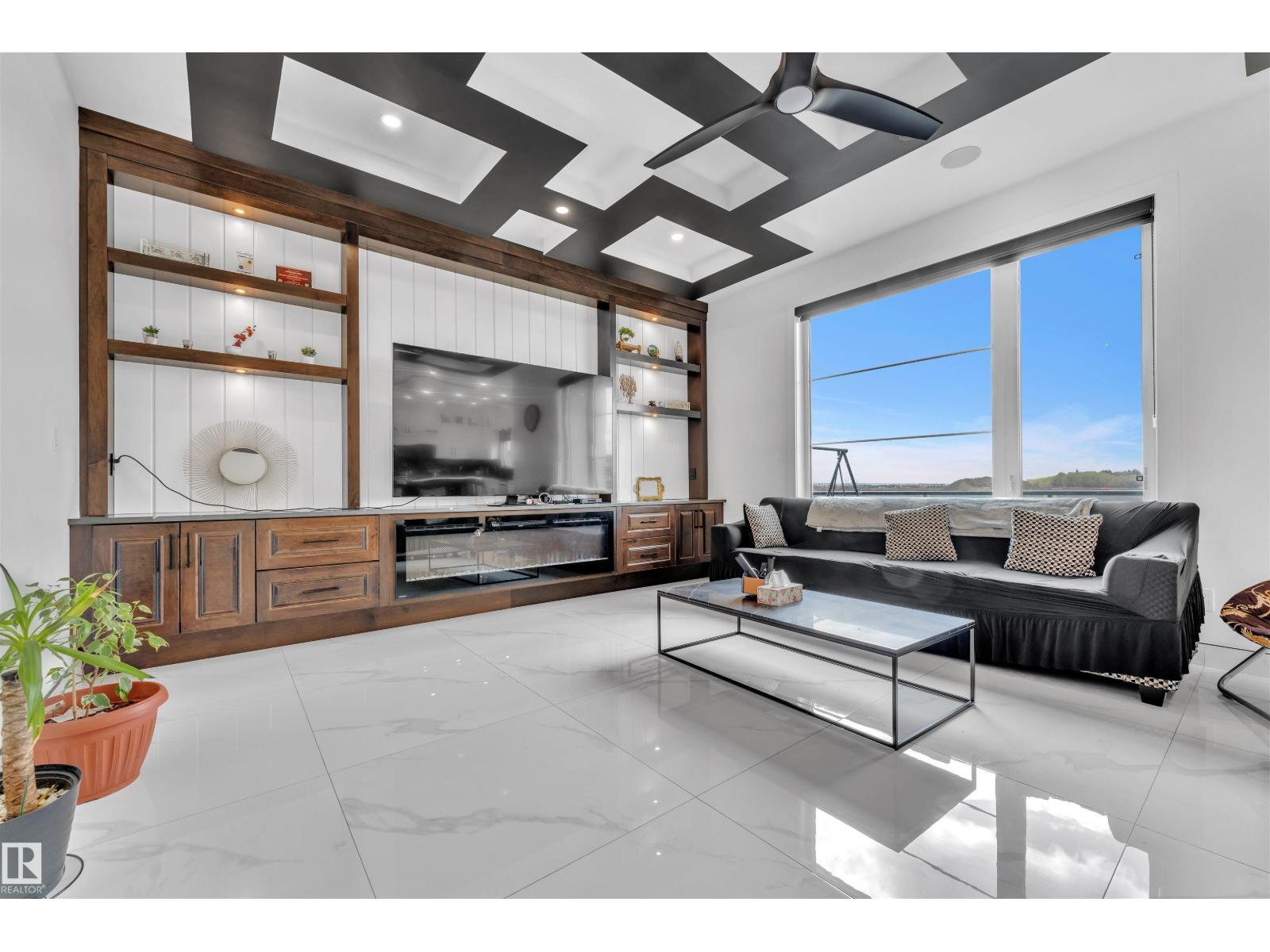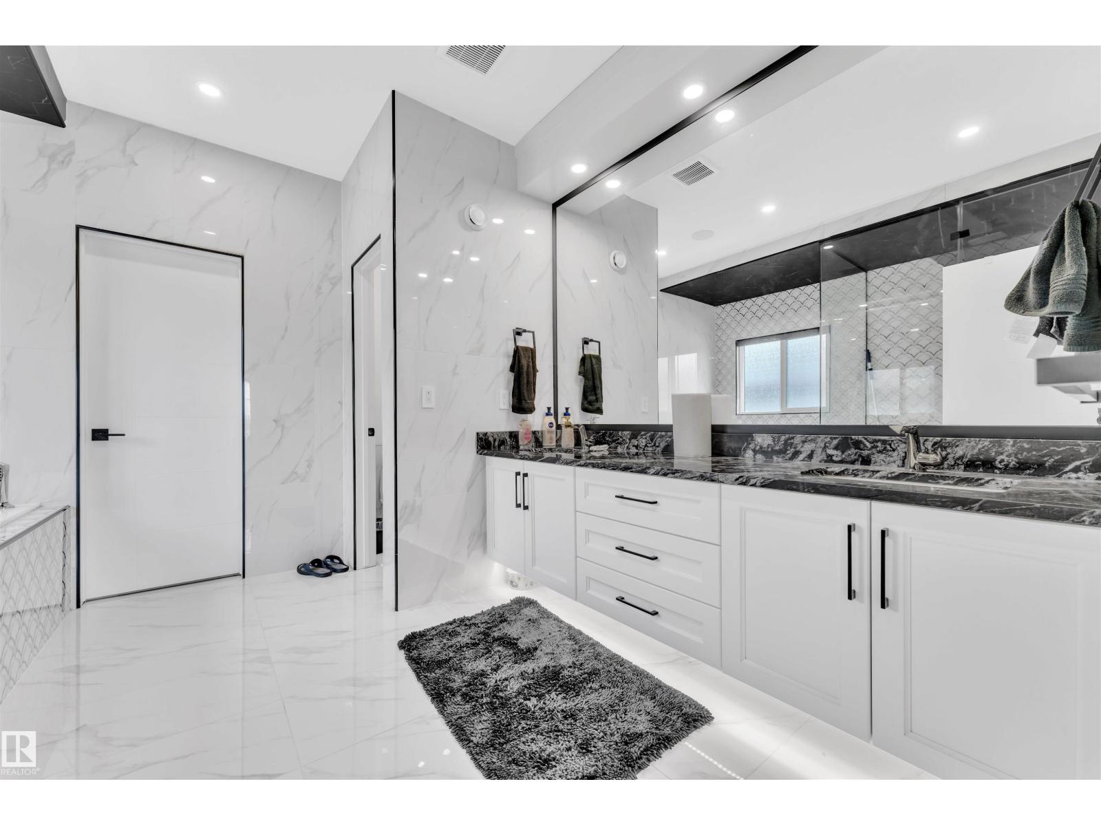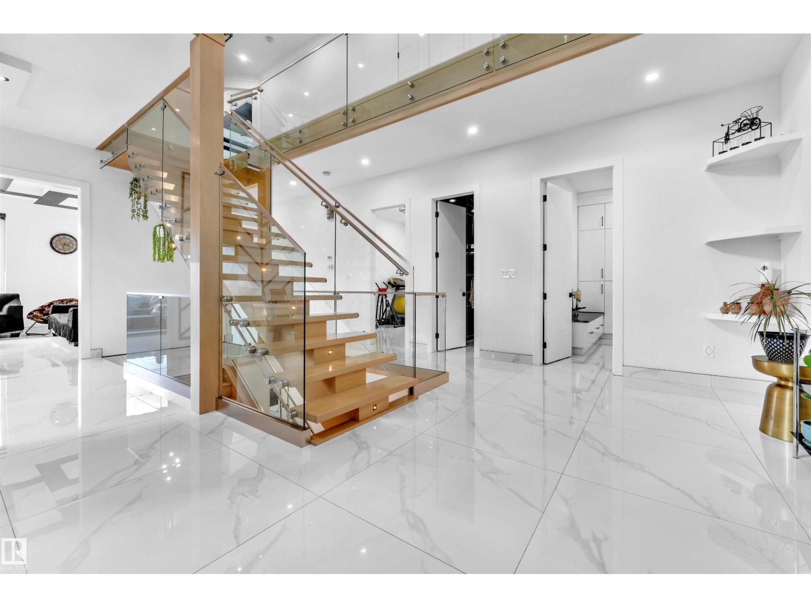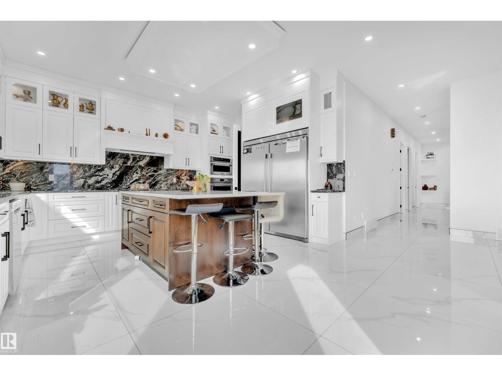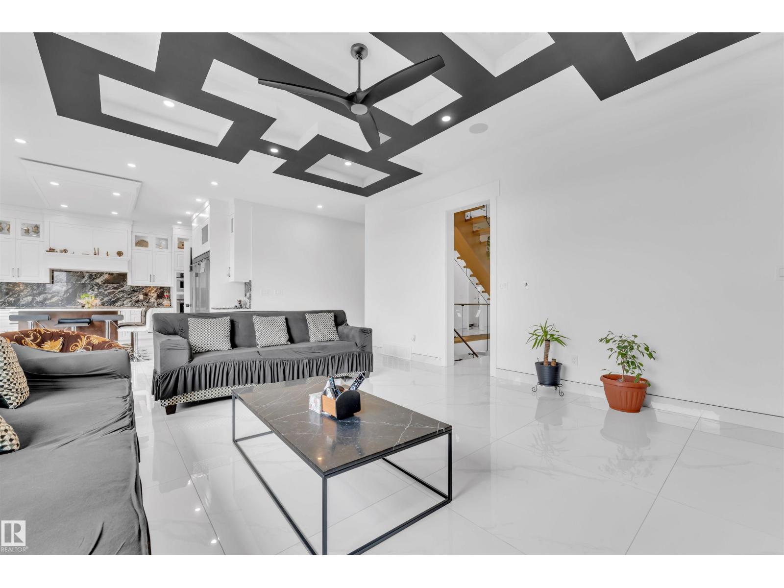 Experience luxury living in this stunning 3,920 sq. ft. walkout home featuring a rare triple garage and serene pond views. The main floor impresses with a bright open-to-below living room, a cozy family area, and a versatile bedroom or den paired with a full 3-piece bath—perfect for guests or multigenerational living. A thoughtfully designed mudroom adds everyday convenience, while the chef-inspired main kitchen showcases elegant quartz countertops, complemented by a fully equipped separate spice kitchen. Upstairs, discover four generously sized bedrooms, each with its own private ensuite, along with a convenient laundry room, a spacious bonus room, and an additional prayer or storage space. The fully finished walkout basement is an entertainer’s dream, offering two additional bedrooms, two full bathrooms, a dedicated theatre room, a second kitchen, a wet bar, and a large recreation area—ideal for hosting or extended family living. (id:53676)