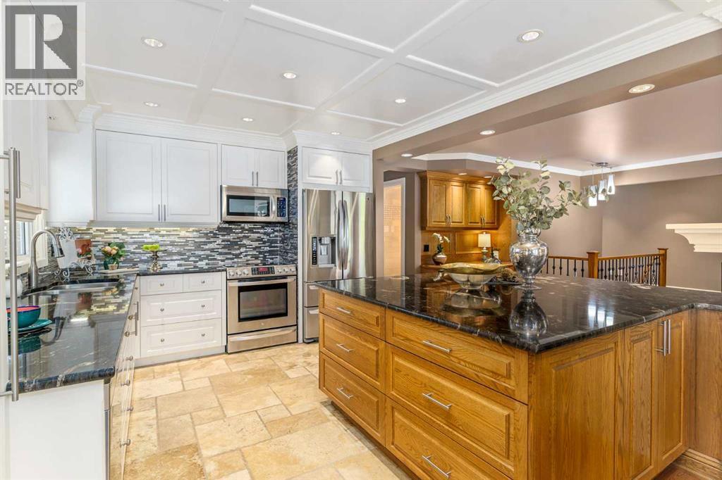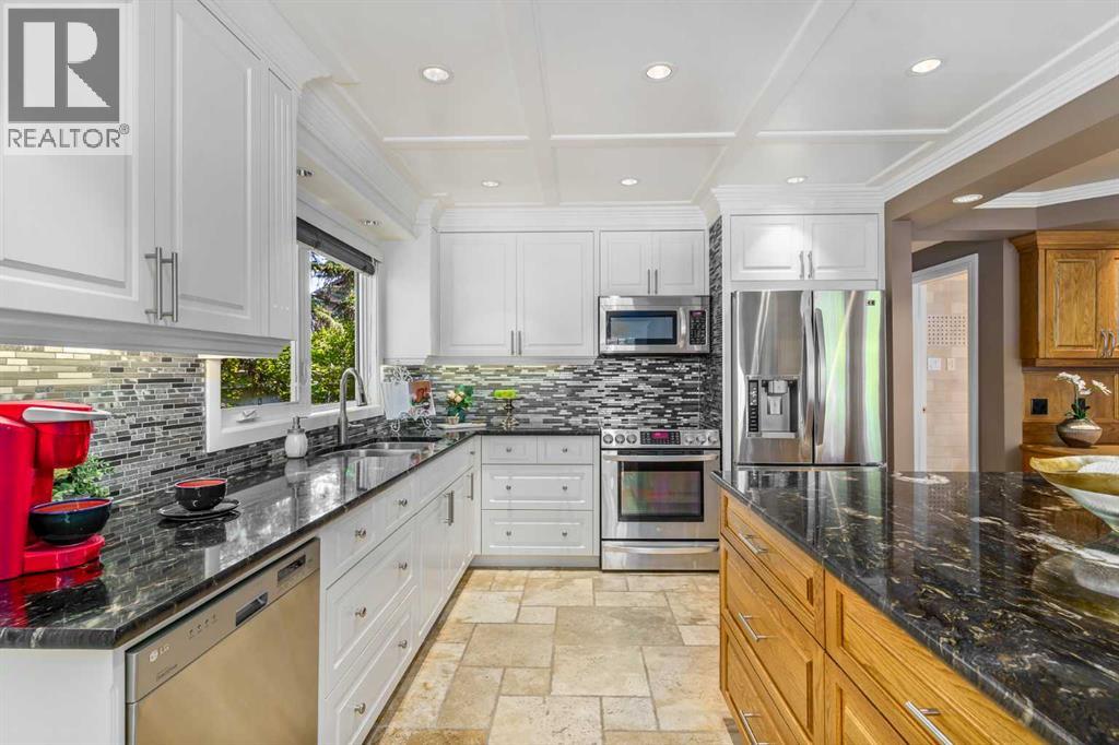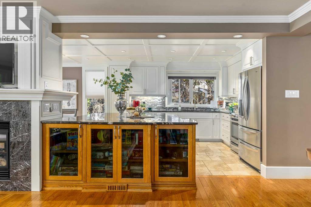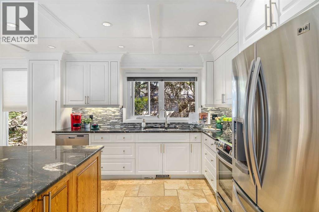 OPEN HOUSE SATURDAY AND SUNDAY SEPTEMBER 27&28 2-4PM!****56 x 125 ft LOT!*Never before seen on the market, this walk out bungalow is steps from the Bow River, Bowness High School, walking paths, parks and more. Sitting on the massive, two tiered back patio of this property you will feel like you are living in your own private forest. The serenity and beauty of the outdoors is matched by traditional, classic, high end finishes within. The three bedroom main level will blow you away with its coffered ceilings, kitchen styled for a queen/king, crown moulding, granite counters throughout, private primary ensuite, convenient built ins and a double sided gas fireplace that welcomes you to relax, wine and dine in this cozy but luxurious space. Downstairs you will be greeted by a kitchenette/wet bar, living room, private office, an additional bedroom, a full bath, a laundry room larger than you can imagine, storage and my very favorite part...the stunning floor to ceiling windows of your second basement living room decked out with a stone wood burning fireplace. Walk right out into nature and be blown away by this two tiered, private yard. Come and fall in love with Bowness! Enjoy shopping at our local Farmer's Market, spending time in our Main Street restaurants, bars and local businesses, and all the seasonal activities of our stunning Bowness Park. (id:53676)