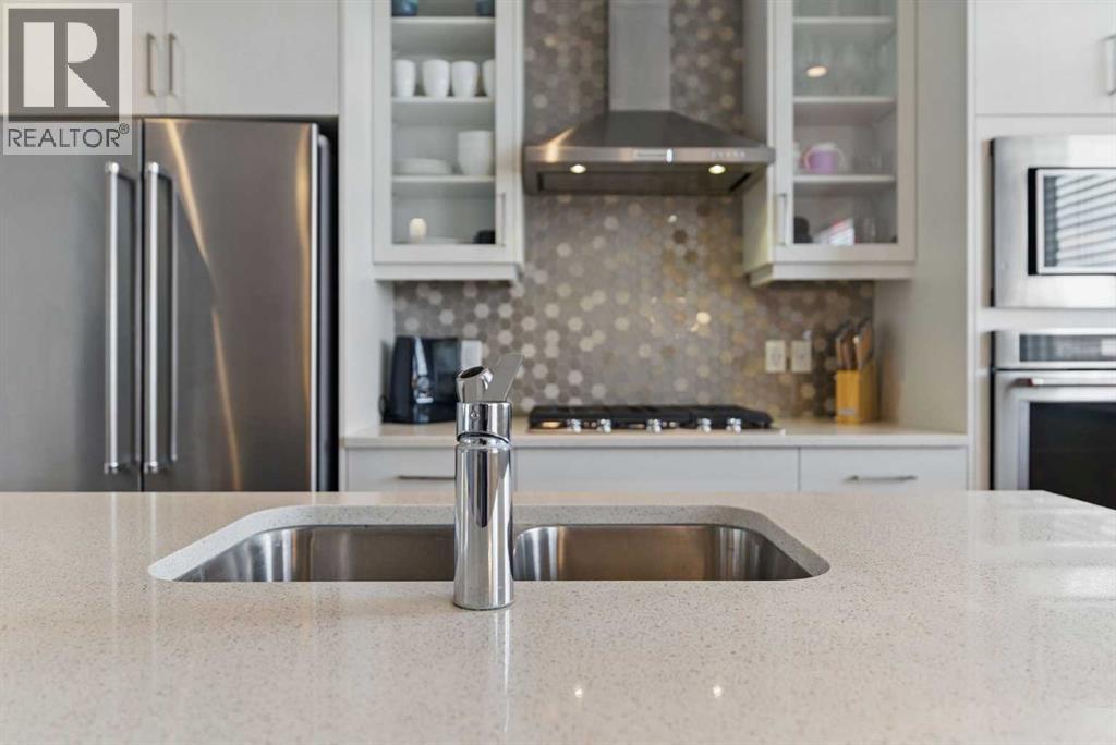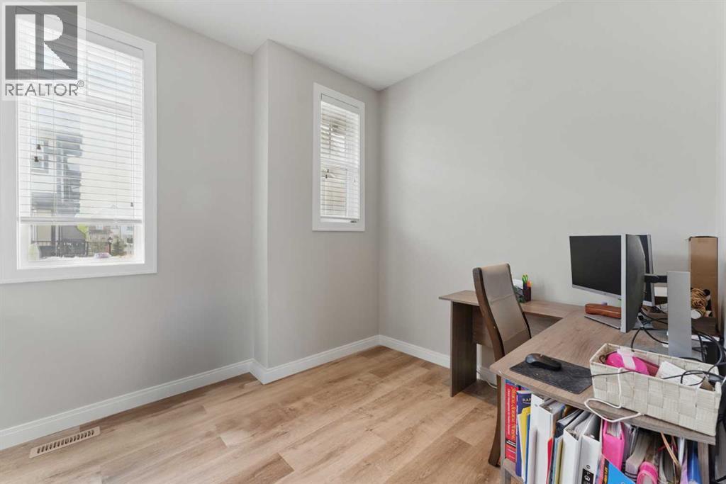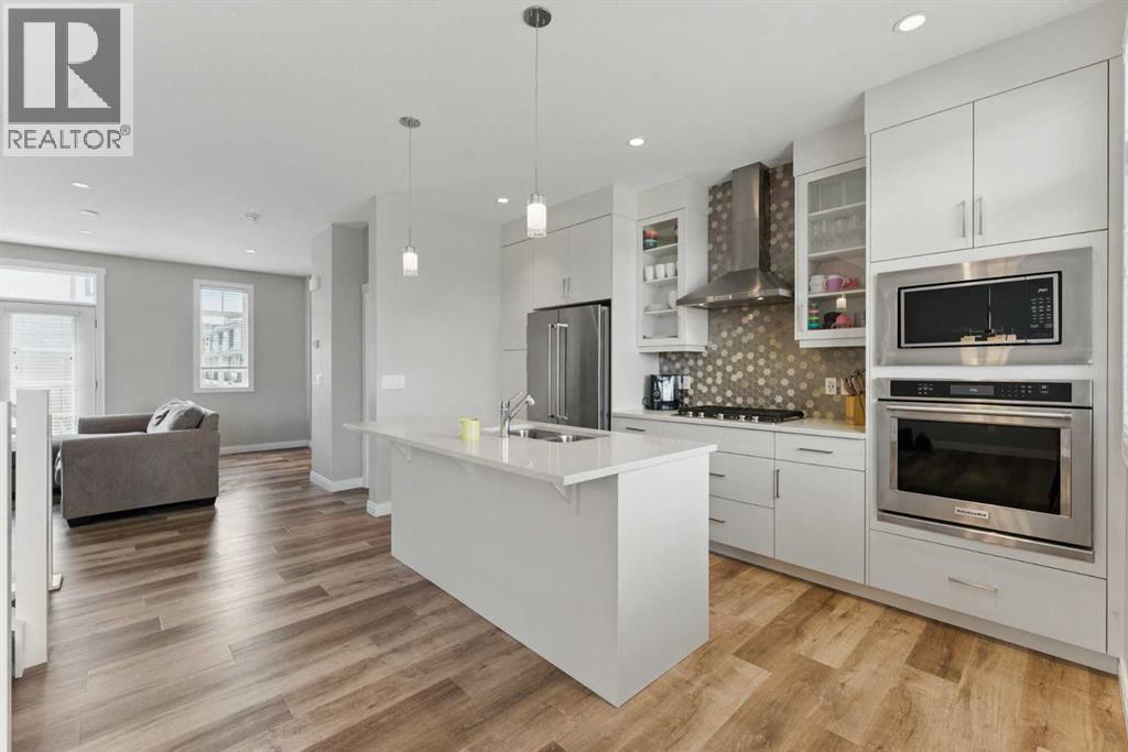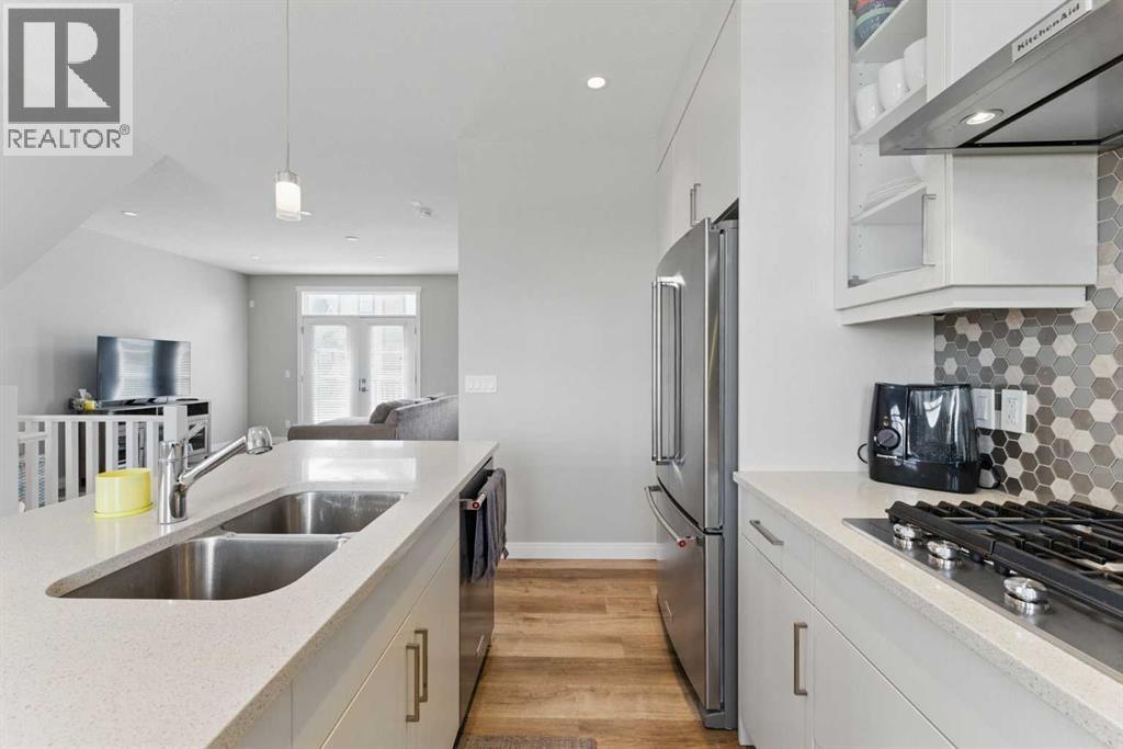 Welcome to Wentworth Pointe—an upscale townhome project by Trico Homes, ideally situated in the prestigious community of West Springs. This luxurious end-unit townhouse is priced to sell! Featuring three bedrooms, a double attached garage, and a modern, open-concept layout that beautifully balances style and functionality. A rare opportunity to own a versatile unit, with the main floor perfectly suited for a home-based business or professional workspace.As you enter, you're welcomed by a versatile entry-level den or office space, accompanied by a convenient 2-piece bathroom—perfect for those working from home, running a small business, or needing a quiet study area.Upstairs, the main living level boasts soaring 9-foot ceilings and an abundance of natural light thanks to its end-unit position. The contemporary kitchen is a chef’s dream, complete with stainless steel appliances, a 6-burner gas stove, and a large quartz-topped island that flows seamlessly into the dining area—ideal for entertaining or family meals.The spacious living room offers flexibility for additional work or play space and opens onto a private west-facing balcony—perfect for morning coffees or relaxing summer evenings. A second 2-piece bathroom completes this thoughtfully designed floor.On the upper level, you'll find a generous primary suite featuring a walk-in closet and a luxurious 5-piece ensuite with a soaker tub and a separate tile-and-glass shower. Two additional well-sized bedrooms share a full bathroom, and stacked laundry on this level adds convenience to your daily routine.The unfinished basement provides a blank canvas with plumbing rough-ins for a future bathroom and an egress window—ideal for adding an extra bedroom, gym, or media room.Perfectly positioned, Wentworth Pointe is just steps from trendy shops, cafés, and restaurants, offering a vibrant urban lifestyle in a suburban setting. With easy access to downtown Calgary, minutes away from Stoney Trail, and nearby LRT s tations, commuting is a breeze. You'll also enjoy proximity to scenic green spaces, bike paths, and walking trails—a dream location for professionals and families alike.Priced to sell. Don’t miss your chance to own in one of Calgary’s most desirable communities. (id:53676)