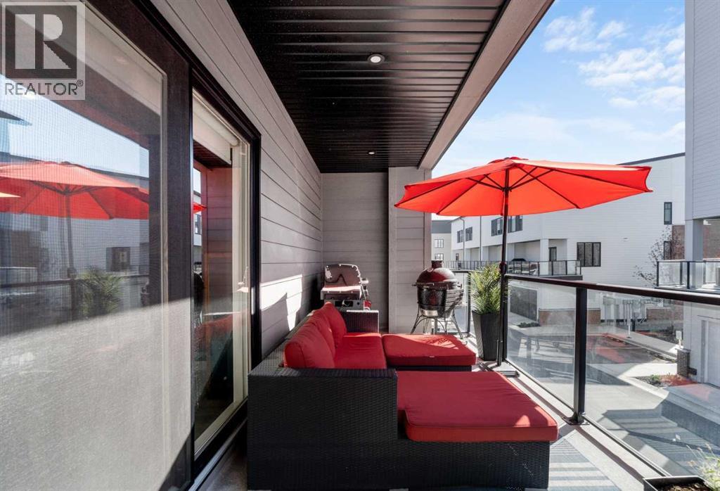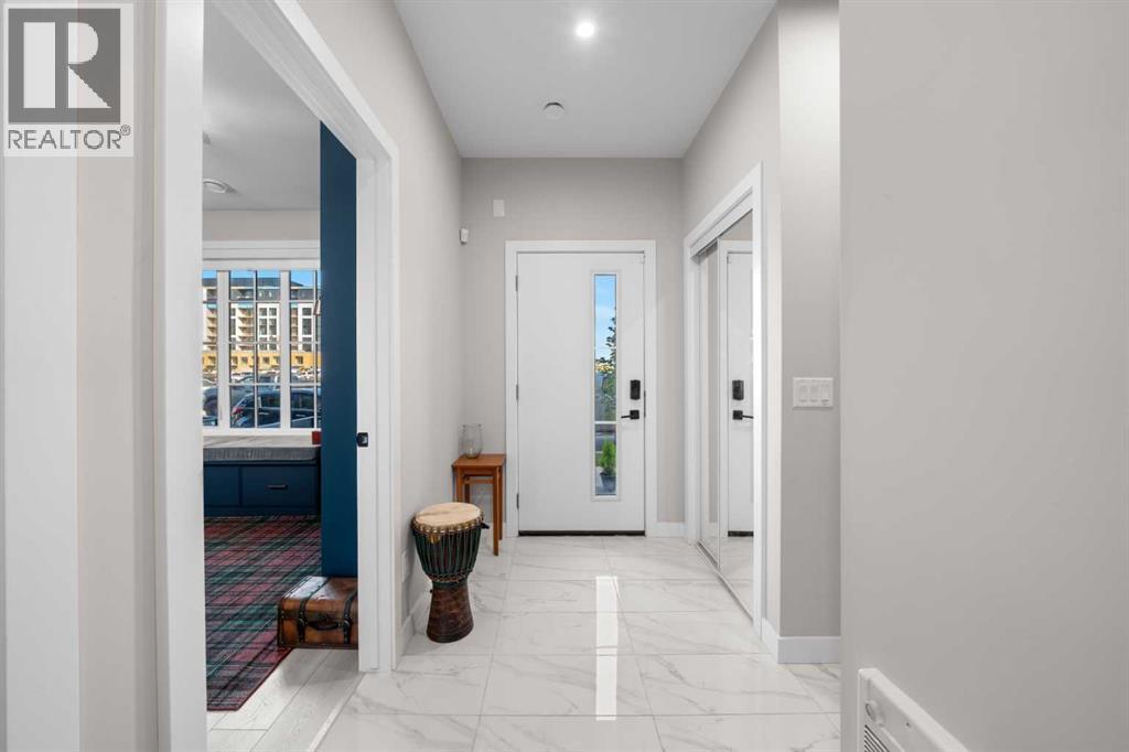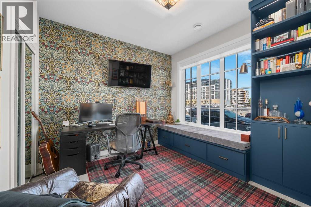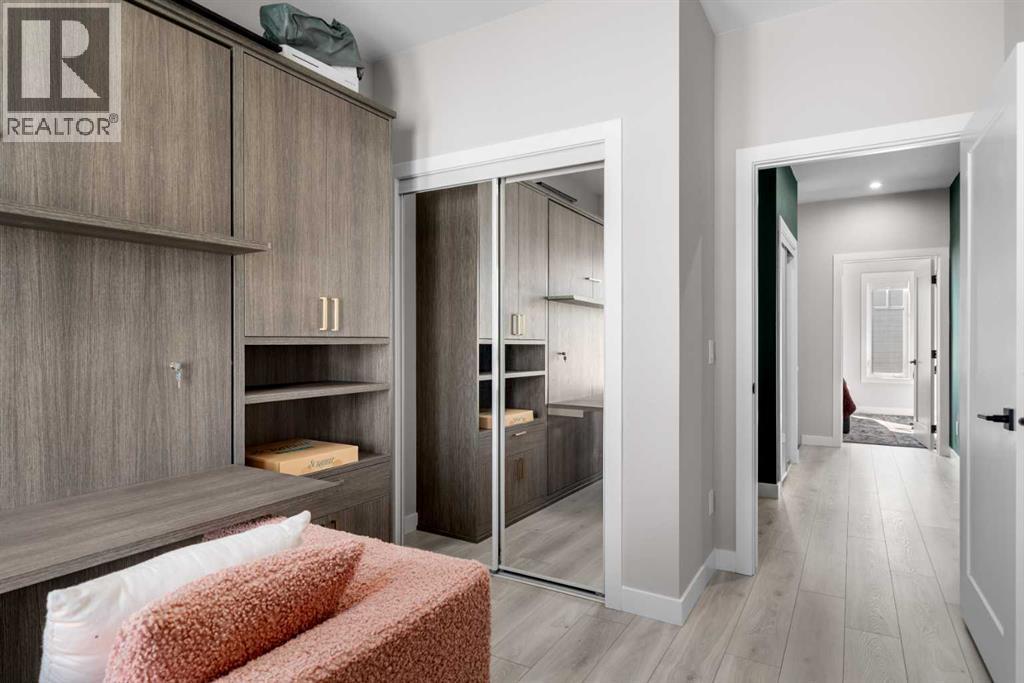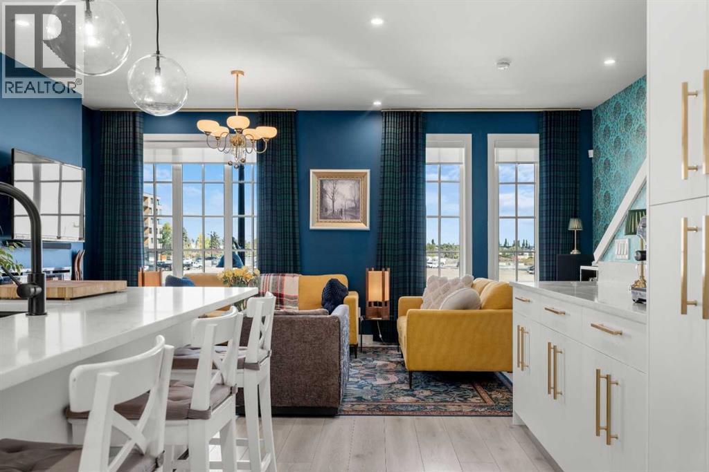 Welcome to 8161 8 Avenue SW in the community of West Springs. This 4 bedroom, 3 bathroom townhome is tastefully designed with modern finishes, functional upgrades, and a layout that balances style and comfort.Step inside to discover 9 ft ceilings, wide plank laminate flooring, and integrated LED lighting throughout. The chef’s kitchen is equipped with quartz countertops, a paneled fridge, gas range stove, and soft-close cabinetry with smart storage solutions. The living area features a 50-inch electric fireplace and opens onto a private balcony, creating the perfect space for both entertaining and relaxing.Custom details enhance the home, including a Murphy bed, custom drapes, premium Delta plumbing fixtures, and an A/C unit for year-round comfort. Environmentally friendly touches include WaterSense-certified fixtures and toilets. Over $50,000 has been invested in California Closets, bringing exceptional storage and organization to every corner of the home.With its large hallways and thoughtfully planned design, this home feels bright, open, and inviting. The location adds to its appeal—with views of the new park in west district, schools are just 5 minutes away, trendy coffee shops and cafes only 2 minutes from your door, and parks and walking paths are just steps away. (id:53676)