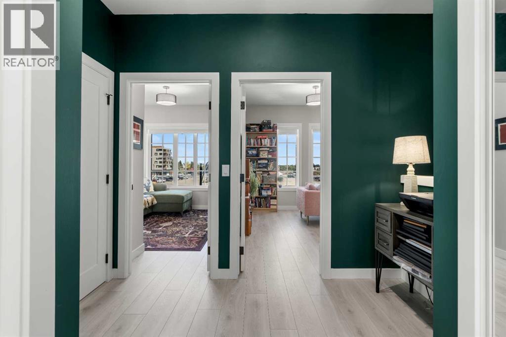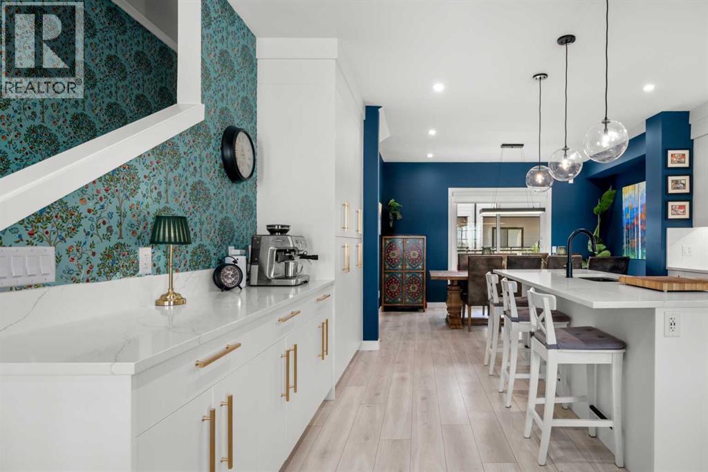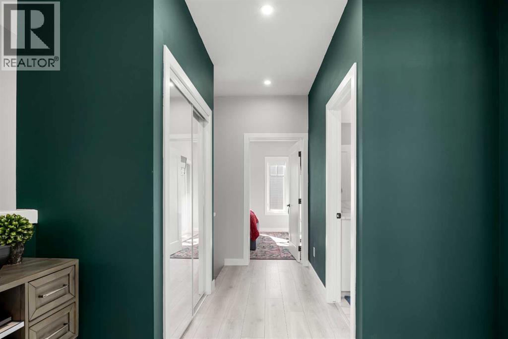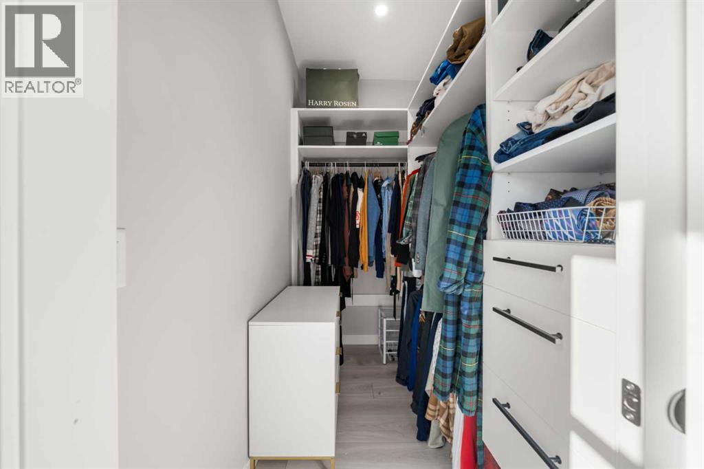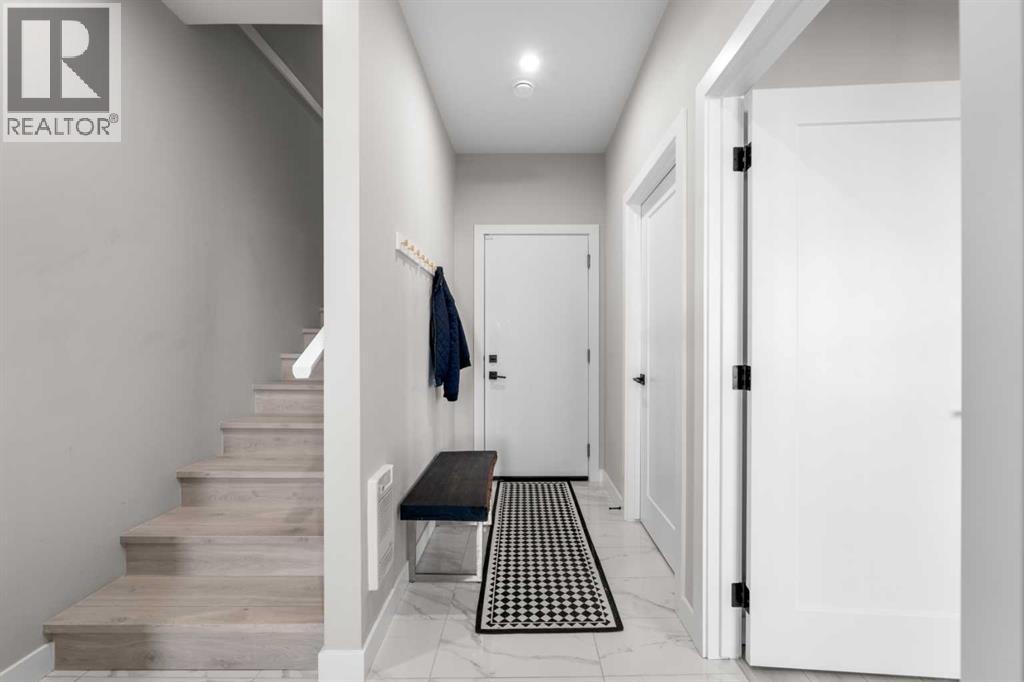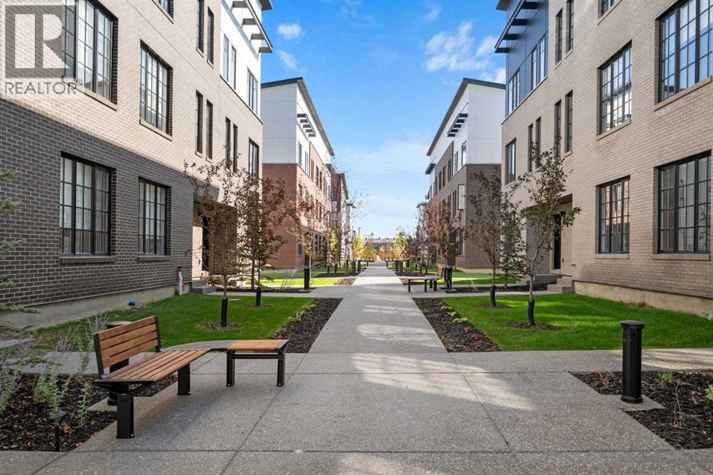 Welcome to 8161 8 Avenue SW in the community of West Springs. This 4 bedroom, 3 bathroom townhome is tastefully designed with modern finishes, functional upgrades, and a layout that balances style and comfort.Step inside to discover 9 ft ceilings, wide plank laminate flooring, and integrated LED lighting throughout. The chef’s kitchen is equipped with quartz countertops, a paneled fridge, gas range stove, and soft-close cabinetry with smart storage solutions. The living area features a 50-inch electric fireplace and opens onto a private balcony, creating the perfect space for both entertaining and relaxing.Custom details enhance the home, including a Murphy bed, custom drapes, premium Delta plumbing fixtures, and an A/C unit for year-round comfort. Environmentally friendly touches include WaterSense-certified fixtures and toilets. Over $50,000 has been invested in California Closets, bringing exceptional storage and organization to every corner of the home.With its large hallways and thoughtfully planned design, this home feels bright, open, and inviting. The location adds to its appeal—with views of the new park in west district, schools are just 5 minutes away, trendy coffee shops and cafes only 2 minutes from your door, and parks and walking paths are just steps away. (id:53676)