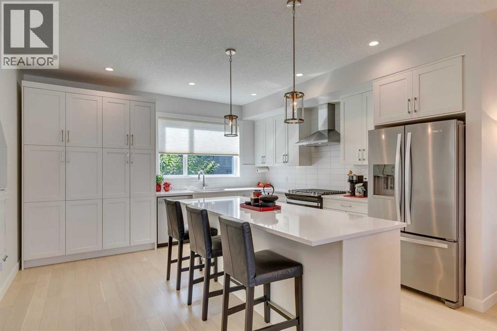 Upscale executive end unit townhome in the award-winning community of Shawnee Park. This Cardel-built 1880 sq' (builder size) 3 storey offers upscale design and detailed finishing with a substantial amount of upgrades beyond builder spec. Enjoy engineered white oak hardwood floors, upscale shaker-style kitchen with soft close doors and drawers, dovetailed joints, quartz countertops and upgraded appliances. This outstanding home has 9' ceilings, estate casing and baseboard and interior doors as well as sweeping urban views from the living room and the upper level. Sun-drenched south exposure, exposed aggregate driveway, walks and oversized patio. Xeriscape landscaping provides no maintenance and care-free living. Mechanical upgrades inc HEPA filter, high efficacy A/C , high efficiency F.A furnace with Redlink Honeywell controller to balance efficiency, electronic water softener, and RI for home dialysis machine (hidden in a closet). Hunter Douglas window coverings with custom blackouts and sun shades, bottom-up top-down blinds. The oversized garage is insulated, drywalled, and has a polished concrete floor. Loads of storage and more. This unique complex of adult homes (7 units) is designed to offer the best in living, convenience and lifestyle. Condo fees are just under $100.00/ month to cover snow removal and management fees. Walk to Fish Creek Park, the LRT, close to community shopping and the ring road. Compare the price to Cardel's next phase of townhomes starting at $820,000.00. (id:53676)