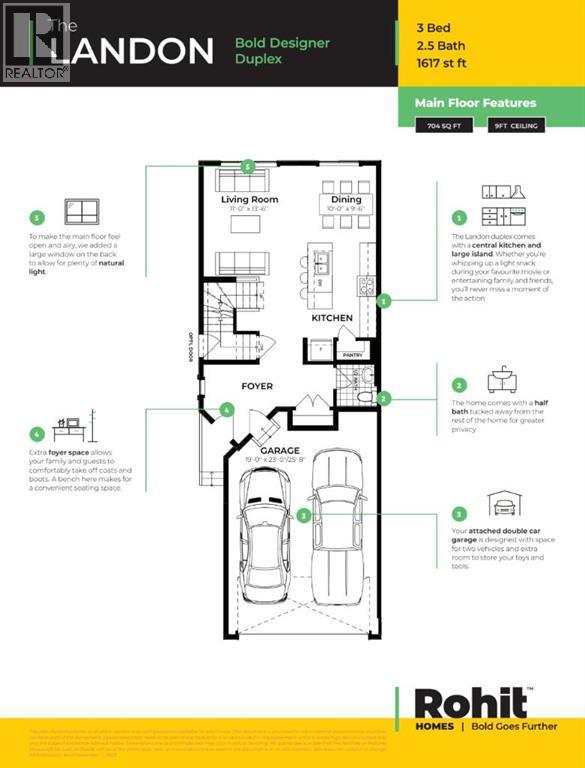 ** Open House at showhome - 120 Clydesdale Ave, Cochrane - November 26th 4-6pm, November 27th 1-4pm, November 29th 12-3pm, November 30th 12-4pm and December 2nd 2-5pm ** The Landon by Rohit Communities is a stunning duplex with an attached double front garage and over 1,600 sq. ft. of developed space. The main floor features a bright, open-concept layout with a spacious living room, dining area, modern kitchen with a large island, and a convenient half bath. Upstairs, you’ll find two generous bedrooms, a versatile flex space, laundry, and two full bathrooms. The home also includes a separate side entry and an unfinished basement, offering great potential for future development. Front and back landscaping are included. Photos are representative, and interior colors may vary. (id:53676)
