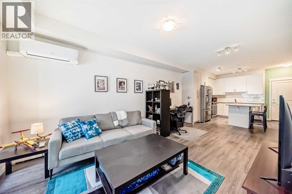Welcome to Legacy Park II, Building 8000. Built by Brad Remington Homes, this oversized, bright, and tastefully designed 1-bedroom, 1-bath condo offers more than 600 sq. ft. of open, comfortable living space. A modern kitchen features quartz countertops, premium soft-close cabinetry, stainless steel appliances, and clean, stylish finishes. The living area extends onto a private balcony—complete with a BBQ gas line—making it the ideal spot for morning coffee or evening relaxation.The spacious primary bedroom features large, light-filled window and a convenient walk-through closet with built-in cabinetry. An in-suite laundry room provides added functionality, with extra space available for future shelving. Additional perks include air conditioning (AC), titled underground parking, and a dedicated storage unit.Thoughtfully built with 9 ft. ceilings, knockdown ceiling texture, plush stain-guard carpeting, engineered floor and wall systems for superior sound attenuation, high-performance low-e windows, and a timeless exterior of brick and premium siding, this home blends comfort with quality craftsmanship.Perfectly located just steps from a full shopping plaza with groceries, dining, gas, and everyday essentials, this condo offers simple, stress-free city living. Ideal for first-time buyers, downsizers, or investors—this is a home that truly has it all. Book your showing today and experience why it’s anything but ordinary. (id:53676)