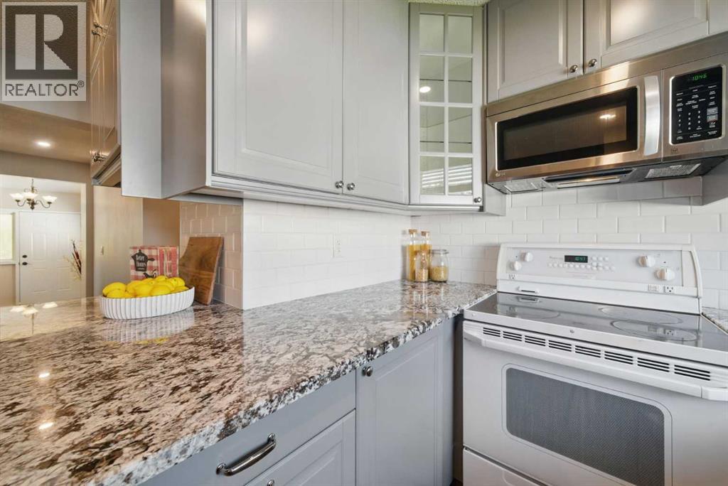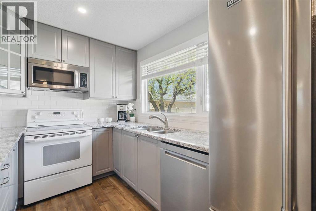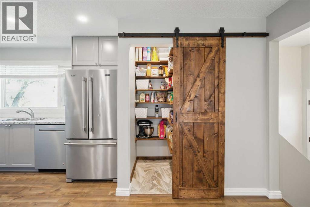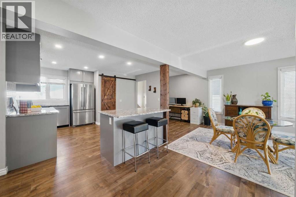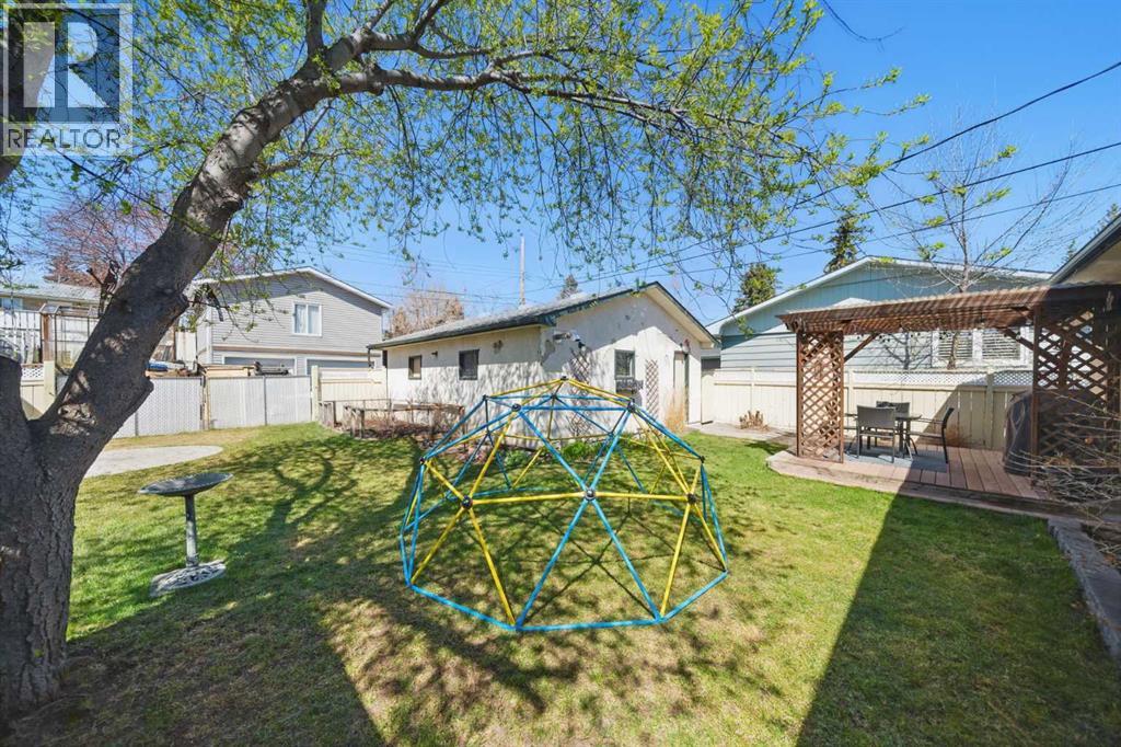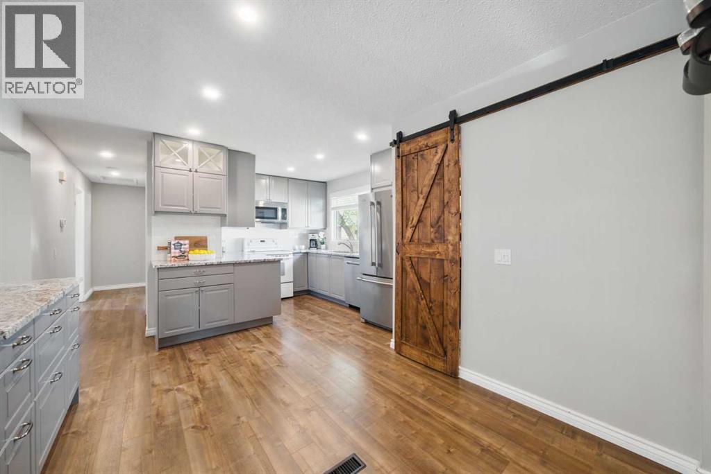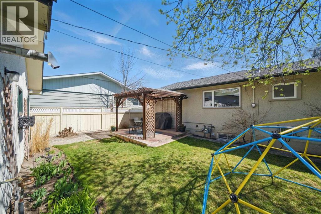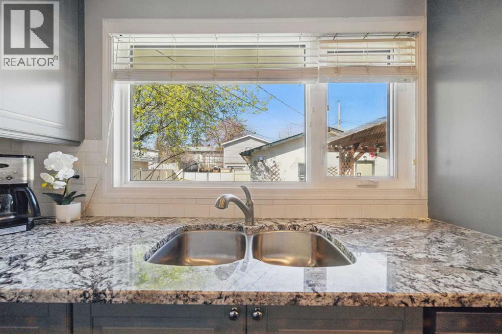Exceptional Value in Huntington Hills! Extensively improved and thoughtfully reconfigured, this spacious bungalow features an oversized heated double garage, a separate side entrance, and a bright open-concept layout tailored to modern living. The renovated kitchen boasts grey raised-panel soft-close cabinetry, granite countertops, a large island with abundant storage, and a custom pantry with a barn door and herringbone tile. Newer laminate plank flooring extends throughout the main living areas and into a sunny bay-windowed living room. Two generous bedrooms, including a primary with a walk-in closet and 2-piece ensuite, plus a full bath, complete the main level. Downstairs, the basement offers excellent potential with two additional bedrooms (newer egress windows and carpet), a renovated half bath with plumbing for a future shower, a spacious recreation area, and a versatile flex room for a home office, gym, or creative space. Radon mitigation and professionally tied-in window wells are already in place for peace of mind. Outdoors, enjoy a landscaped yard with a composite deck, pergola, BBQ gas line, and a stone patio connecting the deck, garage, and house, plus a Roman circle patio perfect for a firepit. A newer garage door, jackshaft opener, and RV-style back gate add convenience and flexibility. Ideally located close to schools, shopping, transit, and Nose Hill Park. (id:53676)
