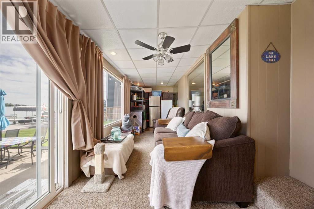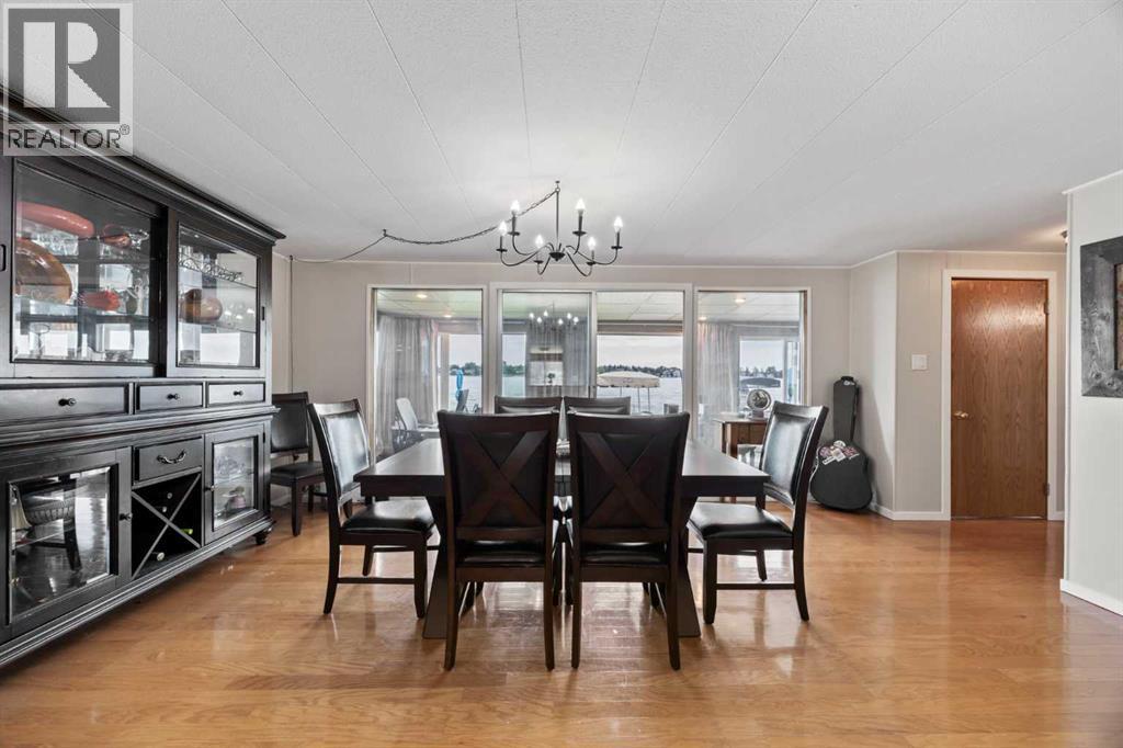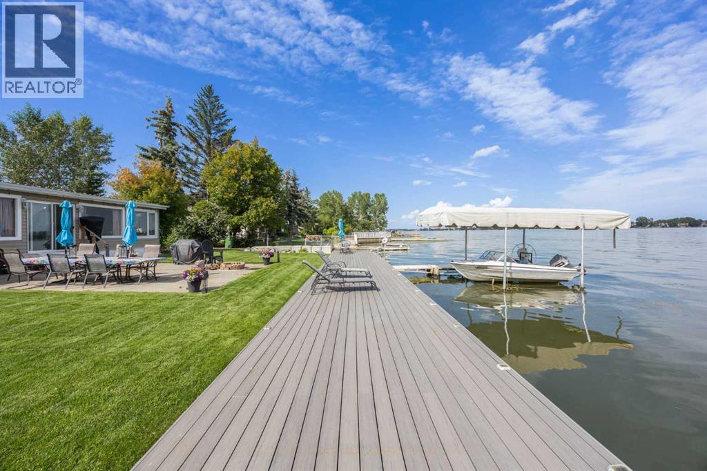 Indulge in the elegance of LAKESIDE LIVING with this beautiful year-round retreat, perfectly situated on the shores of Chestermere Lake. This lakefront ESCAPE has VIEWS that will make you want to stay & includes your own PRIVATE YARD which is complete with BOAT LIFT, dock & canopy! Whether you're seeking a weekend retreat or a permanent lakeside residence, this A F F O R D A B L E property has something for everyone! Step inside to discover a beautifully appointed trailer that effortlessly blends comfort and style. With 3 nicely sized bedrooms (all with large closets), there is ample space to accommodate family and guests in a warm and inviting setting + you will LOVE the sunroom that offers panoramic lake views and serves as a stunning all-season room. This is the perfect spot to relax after a day on the lake or for entertaining all your family and friends while enjoying the views!! A thoughtfully designed front living room and spacious foyer provide additional comfort and functionality, while the updated kitchen boasts modern cabinetry, GRANITE counters & generous counter space, ideal for preparing meals and hosting with ease. Enhancing the property’s appeal is a detached single garage as well as 3 additional sheds to keep your outdoor essentials organized and protected.This unique lakefront property offers a rare opportunity to experience the very best of resort-style living without breaking the bank!! Enjoy breathtaking sunrises, evening campfires by the lake, and an endless array of recreational activities which include boating, kayaking, swimming, paddle boarding, water skiing, tubing, skating, fishing + MUCH MUCH MORE!! All from the comfort of your own lakeside haven!! The seller has recently updated the home with NEW windows, FRESH paint, a gorgeous kitchen & modern decor! WOW!! PLEASE NOTE: LAND IS NOT INCLUDED in the sale. Trailer ONLY. Monthly lease in place for $2140 per month. The buyer must be approved by lease holder. (id:53676)