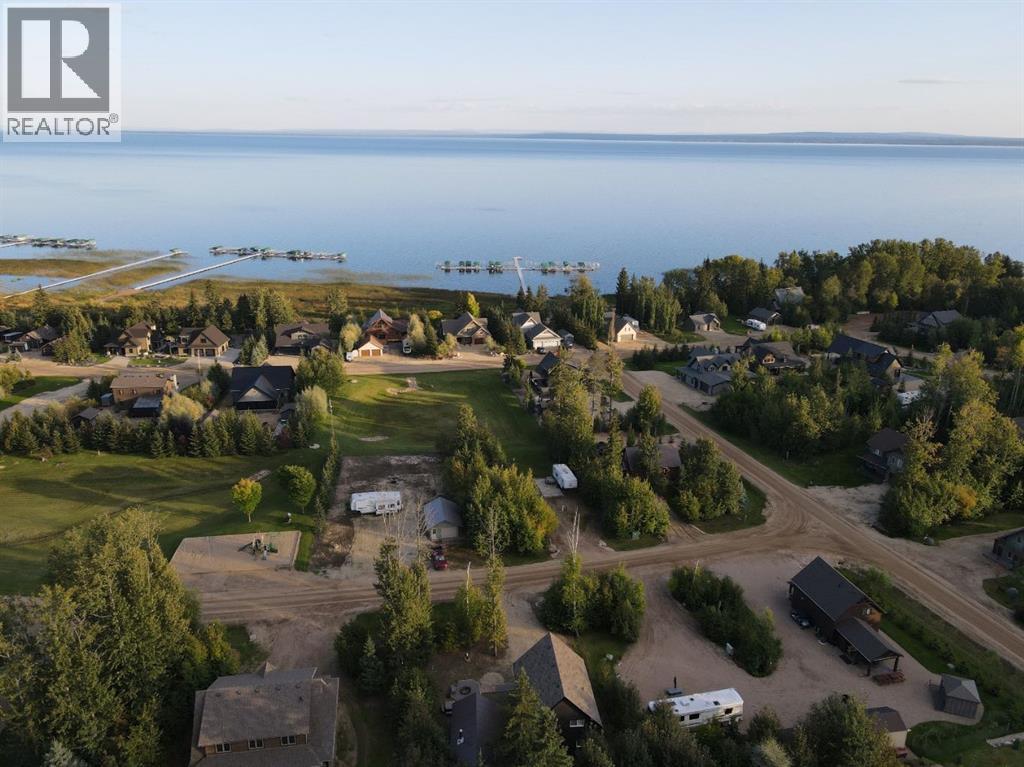 1350 sq ft 2 storey Modern Cabin in the gated community of Hilliards Bay Estates. The Cabin has a bright open concept living room, dining room and kitchen. The monochromatic colour scheme with white cabinets balancing the white stone countertops with a white subway tile backsplash. The stainless steel appliances finish off the look. The central fireplace heats with the flip of a switch making the main floor welcoming and comfy year round. Upstairs you will find the 3 bedrooms, the primary at the front of the house - providing access to the covered deck where you will enjoy the views of Lesser Slave Lake. The upper floor bathroom has a show stopper floor to ceiling walk in tiled shower and a double vanity. The cabin is the essence of simple lake living. Enjoy all the Estates has to offer with year round sports, picturesque beaches, recreation courts, hiking trails and more. Call, email or text today to book your tour of the estates and a showing. (id:53676)